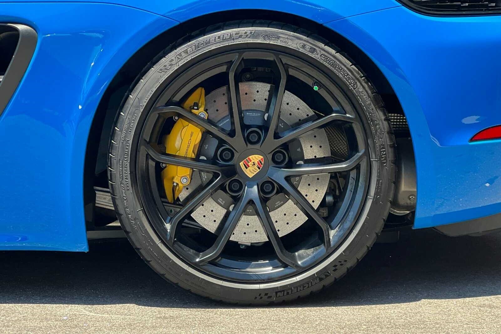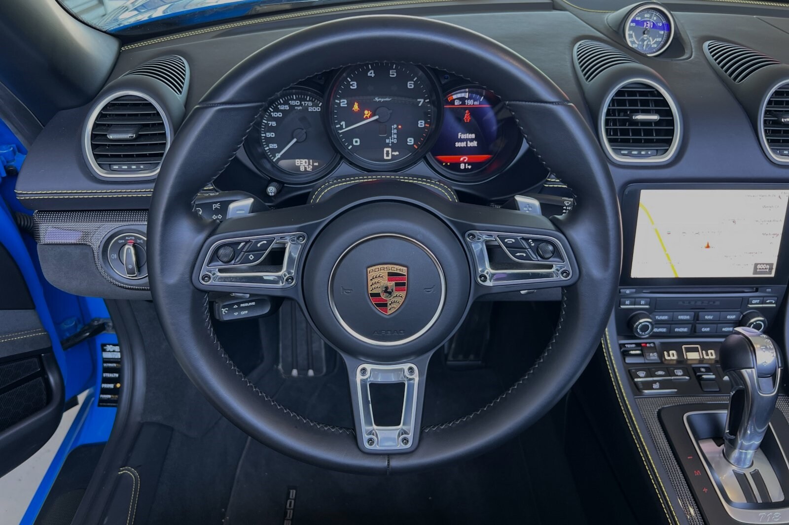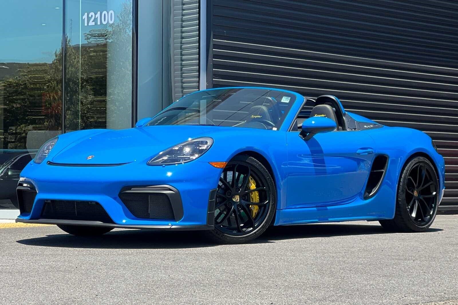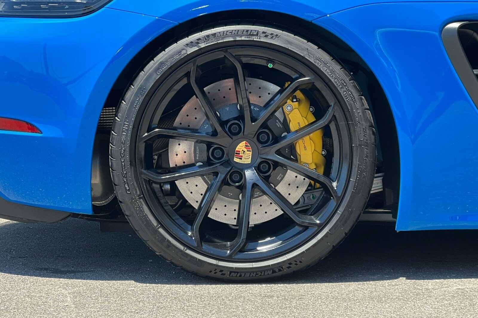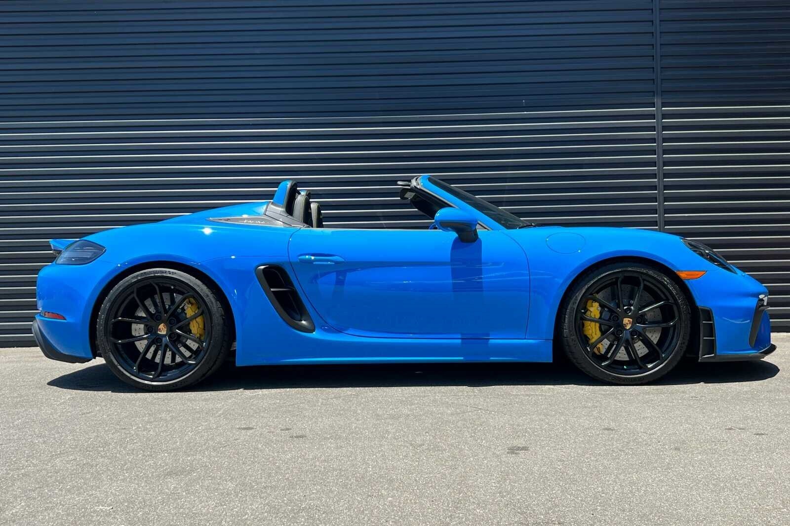 This Porsche San Luis Obispo 2022 Shark Blue Porsche 718 Spyder Base RWD is well equipped and includes these features and benefits: Dashboard Trim Package in Leather, Radio: Sound Package Plus, Porsche Approved Certified Pre-Owned Certified, BOSE Surround Sound System, Porsche Ceramic Composite Brake, 2-Way Sport Seats Plus, 4-Wheel Disc Brakes, 6 Speakers, ABS brakes, Adaptive suspension, Air Conditioning, Alloy wheels, AM/FM radio: SiriusXM, Brake assist, Bumpers: body-color, CD player, Convertible roof lining, Convertible roof wind blocker, Delay-off headlights, Driver door bin, Driver vanity mirror, Dual front impact airbags, Dual front side impact airbags, DVD-Audio, Electronic Stability Control, Exterior Parking Camera Rear, Four wheel independent suspension, Front anti-roll bar, Front Bucket Seats, Front Center Armrest, Front reading lights, Fully automatic headlights, Garage door transmitter: HomeLink, Glass rear window, Heated door mirrors, High intensity discharge headlights: Bi-Xenon, Illuminated entry, Integrated roll-over protection, Knee airbag, Low tire pressure warning, Occupant sensing airbag, Outside temperature display, Overhead airbag, Partial Leather Seat Trim w/Race-Tex Seat Centers, Passenger door bin, Passenger vanity mirror, Power door mirrors, Power driver seat, Power passenger seat, Power steering, Power windows, Radio data system, Rear anti-roll bar, Rear window defroster, Remote keyless entry, Security system, Speed control, Spoiler, Sport steering wheel, Tachometer, Telescoping steering wheel, Tilt steering wheel, Traction control, Trip computer, Variably intermittent wipers, and Wheels: 20 718 Spyder in Silver. 360 Camera, Active Parking Assist, Adaptive Cruise Control, Adaptive Headlights, Android Auto, Apple Carplay, Automatic Headlights, Blind-Spot Monitors, Bluetooth, Collision Avoidance System, Collision Warning Alert System, Drowsiness Alert, Heads-Up Display, Heated/Cooled Seats, Keyless Access w/Push Button Start, Lane Keeping Assist, Navigation, Smartphone App Integration, Touchscreen Controls, Voice Recognition, Wi-Fi Hotspot, BOSE Surround Sound System, Dashboard Trim Package in Leather, Porsche Ceramic Composite Brake.