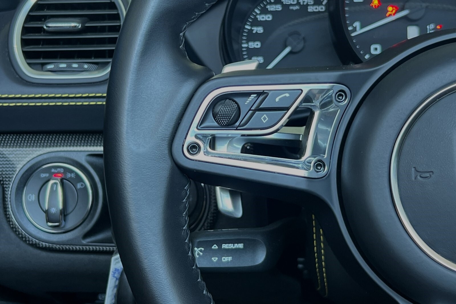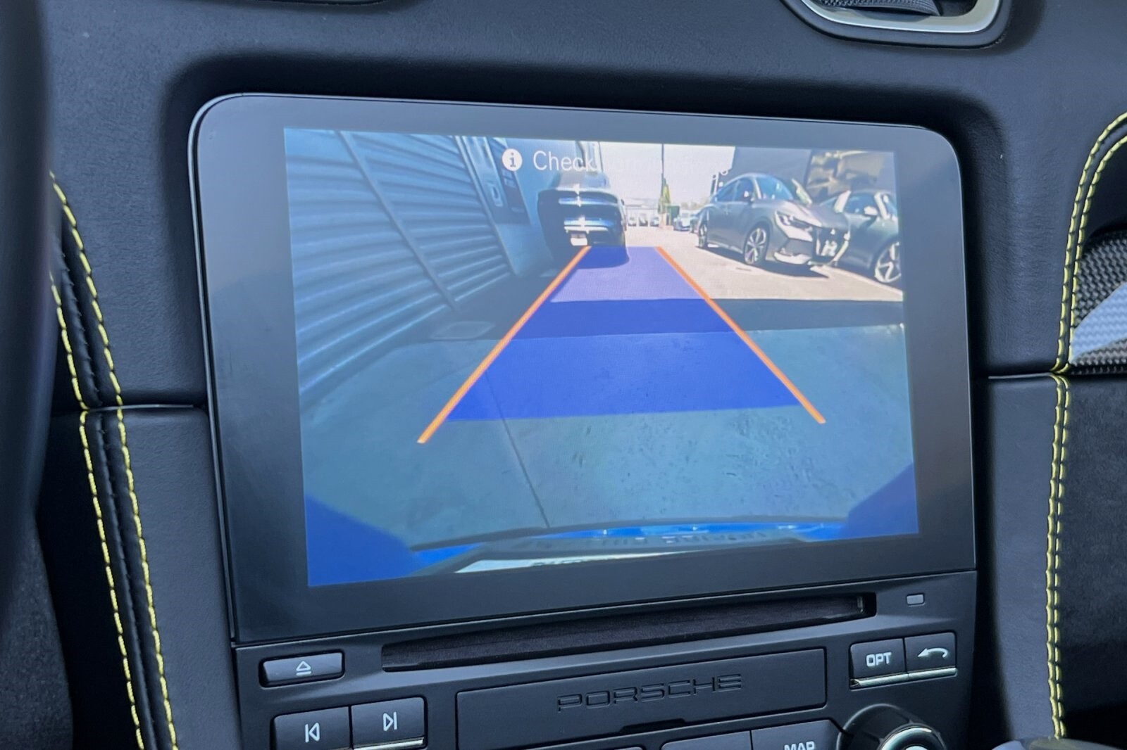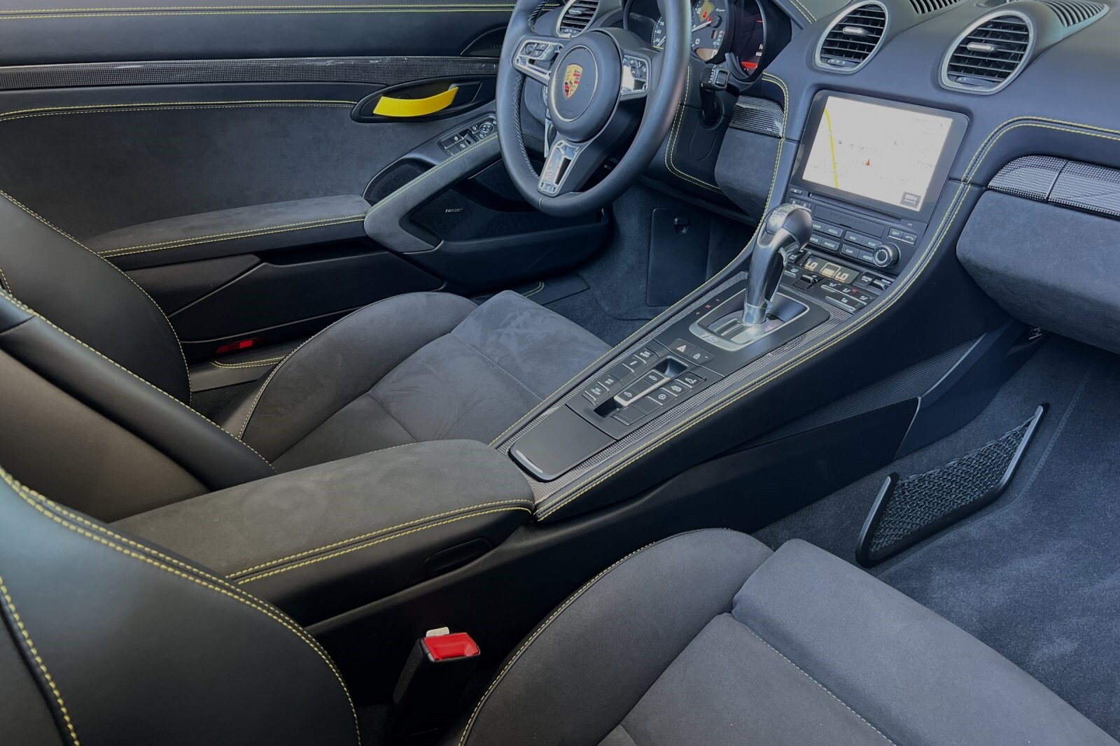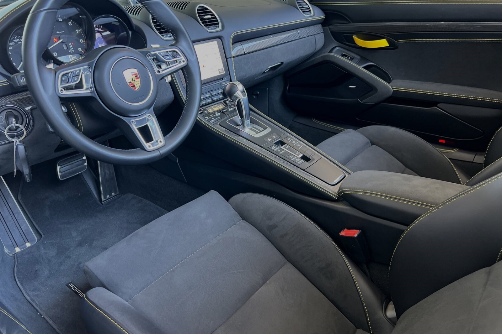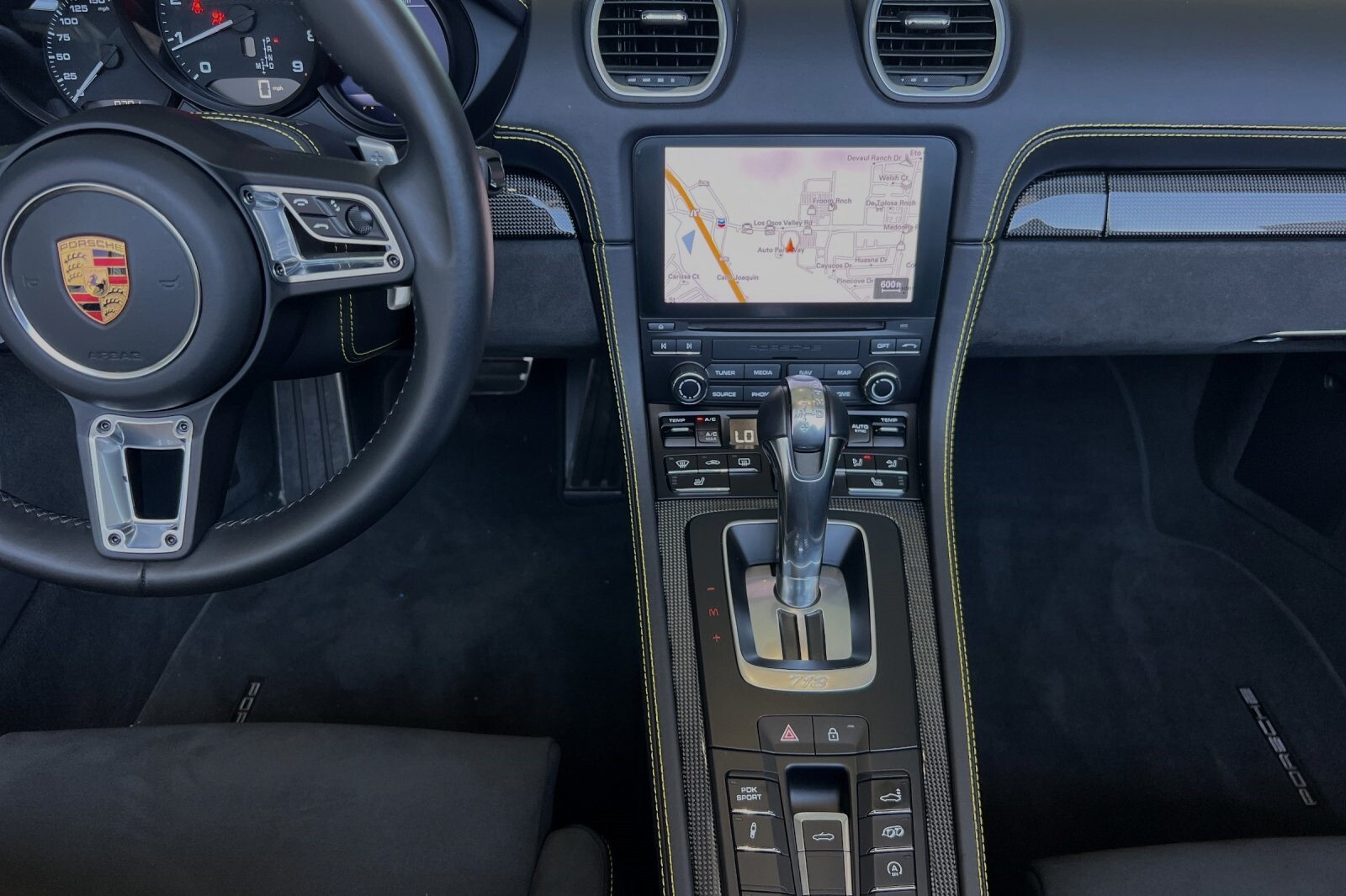 This Porsche San Luis Obispo 2022 Shark Blue Porsche 718 Spyder Base RWD is well equipped and includes these features and benefits: Dashboard Trim Package in Leather, Radio: Sound Package Plus, Porsche Approved Certified Pre-Owned Certified, BOSE Surround Sound System, Porsche Ceramic Composite Brake, 2-Way Sport Seats Plus, 4-Wheel Disc Brakes, 6 Speakers, ABS brakes, Adaptive suspension, Air Conditioning, Alloy wheels, AM/FM radio: SiriusXM, Brake assist, Bumpers: body-color, CD player, Convertible roof lining, Convertible roof wind blocker, Delay-off headlights, Driver door bin, Driver vanity mirror, Dual front impact airbags, Dual front side impact airbags, DVD-Audio, Electronic Stability Control, Exterior Parking Camera Rear, Four wheel independent suspension, Front anti-roll bar, Front Bucket Seats, Front Center Armrest, Front reading lights, Fully automatic headlights, Garage door transmitter: HomeLink, Glass rear window, Heated door mirrors, High intensity discharge headlights: Bi-Xenon, Illuminated entry, Integrated roll-over protection, Knee airbag, Low tire pressure warning, Occupant sensing airbag, Outside temperature display, Overhead airbag, Partial Leather Seat Trim w/Race-Tex Seat Centers, Passenger door bin, Passenger vanity mirror, Power door mirrors, Power driver seat, Power passenger seat, Power steering, Power windows, Radio data system, Rear anti-roll bar, Rear window defroster, Remote keyless entry, Security system, Speed control, Spoiler, Sport steering wheel, Tachometer, Telescoping steering wheel, Tilt steering wheel, Traction control, Trip computer, Variably intermittent wipers, and Wheels: 20 718 Spyder in Silver. 360 Camera, Active Parking Assist, Adaptive Cruise Control, Adaptive Headlights, Android Auto, Apple Carplay, Automatic Headlights, Blind-Spot Monitors, Bluetooth, Collision Avoidance System, Collision Warning Alert System, Drowsiness Alert, Heads-Up Display, Heated/Cooled Seats, Keyless Access w/Push Button Start, Lane Keeping Assist, Navigation, Smartphone App Integration, Touchscreen Controls, Voice Recognition, Wi-Fi Hotspot, BOSE Surround Sound System, Dashboard Trim Package in Leather, Porsche Ceramic Composite Brake.