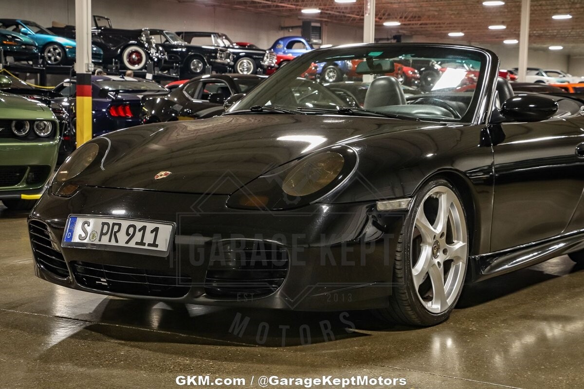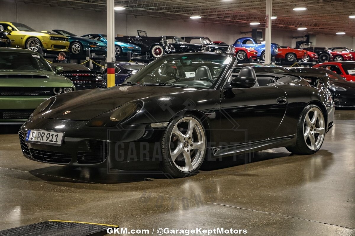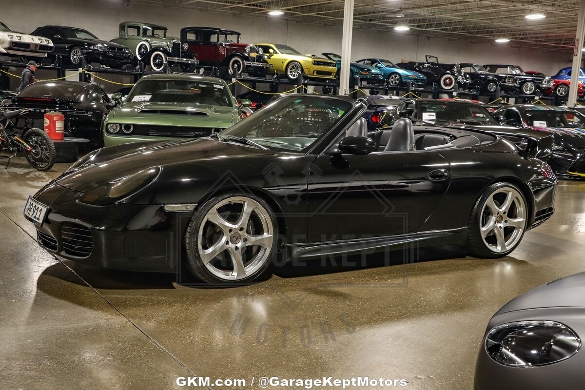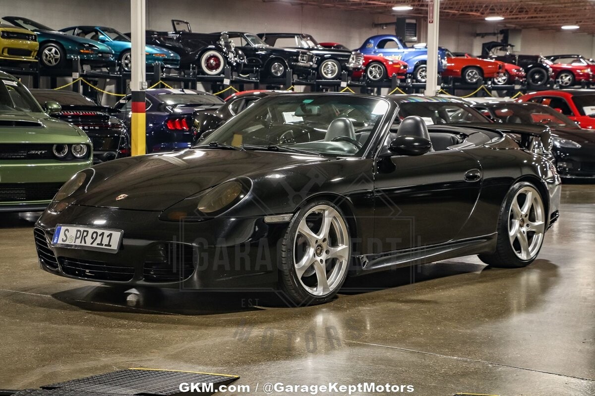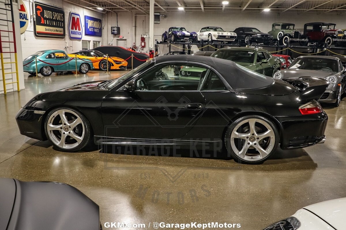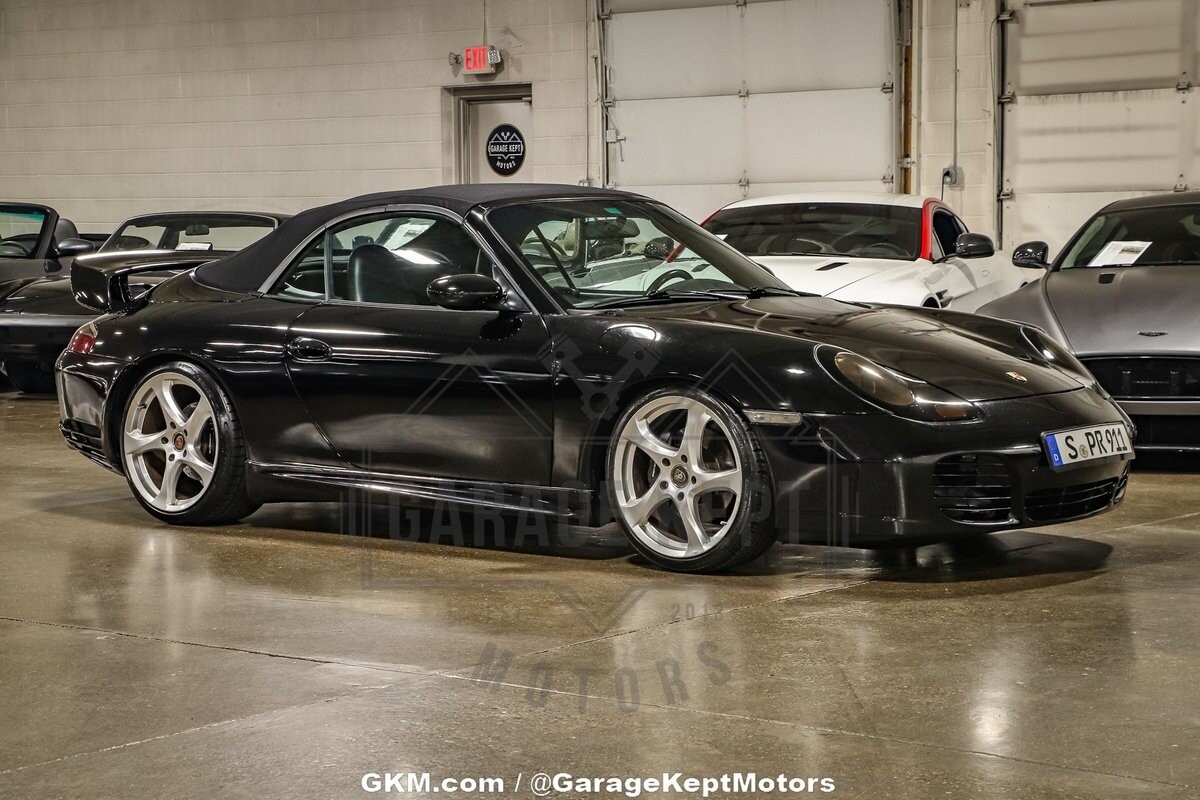 The 2001 Porsche 911/996 Carrera Cabriolet presents an enticing blend of power, performance, and timeless design, epitomizing the essence of Porsche's iconic sports car lineage. Finished in a sleek Triple Black color scheme, this convertible exudes an air of sophistication and sportiness. Under the hood lies a spirited 3.4-liter horizontally opposed six-cylinder engine, delivering a robust 300 horsepower to the rear wheels through a thrilling 6-speed manual transmission, ensuring an engaging driving experience that enthusiasts crave.