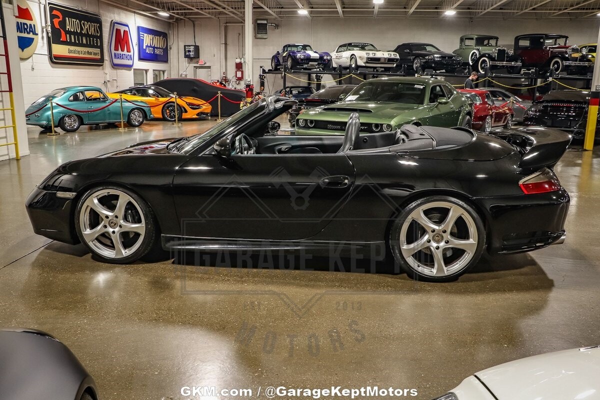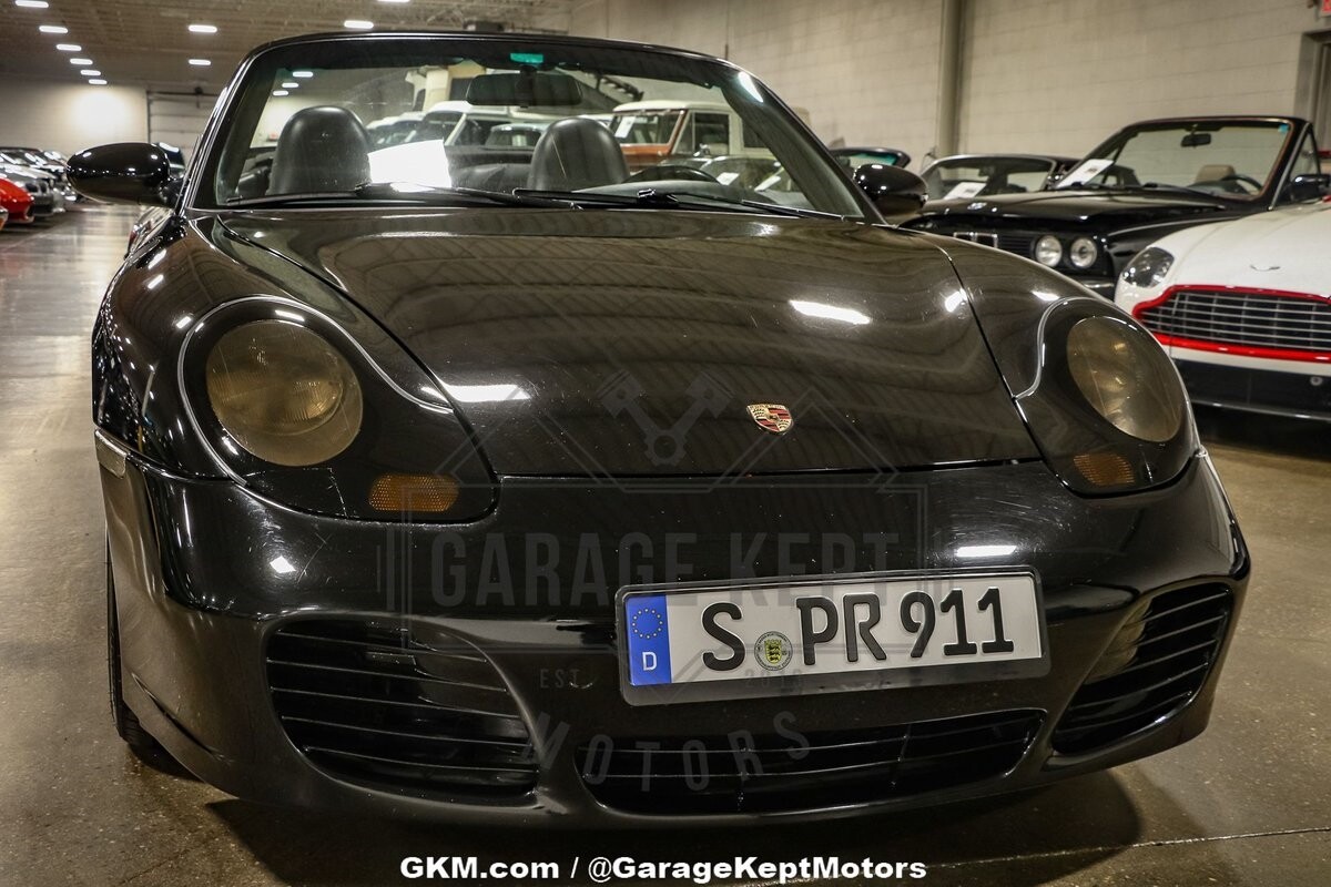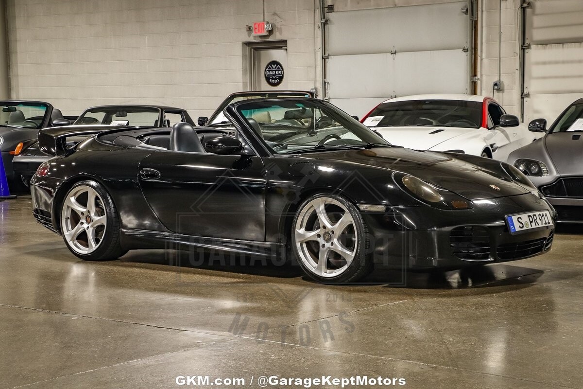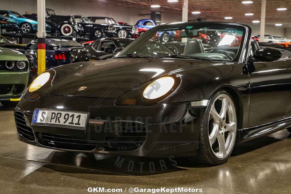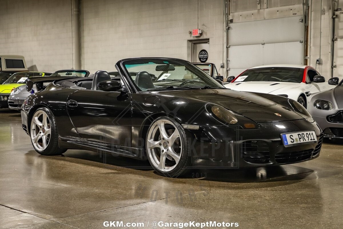 The 2001 Porsche 911/996 Carrera Cabriolet presents an enticing blend of power, performance, and timeless design, epitomizing the essence of Porsche's iconic sports car lineage. Finished in a sleek Triple Black color scheme, this convertible exudes an air of sophistication and sportiness. Under the hood lies a spirited 3.4-liter horizontally opposed six-cylinder engine, delivering a robust 300 horsepower to the rear wheels through a thrilling 6-speed manual transmission, ensuring an engaging driving experience that enthusiasts crave.
