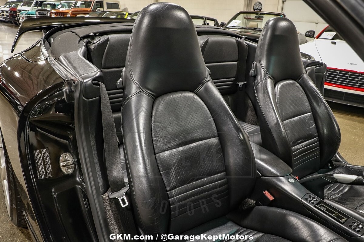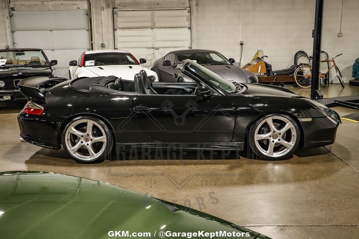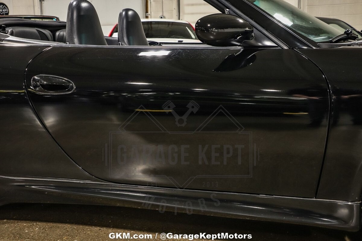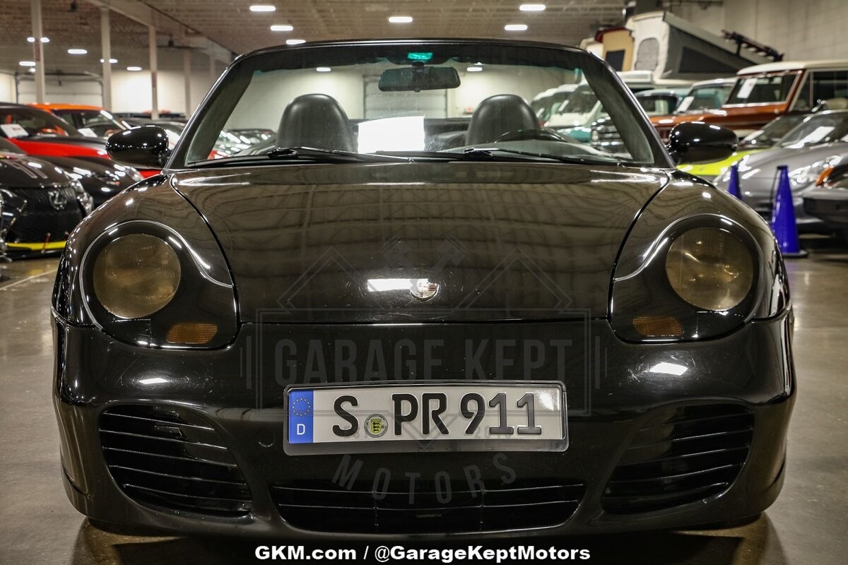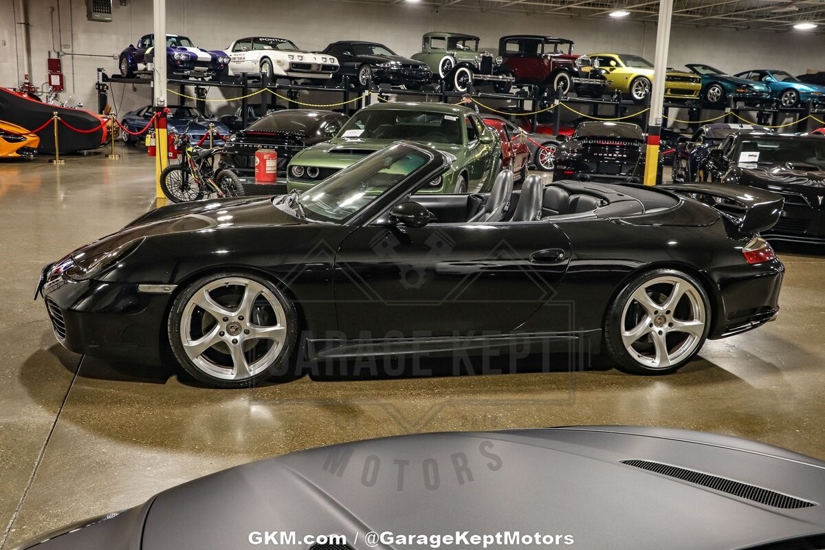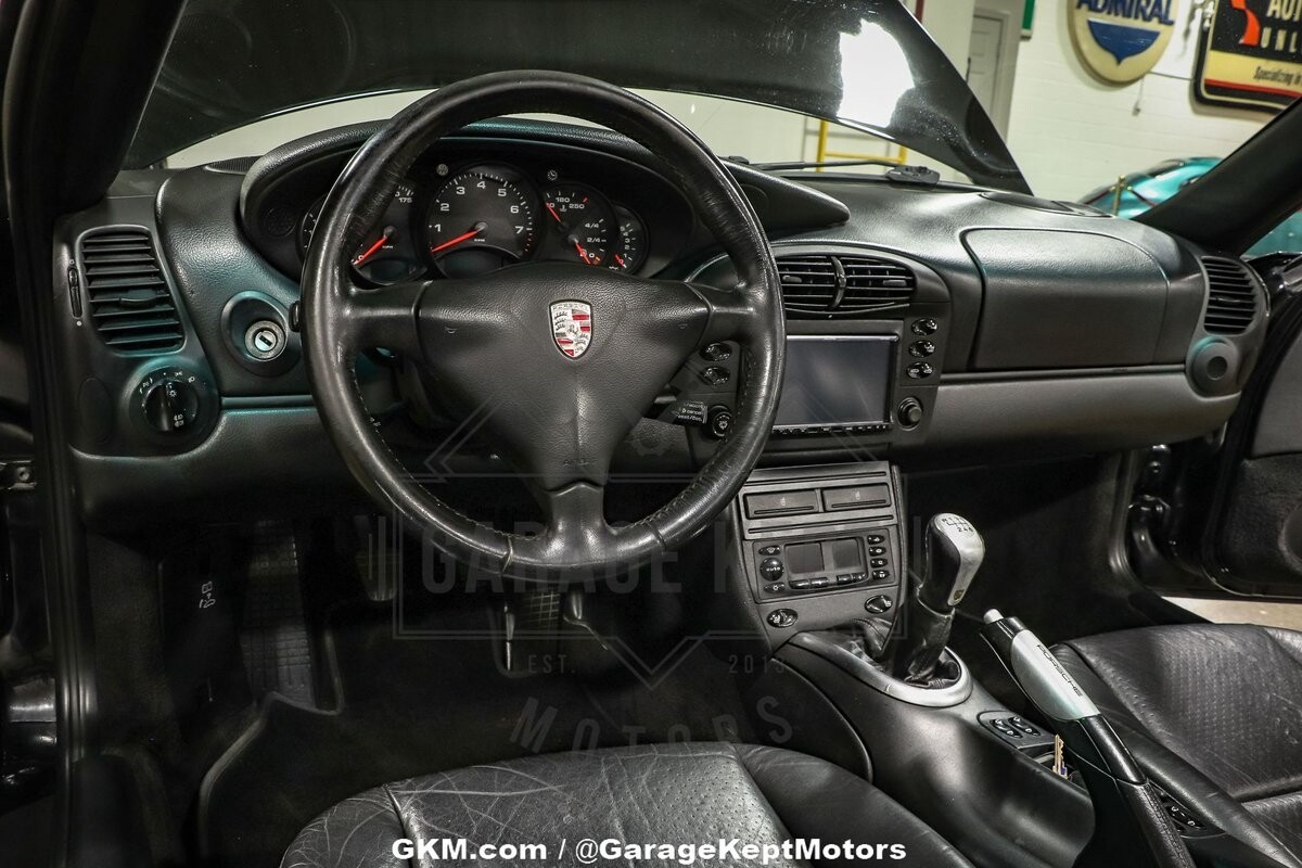 The 2001 Porsche 911/996 Carrera Cabriolet presents an enticing blend of power, performance, and timeless design, epitomizing the essence of Porsche's iconic sports car lineage. Finished in a sleek Triple Black color scheme, this convertible exudes an air of sophistication and sportiness. Under the hood lies a spirited 3.4-liter horizontally opposed six-cylinder engine, delivering a robust 300 horsepower to the rear wheels through a thrilling 6-speed manual transmission, ensuring an engaging driving experience that enthusiasts crave.