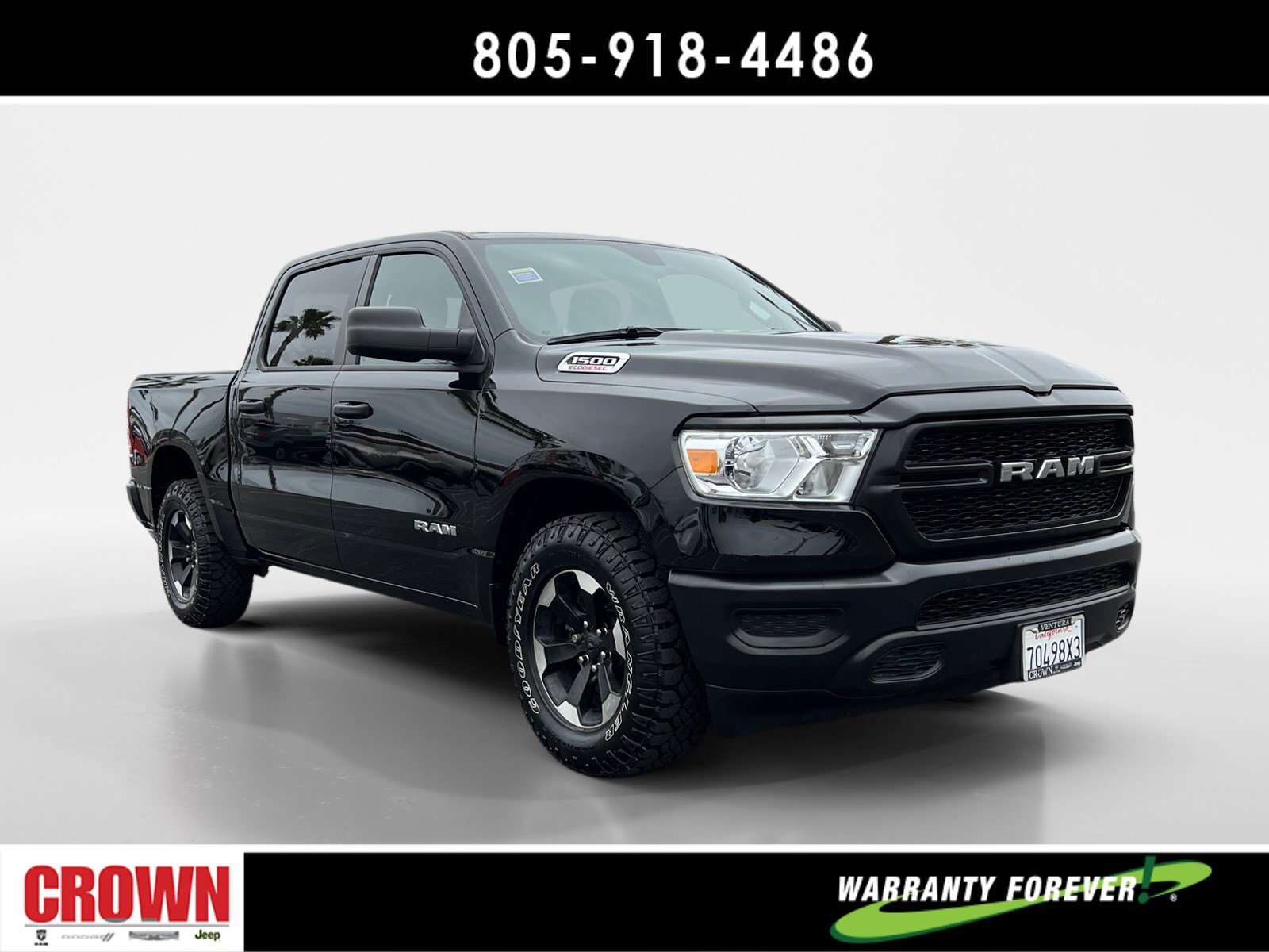Certified. Diamond Black Crystal Pearlcoat 2022 Ram 1500 HFE RWD 8-Speed Automatic EcoDiesel 3.0L V6 ** 1 Owner Clean CarFax **, * Low Miles! *, Air Conditioning, Compass, Emergency communication system: SiriusXM Guardian, Exterior Parking Camera Rear, Fully automatic headlights, Heated door mirrors, Illuminated entry, Outside temperature display, Overhead console, Power door mirrors, Power steering, Power windows, Quick Order Package 28E HFE, Radio: Uconnect 3 w/5 Display, Rear step bumper, Remote keyless entry, Speed control, Wheels: 20 x 9 Aluminum Chrome Clad.FCA US LLC Certified Pre-Owned Details:* Limited Warranty: 3 Month/3,000 Mile (whichever comes first) after new car warranty expires or from certified purchase date* Powertrain Limited Warranty: 84 Month/100,000 Mile (whichever comes first) from original in-service date* Warranty Deductible: $100* Transferable Warranty* Roadside Assistance* 125 Point Inspection* Includes First Day Rental, Car Rental Allowance, and Trip Interruption Benefits. SiriusXM 3 month trial subscription.* Vehicle HistoryHere at Crown Dodge Chrysler Jeep RAM, we believe that great service means more than just offering our new Dodge, Chrysler, Jeep, and RAM lineup. We believe that great service also includes helpful advice, friendly car financing, and the highest quality parts and repairs for your car. Our staff works hard to make your full automotive experience at our car dealership in Ventura, CA enjoyable, and we look forward to helping you today! All vehicles at Crown Dodge have our SWAT security system $995,Clear Shield $395, Pulse $395, Wheel Locks $395, Windshield Protection $995, Nitro Fill $499, Screen Protector $395 and $1295 Paint/Fabric Protection pre-installed. Prices on the website do not include dealer-added equipment. Discounts include $2,000 Trade-In Dealer Assist Cash. Must trade in a 2015 or newer vehicle on a retail purchase. Trade-in must have less than 15,000 miles on average per year stated on Carfax Report, clean title, and Clean vehicle history report. Expires 02/19/2024. Expires 02/29/2024.