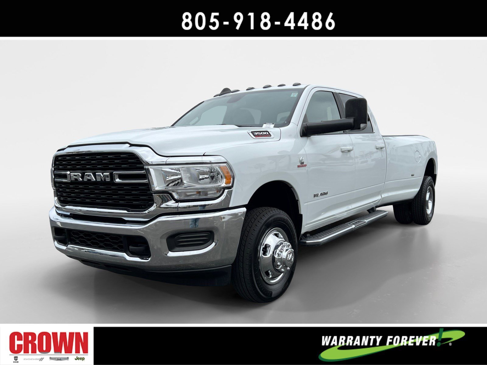 Certified. Bright White Clearcoat 2022 Ram 3500 Big Horn 4WD 6-Speed Automatic 6.7L I6 4G LTE Wi-Fi Hot Spot, 5th Wheel/Gooseneck Towing Prep Group, 6000# Front Axle w/Hub Ext, 8.4 Touchscreen Display, Air Conditioning, Apple CarPlay, Apple CarPlay/Android Auto, Bluetooth Handsfree Phone & Audio, Box & Rear Fender Clearance Lamps, Bright Wheel Skins, Bumpers: chrome, Center Hub, Center Stack Storage Drawer, Chrome Flat Cab-Length Side Steps, Clearance Lamps, Compass, Connectivity - US/Canada, Dual Rear Wheels, Fully automatic headlights, Global Telematics Box Module (TBM), Google Android Auto, GPS Antenna Input, Heated door mirrors, Illuminated entry, Integrated Center Stack Radio, Integrated Voice Command w/Bluetooth, MOPAR Spray In Bedliner, Outside temperature display, Overhead console, ParkView Rear Back-Up Camera, Power door mirrors, Quick Order Package 2HZ Big Horn, Radio: Uconnect 5 w/8.4 Display, Rear Folding Seat, Rear step bumper, Rear Wheelhouse Liners, Remote keyless entry, Selectable Tire Fill Alert, SiriusXM Radio Service, SiriusXM Satellite Radio, Speed control, Storage Tray, Wheels: 18 x 8.0 Steel Chrome Clad.Odometer is 4352 miles below market average!FCA US LLC Certified Pre-Owned Details:* 125 Point Inspection* Limited Warranty: 3 Month/3,000 Mile (whichever comes first) after new car warranty expires or from certified purchase date* Includes First Day Rental, Car Rental Allowance, and Trip Interruption Benefits. SiriusXM 3 month trial subscription.* Warranty Deductible: $100* Powertrain Limited Warranty: 84 Month/100,000 Mile (whichever comes first) from original in-service date* Vehicle History* Transferable Warranty* Roadside AssistanceHere at Crown Dodge Chrysler Jeep RAM, we believe that great service means more than just offering our new Dodge, Chrysler, Jeep, and RAM lineup. We believe that great service also includes helpful advice, friendly car financing, and the highest quality parts and repairs for your car. Our staff works hard to make your full automotive experience at our car dealership in Ventura, CA enjoyable, and we look forward to helping you today! All vehicles at Crown Dodge have our SWAT security system $995,Clear Shield $395, Pulse $395, Wheel Locks $395, Windshield Protection $995, Nitro Fill $499, Screen Protector $395 and $1295 Paint/Fabric Protection pre-installed. Prices on the website do not include dealer-added equipment. Discounts include $2,000 Trade-In Dealer Assist Cash. Must trade in a 2015 or newer vehicle on a retail purchase. Trade-in must have less than 15,000 miles on average per year stated on Carfax Report, clean title, and Clean vehicle history report. Expires 02/19/2024. Expires 02/29/2024.