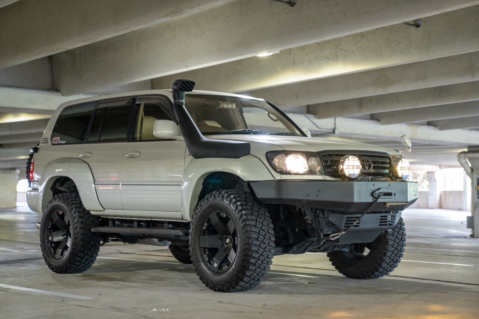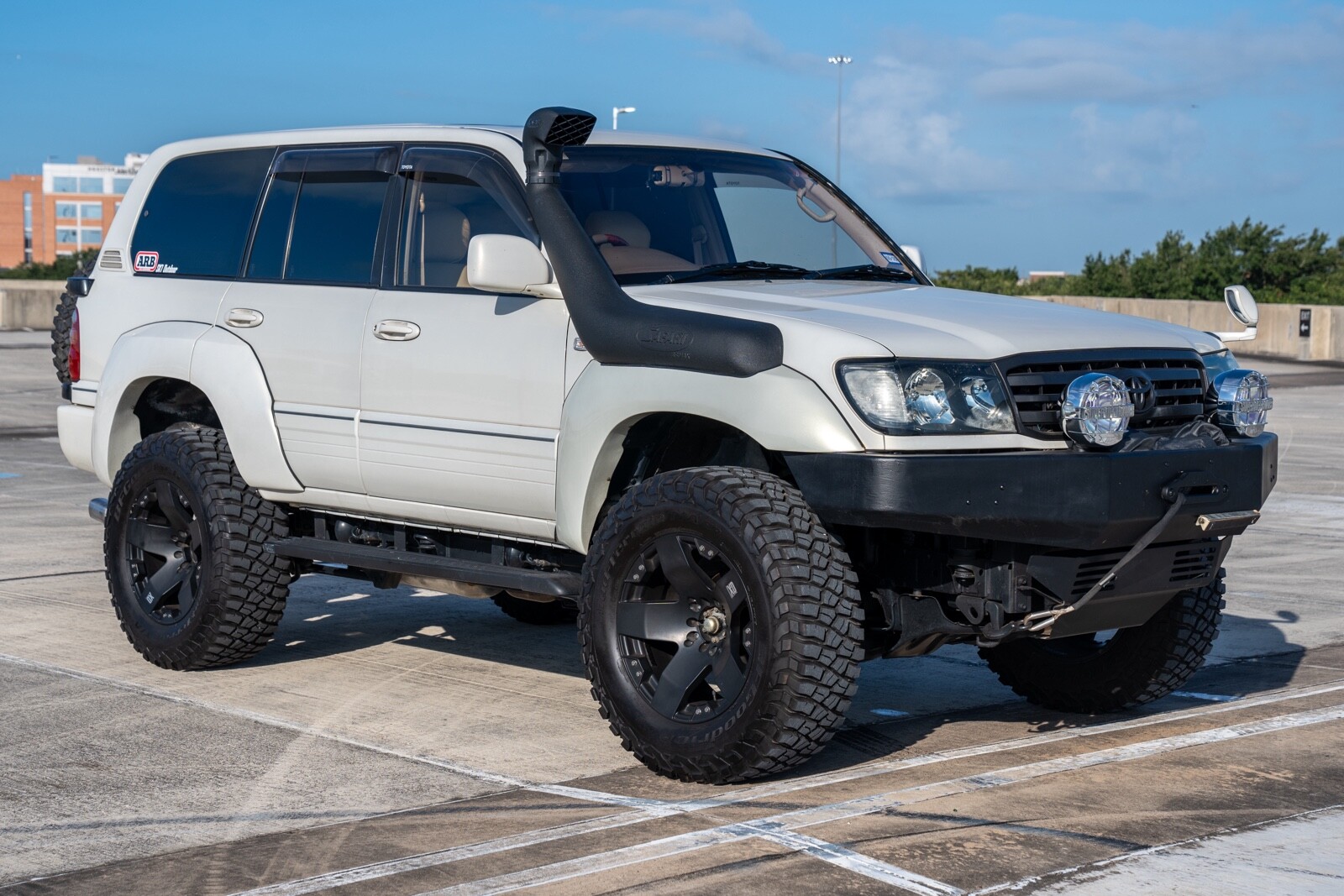 This (RHD) Land Cruiser have a 171,000 KM which is approximately 106,500 approximately miles . Car has been treated for rust and is a amazing for off road . I have car VX report from Japan (carfax ) is available for the buyer with verified mileage.List of modifications worth over 25k which includes. Front custom metal bumper with high duty winch with 2 super off roader series large size heave duty spot lights, custom head lights (original head lights are included with the purchase as well ), safari snorkel , ARB suspension/ lift ,height adjustable suspension upto 6-7 inches ,aluminum wheels with BFG tires mud terrain , custom fiber glass fender flares by Fjallasports and upgraded GANADOR VERTEX SPORTS MUFFLER EXHAUST SYSTEM WITH CENTER PIPE FULL TITANIUM apple car play dash & backup cameraVehicle Details