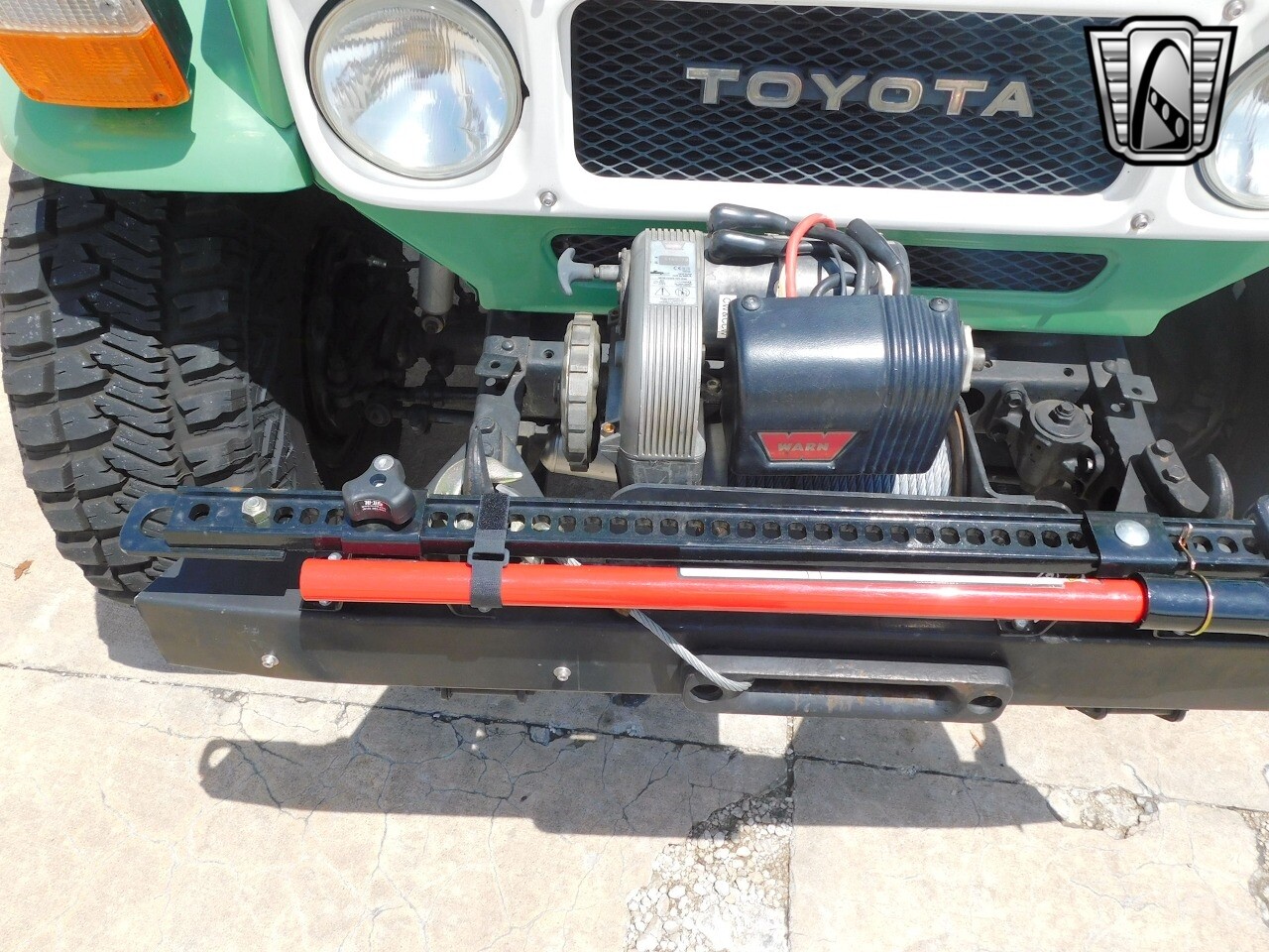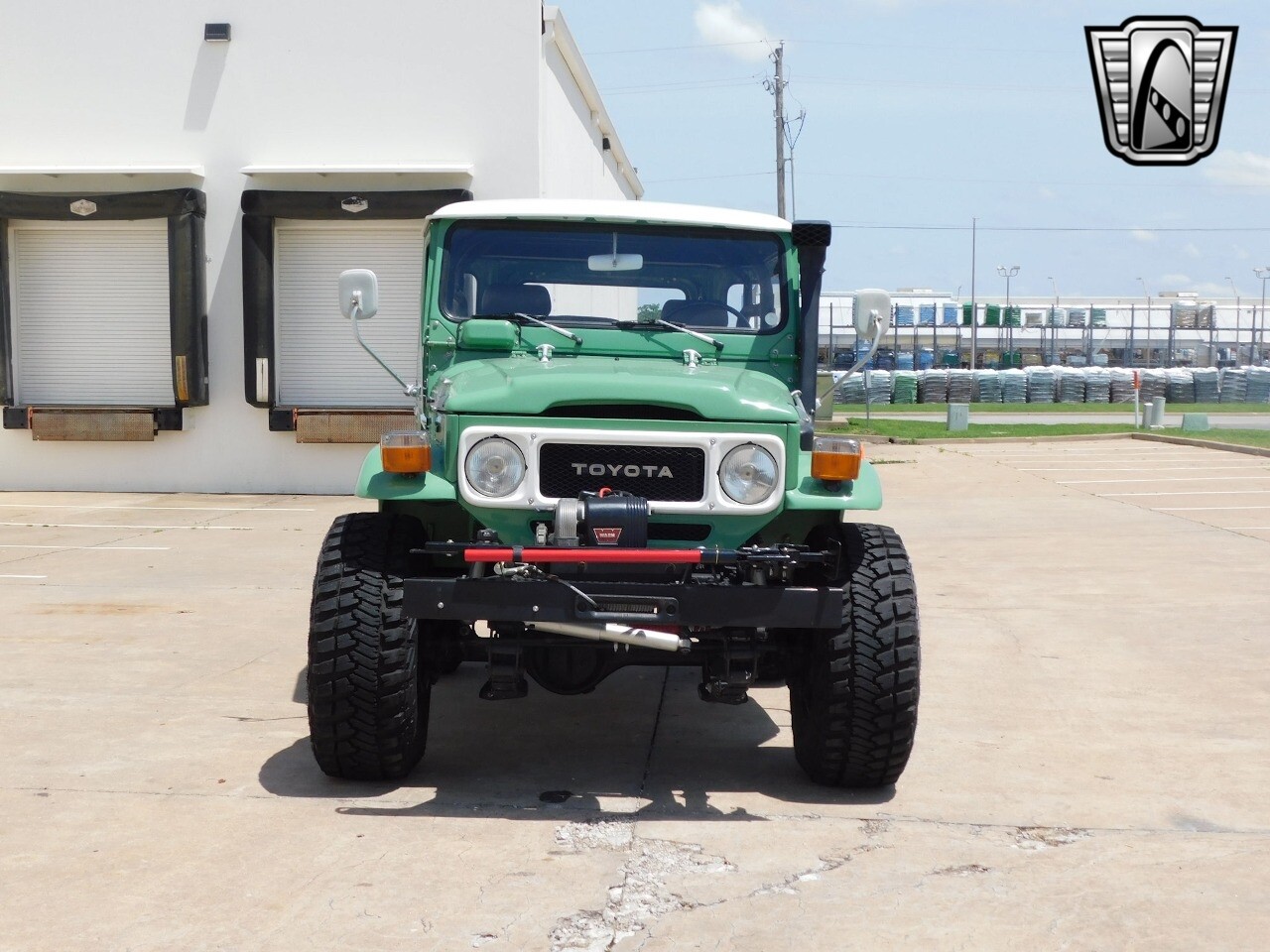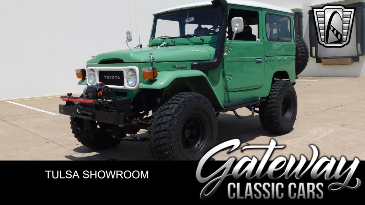 Gateway Classic Cars of Tulsa is excited to present this 1980 Toyota Landcruiser. The FJ40 is the model that made Toyota a household name. Today, it's a classic 4x4 that's a favorite to off-road enthusiasts and collectors alike, competing head to head on collectability against the Land Rover Series models, the Defender, Ford Bronco, and the International Scout. Owner states this beauty is painted in factory correct Niagara Green with a White removable top and looks great. With an extensive restoration done in recent years, this beauty really stands out anywhere it goes. Right away you notice the lift kit and big mud tires that give it a nice aggressive look, along with custom wheels. The inside has been redone with newer brown leather seating and carpet. Vintage Air has been added along with a few other upgrades. This gem is powered by the infamous 4.2l Inline 6 and mated to hard-to-find 4-Speed Manual Transmission that shifts great and runs smooth. [ omitted ].