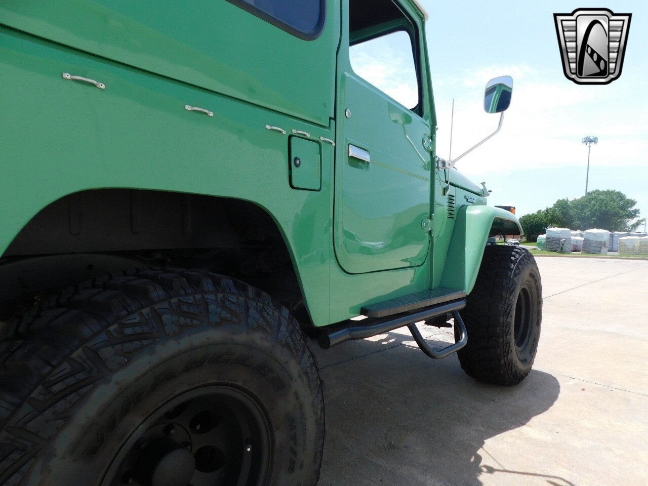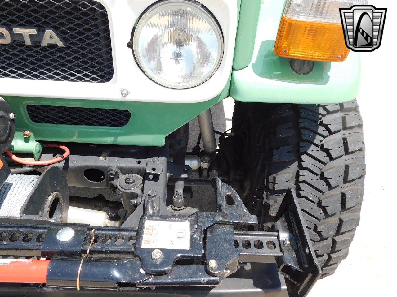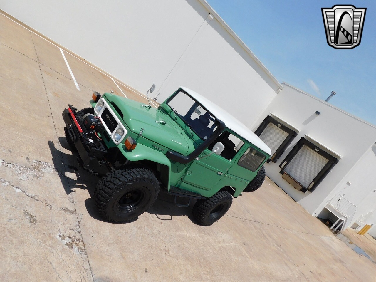 Gateway Classic Cars of Tulsa is excited to present this 1980 Toyota Landcruiser. The FJ40 is the model that made Toyota a household name. Today, it's a classic 4x4 that's a favorite to off-road enthusiasts and collectors alike, competing head to head on collectability against the Land Rover Series models, the Defender, Ford Bronco, and the International Scout. Owner states this beauty is painted in factory correct Niagara Green with a White removable top and looks great. With an extensive restoration done in recent years, this beauty really stands out anywhere it goes. Right away you notice the lift kit and big mud tires that give it a nice aggressive look, along with custom wheels. The inside has been redone with newer brown leather seating and carpet. Vintage Air has been added along with a few other upgrades. This gem is powered by the infamous 4.2l Inline 6 and mated to hard-to-find 4-Speed Manual Transmission that shifts great and runs smooth. [ omitted ].
