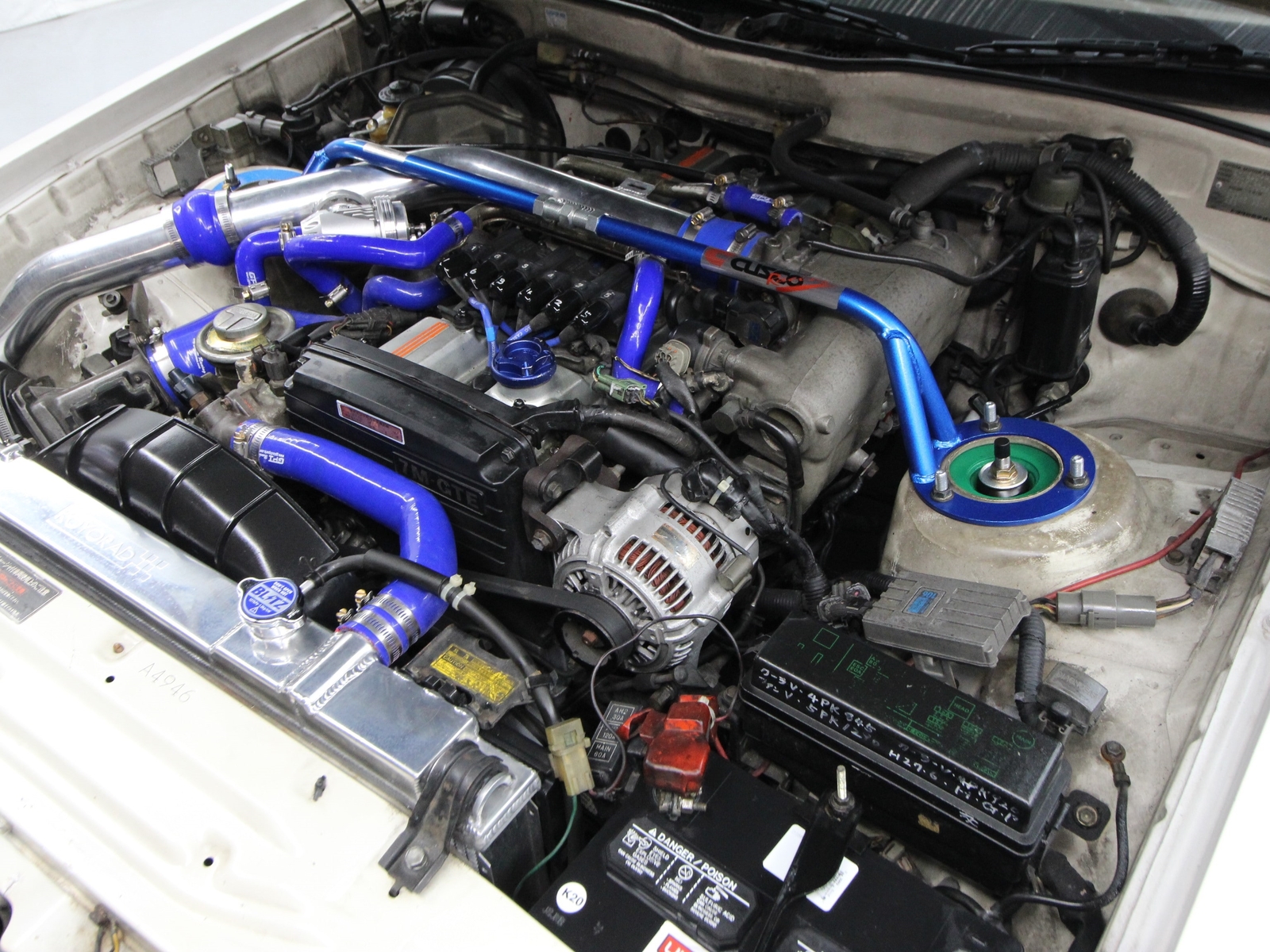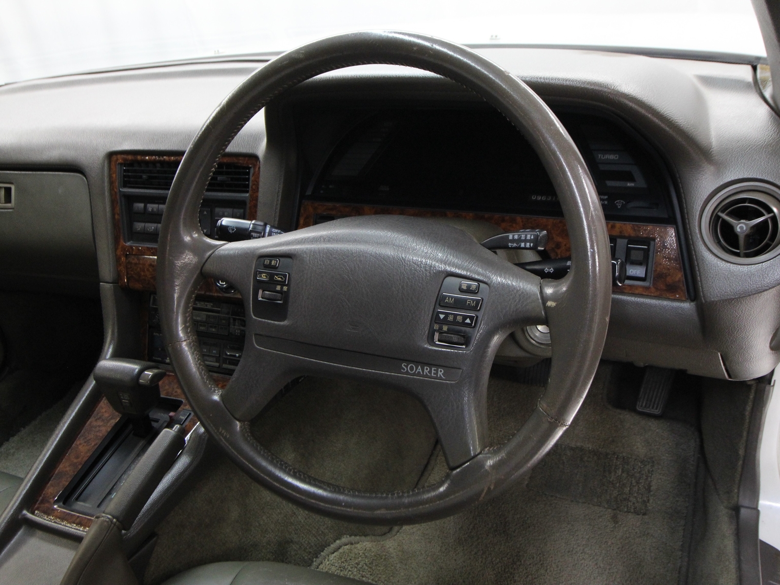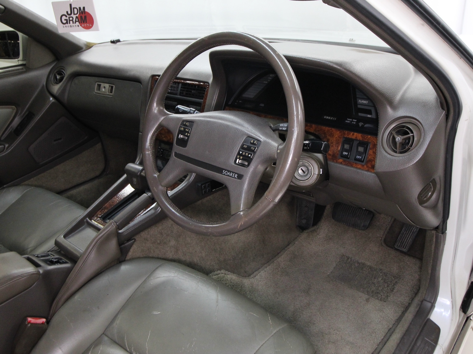 96,310 Kilometers HIGHLIGHTS • 1 of 500 Aerocabins produced for the 1989 model year • Turbocharged 7M-GTE 3.0L/237 HP inline 6-cylinder engine • Automatic transmission • Power-retractable top and rear window • Custom BBS-style wheels • Power leather seats • Automatic climate control • Brembo 4-piston front brake calipers with drilled and slotted rotors • Upgraded intercooler and piping • HKS blow-off valve • JDM Blitz air intake • Koyo aluminum radiator • 3 inch exhaust system with HKS downpipe and Blutz Nur Spec cat-back exhaust • Cusco strut tower brace • Tein coilovers • Soarer was a personal luxury GT coupe built and sold in Japan • Metric odometer reads 96,310 kilometers, approximately 59,844 miles EQUIPMENT • Power windows, locks and mirrors • Digital gauge cluster • Dolby Technics cassette radio • Rear spoiler • Lace seat covers • Fog lights