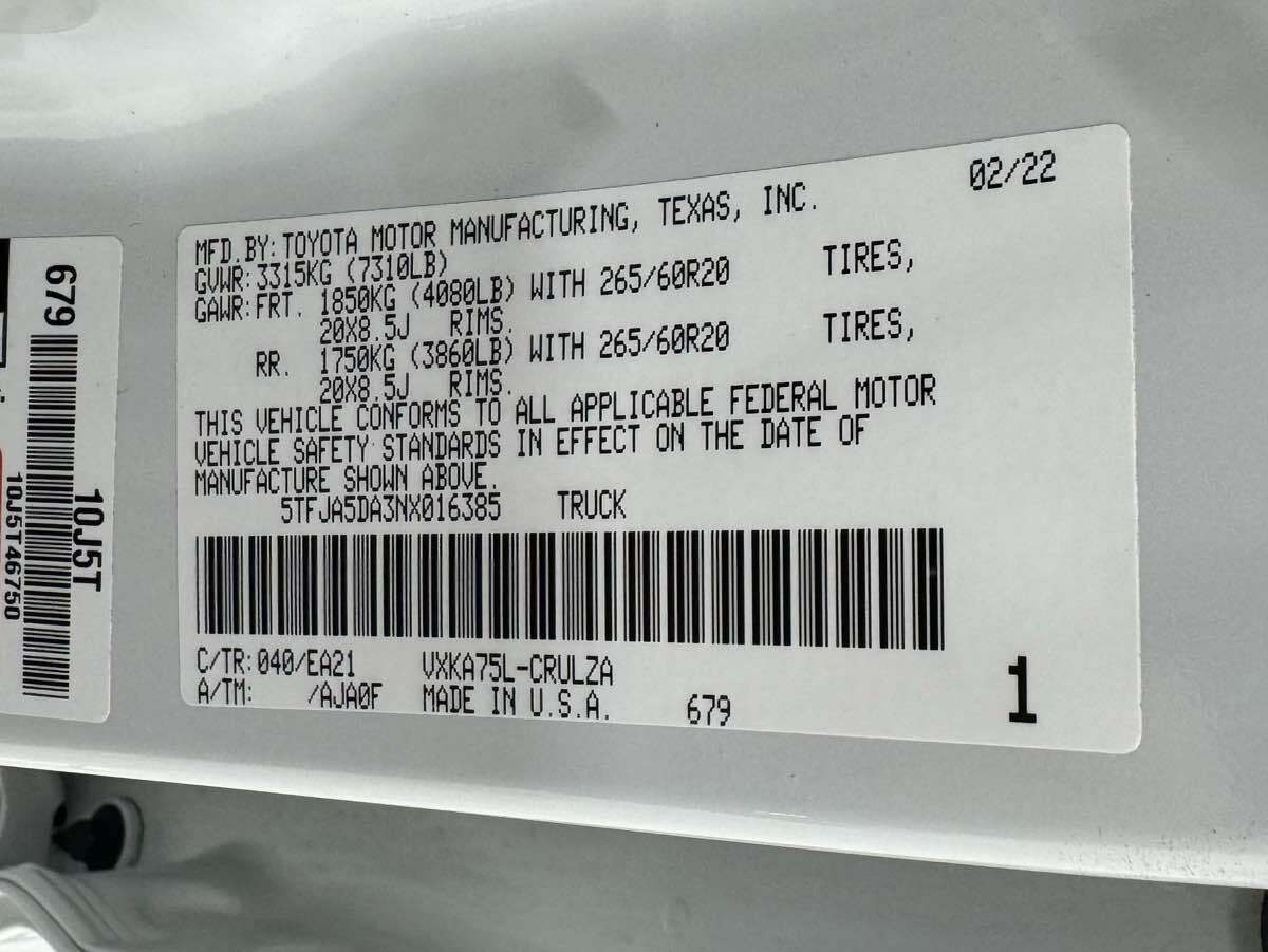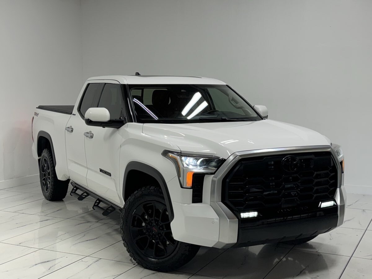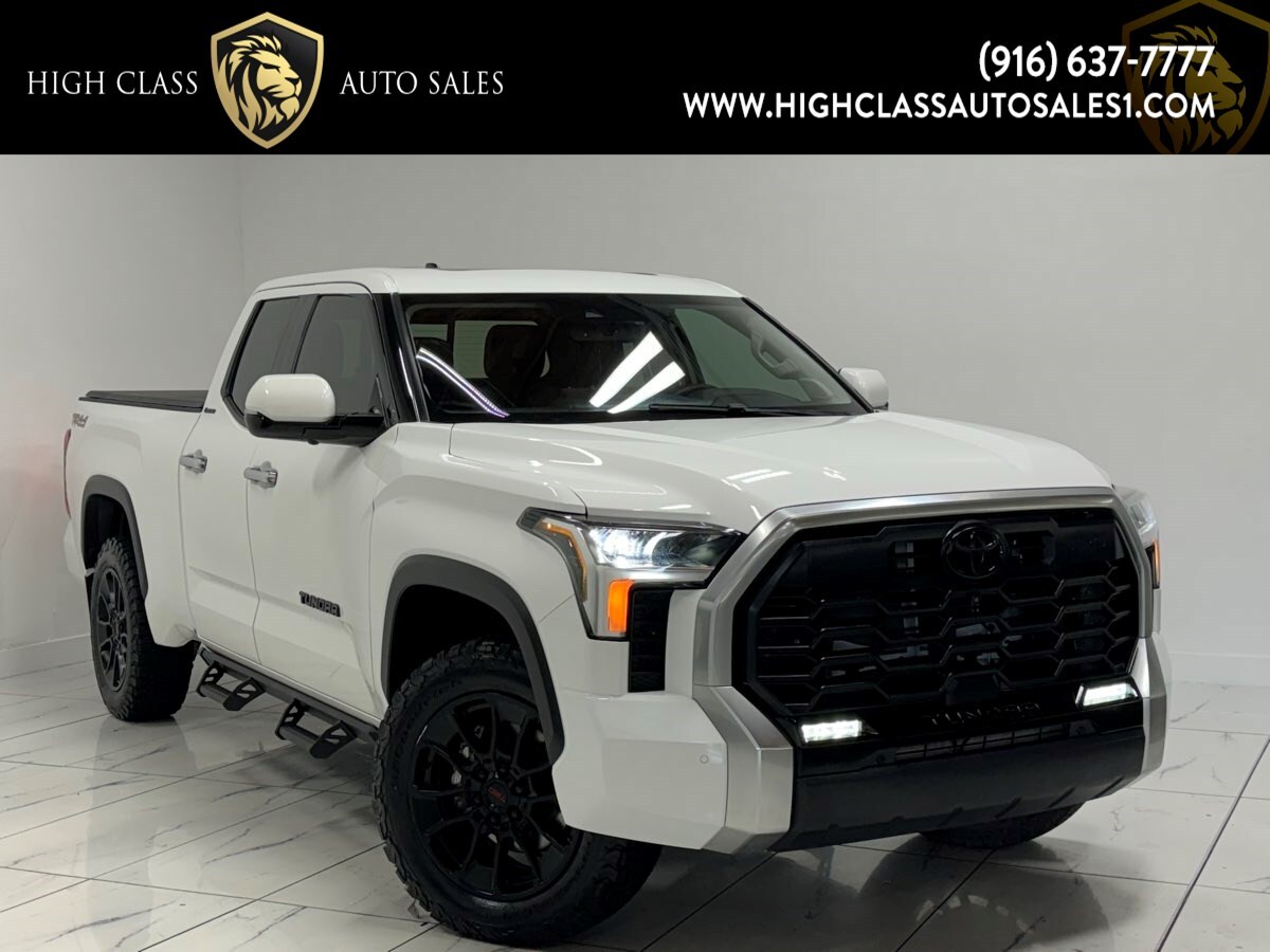 Our upscale 2022 Toyota Tundra Limited Double Cab 4X4 blends capability - comfort - and a commanding Wind Chill Pearl design! Motivated by a Twin-TurboCharged 3.5 Liter i-FORCE V6 supplying 389hp matched to a 10 Speed Automatic transmission for a feeling of effortless strength. You can use that muscle to master workdays and weekends alike - and this Four Wheel Drive truck scores nearly 22mpg on the highway. Our Tundra also looks terrific with its mighty grille - LED lighting - fog lamps - an easy lift/lower tailgate - heated power-folding mirrors - an aluminum-reinforced composite bed - 20-inch alloy wheels - side steps - a bedliner - a tonneau cover - a sunroof - and sophisticated chrome details. Top-shelf amenities for our Limited cabin include heated/ventilated SofTex power front seats - a leather-wrapped heated steering wheel - dual-zone automatic climate control - a power sliding rear window - keyless entry/ignition - and a soft-touch dash. A large 14-inch touchscreen anchors the infotainment system - which supports wireless Apple CarPlay/Android Auto - WiFi compatibility - Bluetooth - and a nine-speaker sound system. Toyota complements our truck's rugged spirit with intelligent safety measures such as front/rear automatic braking - blind-spot monitoring - adaptive cruise control - a rearview camera - lane-keeping assistance - and more. When it comes to better trucking - our Tundra Limited takes the prize! Save this Page and Call for Availability. We Know You Will Enjoy Your Test Drive Towards Ownership!