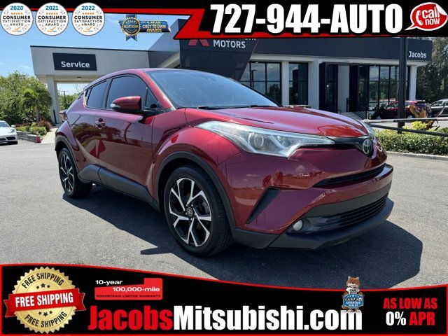 C-HR XLE Premium, 4D Sport Utility, 2.0L I4 DOHC 16V, CVT, FWD, Ruby Flare Pearl, Black w/Fabric Seat Material, 4-Wheel Disc Brakes, 6 Speakers, ABS brakes, Air Conditioning, Alloy wheels, AM/FM radio, Auto High-beam Headlights, Auto-dimming Rear-View mirror, Automatic temperature control, Axle Ratio: TBA, Brake assist, Bumpers: body-color, Delay-off headlights, Driver door bin, Driver vanity mirror, Dual front impact airbags, Dual front side impact airbags, Electronic Stability Control, Exterior Parking Camera Rear, Fabric Seat Material, Four wheel independent suspension, Front anti-roll bar, Front Bucket Seats, Front Center Armrest, Front dual zone A/C, Front reading lights, Fully automatic headlights, Illuminated entry, Knee airbag, Leather Shift Knob, Low tire pressure warning, Occupant sensing airbag, Outside temperature display, Overhead airbag, Panic alarm, Passenger door bin, Passenger vanity mirror, Power door mirrors, Power steering, Power windows, Radio data system, Radio: AM/FM Stereo w/7 Touch-Screen Display, Rear anti-roll bar, Rear side impact airbag, Rear window defroster, Rear window wiper, Remote keyless entry, Speed control, Speed-sensing steering, Split folding rear seat, Spoiler, Steering wheel mounted audio controls, Tachometer, Telescoping steering wheel, Tilt steering wheel, Traction control, Trip computer, Turn signal indicator mirrors, Variably intermittent wipers, Wheels: 18 Sport Alloy. Clean CARFAX.27/31 City/Highway MPG Ruby Flare Pearl 2018 Toyota C-HR XLE Premium FWD 2.0L I4 DOHC 16VAwards:* 2018 Best Resale Value Awards * 2018 10 Most Awarded BrandsHere at Jacobs Mitsubishi our goal is to make you a customer for life. We want you to have the most enjoyable car buying experience possible . All prices displayed do not include additional accessories or fees and costs of closing including any government, additional packages applied to vehicle, including but not limited to Jacobs Care, Reconditioning fees,federal, dealer fees, taxes, registration, dealer document, cost of accessories, emissions testing, or any other fees. All prices, specifications and availability are subject to change at any time, without notice. Not all applicants will be approved, offers may change at any time and may not reflect accuracy online, see dealer for most updated offers. Not all offers can be combined. Applicant may qualify for partial discount displayed by financing with another approved lender through and provided by Jacobs Mitsubishi. Contact dealer for most current information, availability, or details.