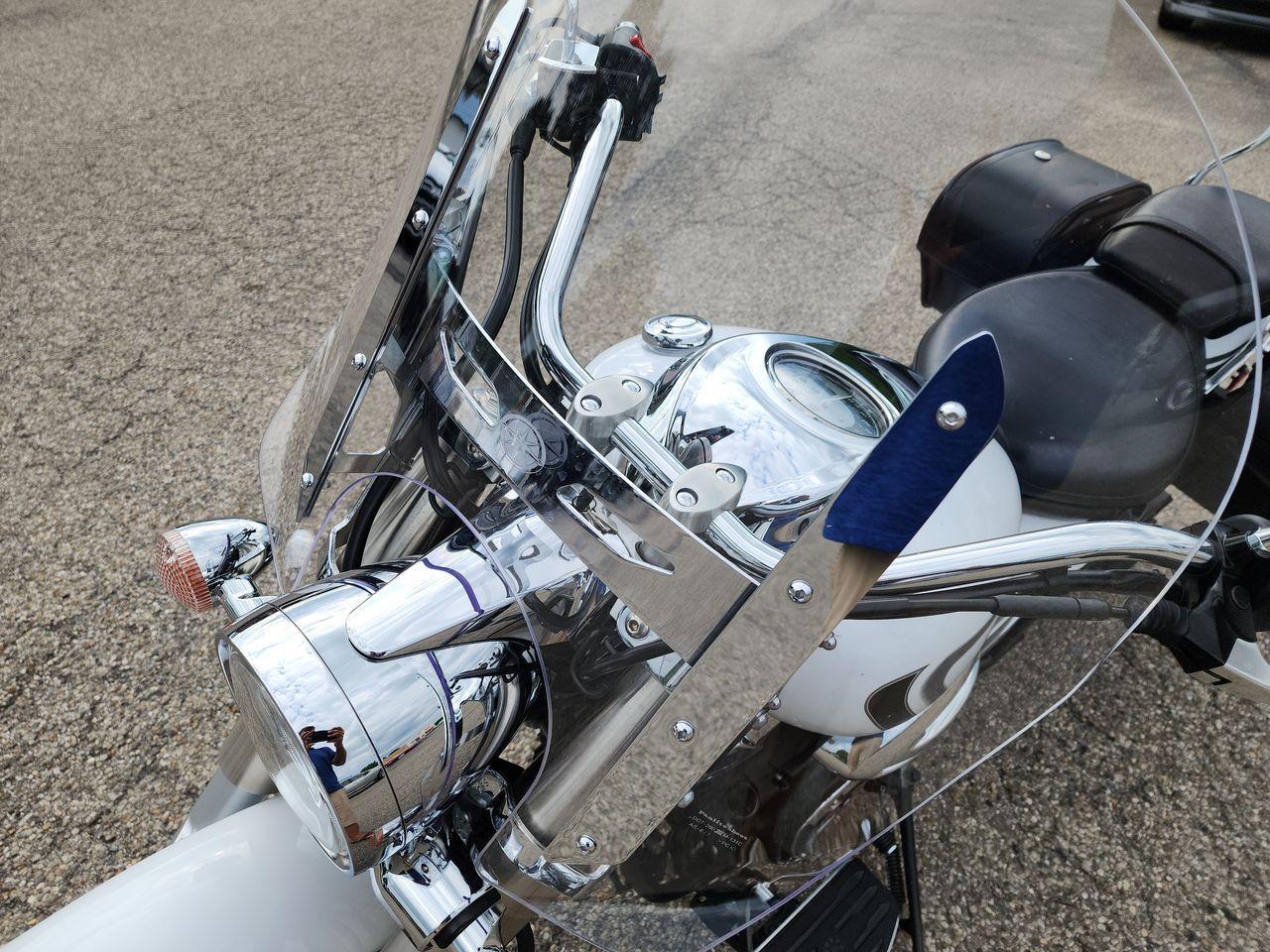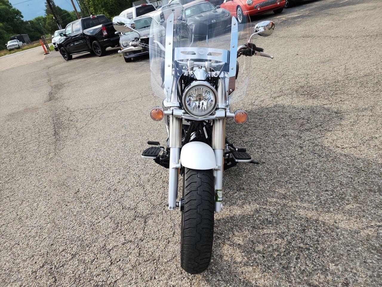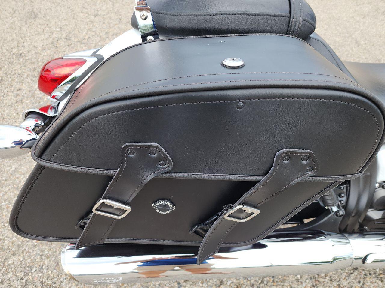 Showroom quality condition Yamaha V Star 950 XVS950A in Pearl White with just 9K original miles. Super clean condition bike, garage kept with no corrosion issues or signs of outdoor storage. No accidents or signs of being laid down, loaded with extras and features including: Viking hard side leather look locking saddle bags, Vance & Hines exhaust system, Yamaha OEM windshield, Chrome upgrades, Passenger backrest, and more. Great deal on a super clean low mileage bike, in stock and ready to ride home TODAY!!