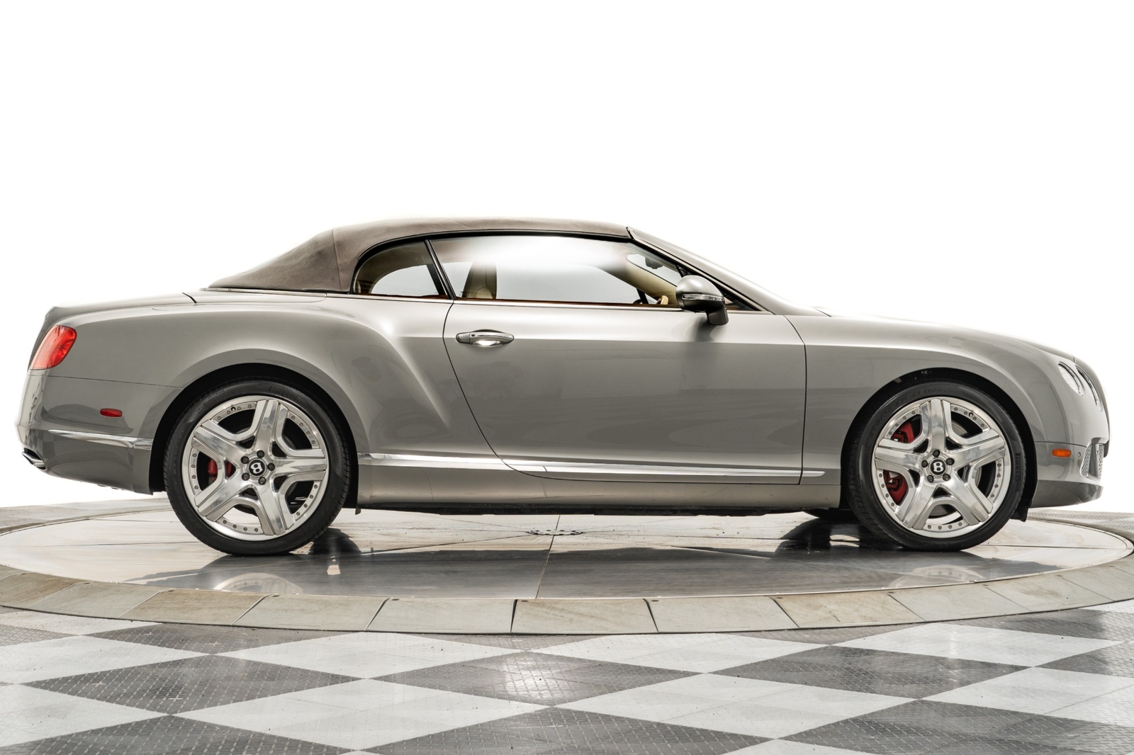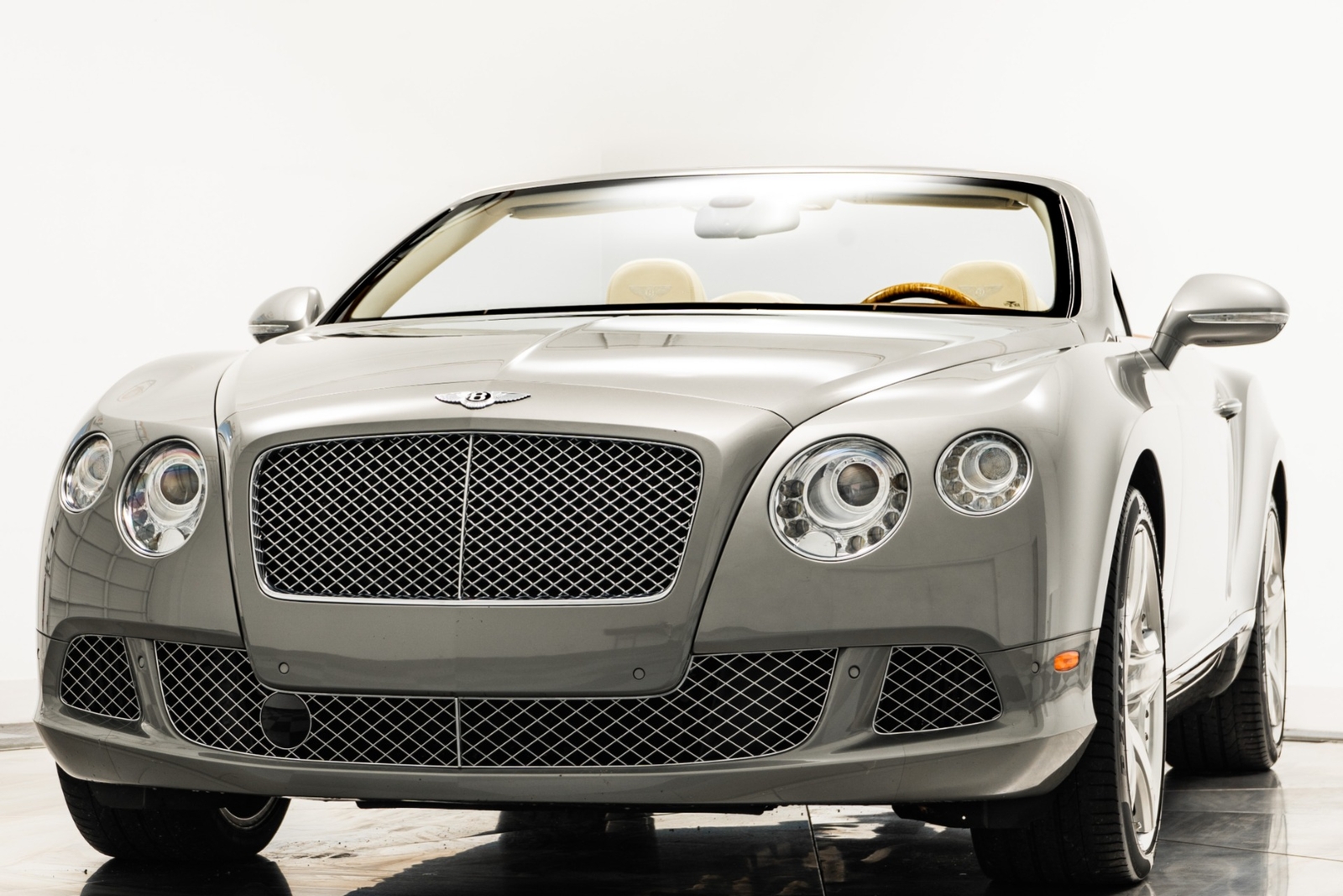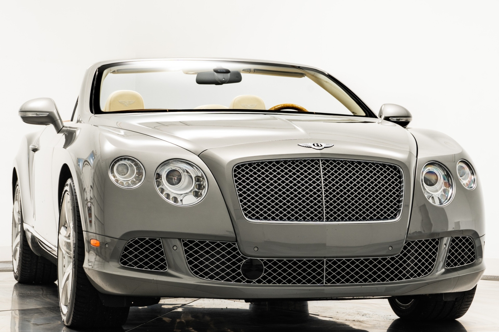 We have just added to our extensive exotic car inventory a beautiful 2013 Bentley Continental GTC in Venusian Grey with Magnolia leather interior and only 28,744 miles. This GTC is loaded with: 6.0L twin turbo W12, automatic transmission, navigation, Mulliner driving specification with polished 21 inch modular wheels, red brake calipers, bright chromed lower grille, knurled shift lever, massage front seats with heat and ventilation, Naim for Bentley premium audio, adaptive cruise control, wood and hide three spoke steering wheel, contrast stitching, Bentley wings embroidered in headrests, tamo ash veneers, veneered door and quarter panel inserts, neck warmer, rear view camera, dark burl walnut veneers, deep pile floor mats, boot carpet matched to secondary hide, privacy handset, rear camera, 6 CD changer, car cover, battery charger, gray convertible top and much more.
