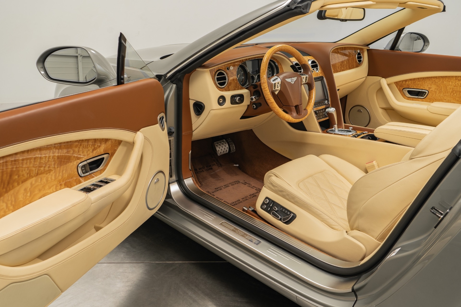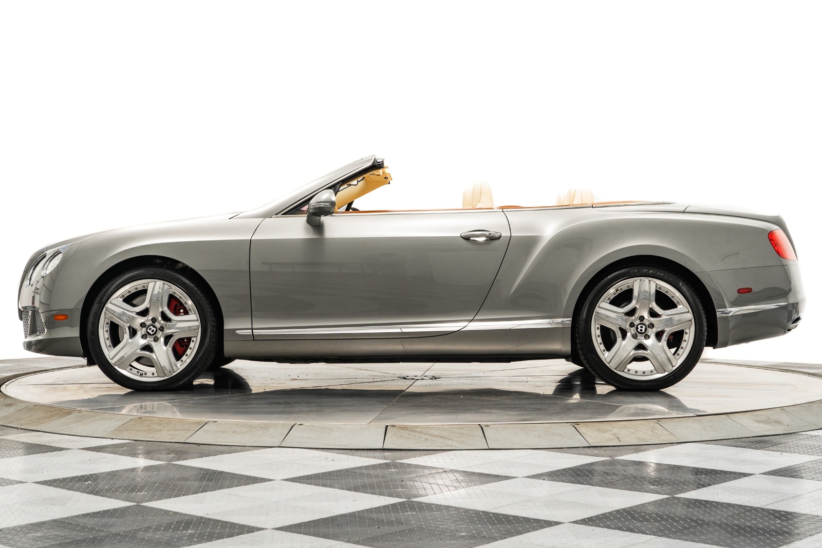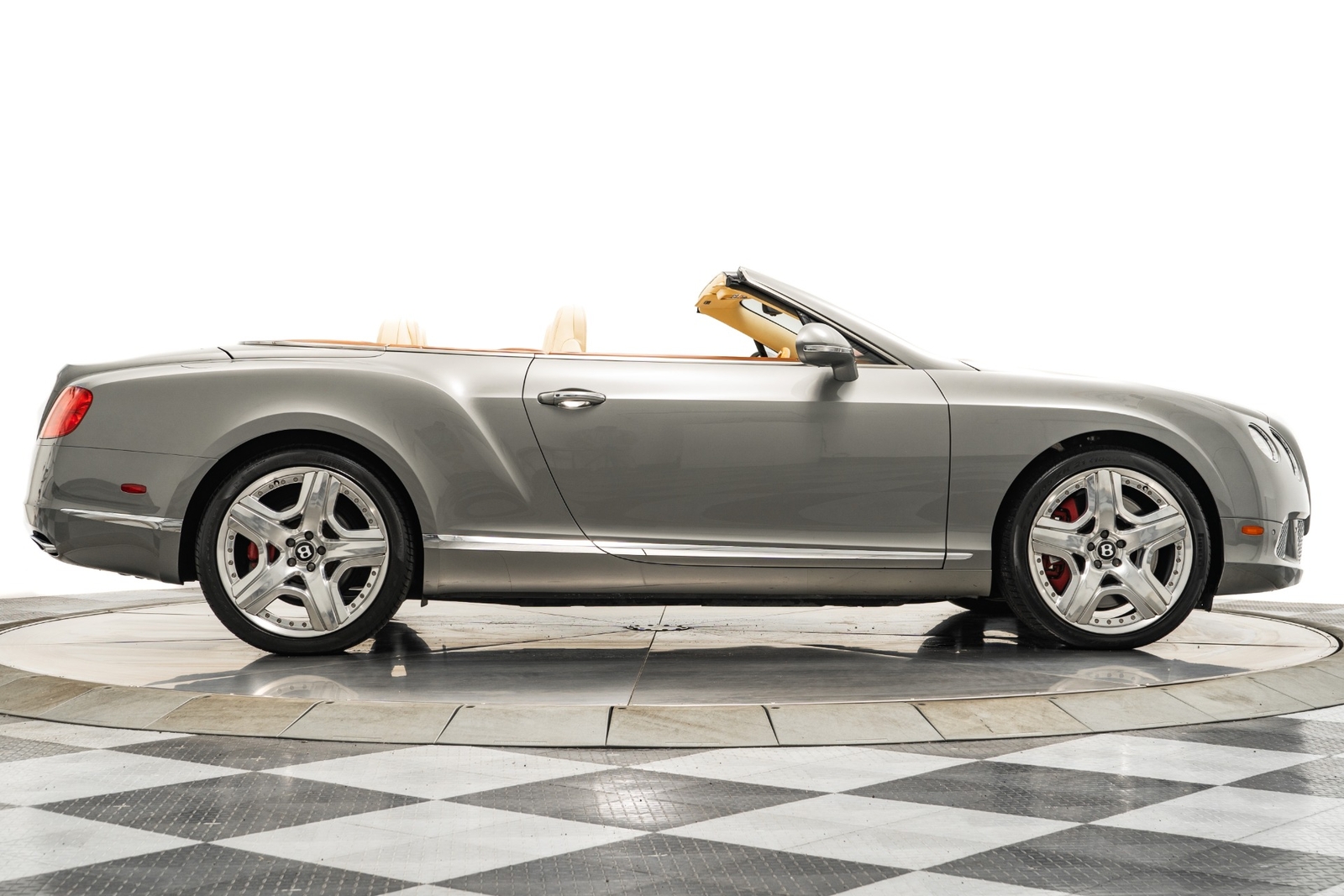 We have just added to our extensive exotic car inventory a beautiful 2013 Bentley Continental GTC in Venusian Grey with Magnolia leather interior and only 28,744 miles. This GTC is loaded with: 6.0L twin turbo W12, automatic transmission, navigation, Mulliner driving specification with polished 21 inch modular wheels, red brake calipers, bright chromed lower grille, knurled shift lever, massage front seats with heat and ventilation, Naim for Bentley premium audio, adaptive cruise control, wood and hide three spoke steering wheel, contrast stitching, Bentley wings embroidered in headrests, tamo ash veneers, veneered door and quarter panel inserts, neck warmer, rear view camera, dark burl walnut veneers, deep pile floor mats, boot carpet matched to secondary hide, privacy handset, rear camera, 6 CD changer, car cover, battery charger, gray convertible top and much more.