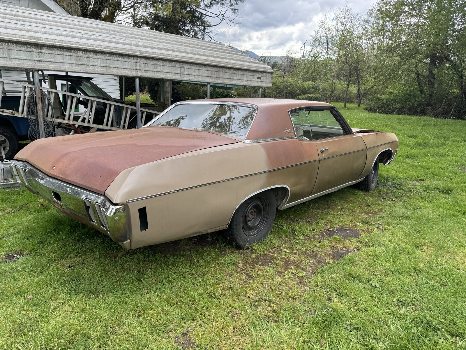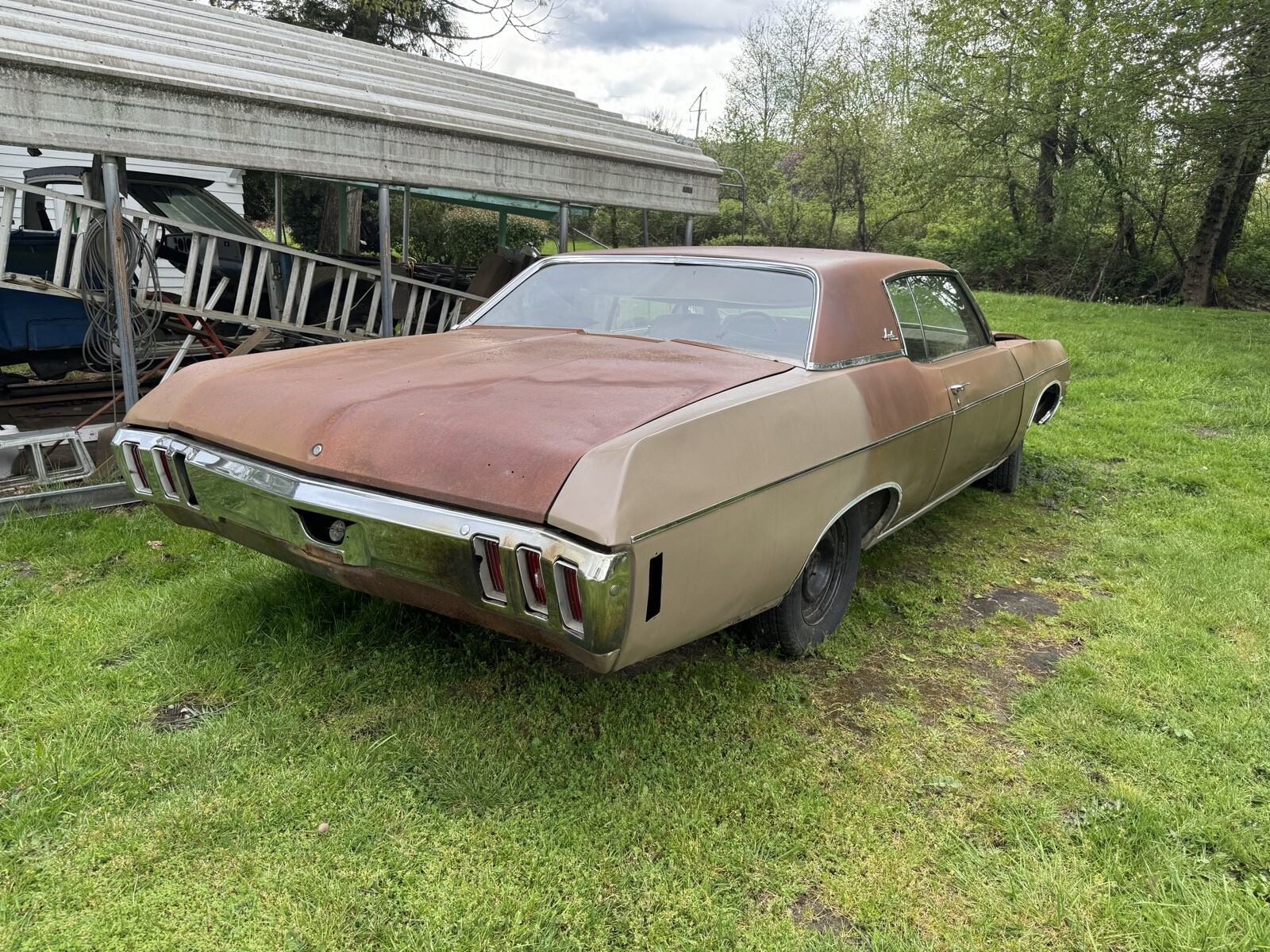 1970 Impala Custom Coupe California car originally bought new in San Diego CA. Sitting since the late 1980’s. ***Currently does not run or drive and needs to be transported*** Original a 350 V8 car converted to a 250 straight six cylinder during the late 1970’s early 1980’s. Body overall decent, typical bottom front front fender rust and very minimal in the quarters. Trunk great and floors look good from underneath though did not pull the carpeting up yet though it came from a dry climate. Interior complete though needs complete reupholstering. Car is definitely a project though all there. The Impala has the original California title from the 1970’s. I want to disclose this right off the bat. Check with your DMV about transferring the title in your name before bidding. Selling in As Is condition and I don’t have any more photos as of yet. The Impala is stored at my friends house in Fall City WA (98024) and buyer is responsible for removal and transport. I am currently out of state (Nevada) though still live in Seattle. My friend has the keys and the title to give to the transport driver.Seller's Notes