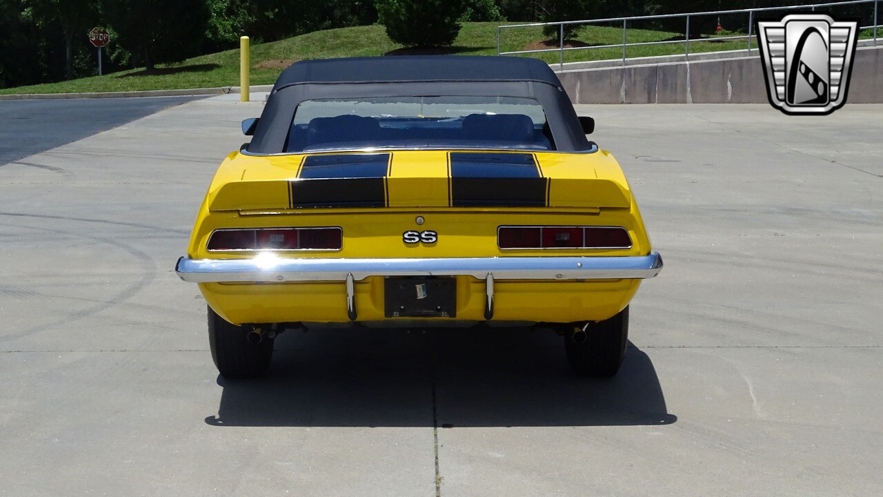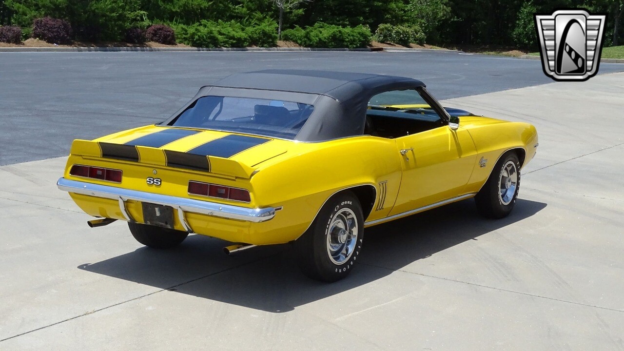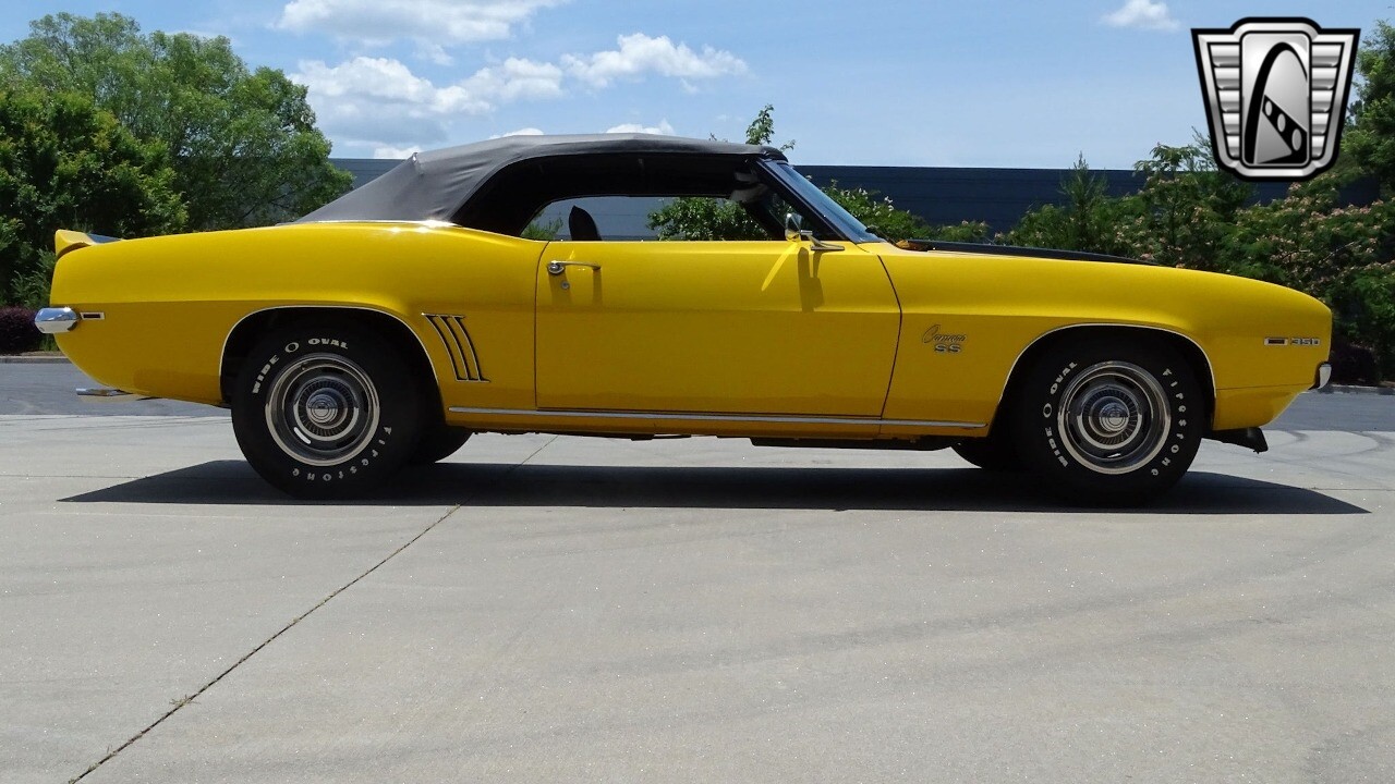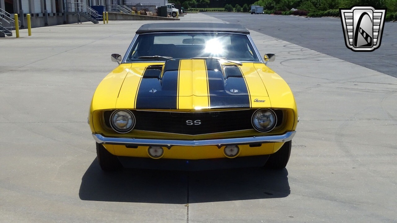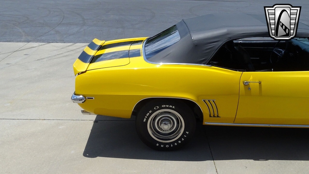 This particular 1969 Camaro is finished in a brilliant shade of Daytona Yellow with Black Racing Stripes over a Black Vinyl interior. Power is sent to the rear wheels by a 350ci V8 mated to a T-400 Automatic Transmission. The convertible soft top was replaced and restored in 2022 with a high quality replacement. Options include Power Brakes, Power Steering, Console Gauge Package and Cowl Induction Hood as well as an AM/FM radio. All electrical components, including dash warning lights etc. work like they did from the factory. The underbody was media blasted during restoration and painted to match the finish quality of the exterior paint. Suspension components were restored with SS correct OEM replacements. Brake lines, parking brake, fuel system and exhaust were restored with stainless steel OEM correct replacements for both performance and longevity. This Camaro has been maintained and cared for at a high level. From the moment you turn the key and drive down the road you will be impressed with this vehicle. A great addition for any collector that wants to show off at local shows or just take a cruise on a sunny day. Consider yourself to be among the select few when you get behind the wheel of this 1969 Chevrolet Camaro. .