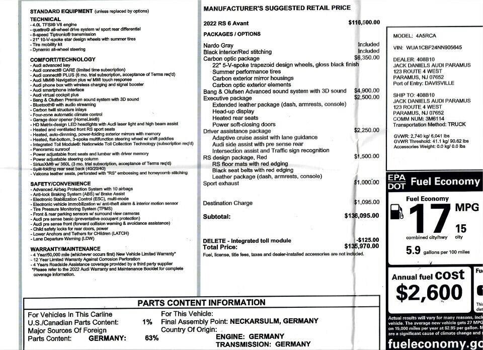 2022 Audi RS 6 Avant 4.0T quattro Avant AWD 4dr Wagon