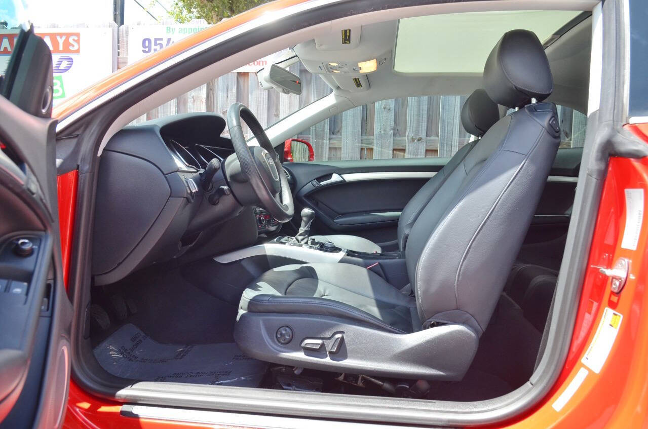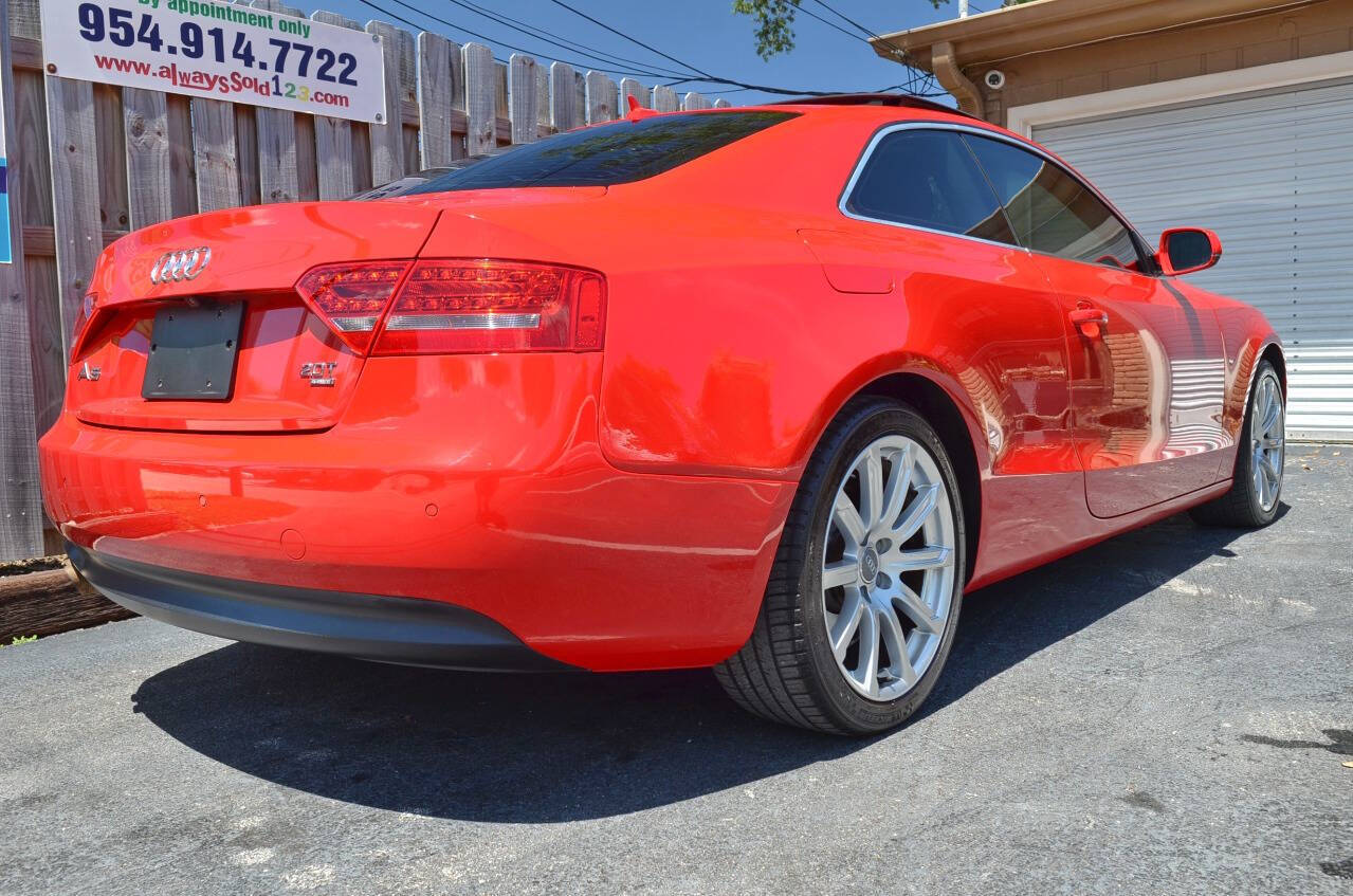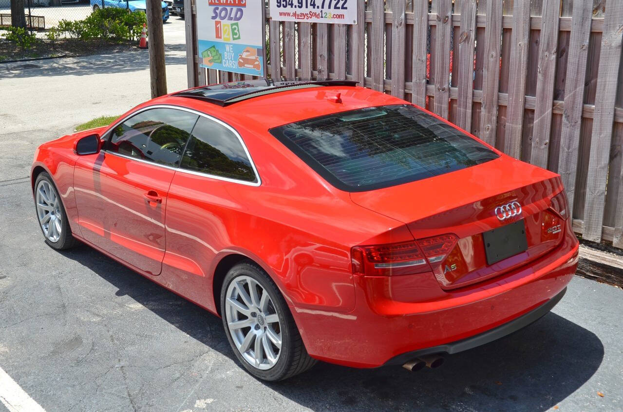 THIS 2011 AUDI A5 2.0T QUATTRO PREMIUM COUPE 2D COMES WITH A GREAT LIST OF FEATURES AND GOOD MILES. ENJOY THE LUXURIOUS INTERIOR, ALL-WHEEL DRIVE, AND SLEEK DESIGN FOR AN EXCEPTIONAL DRIVING EXPERIENCE. THIS AFFORDABLE LUXURY COUPE IS PERFECT FOR INDIVIDUALS SEEKING STYLE AND PERFORMANCE. LOCATED IN SUNNY FORT LAUDERDALE, THIS VEHICLE IS A MUST-SEE! SOLD BY MARK YEV. BY APPOINTMENT ONLY Call Or Text855-774-2265 All advertised prices exclude government fees and taxes, finance charges, dealer document preparation charges, and emission testing charges. Optional Credit Insurance, Physical Damage of Liability Insurance, dealer or Delivery Fees. All Fees are Not Negotiable.Subject to prior sale. Price is subject to qualification criteria and may be contingent upon finance approval. Our Prep - Doc fee is $655.00 , E-Filing Fee is $145.00 The price for listed vehicles as equipped does not include charges such as, Title, Registration Fees, or State or Local Taxes. In case of Financing Banking Lending Fee is Variable Starting at $799 and Based on Your Credit. The front windshield is in excellent condition. The paint is in great shape and condition. No dings are visible on this vehicle. The tires are slightly worn with about 75% of tread life left. The interior was well maintained and is extra clean. The exterior was well maintained and is extra clean. The engine is functioning properly and has no issues. This vehicle has no previous collision damage. The transmission shifts very smoothly. The brakes are in great condition. The battery is in excellent condition. The car was previously owned by a non smoker. A full size spare is included with this vehicle. This vehicle comes with a spare key.