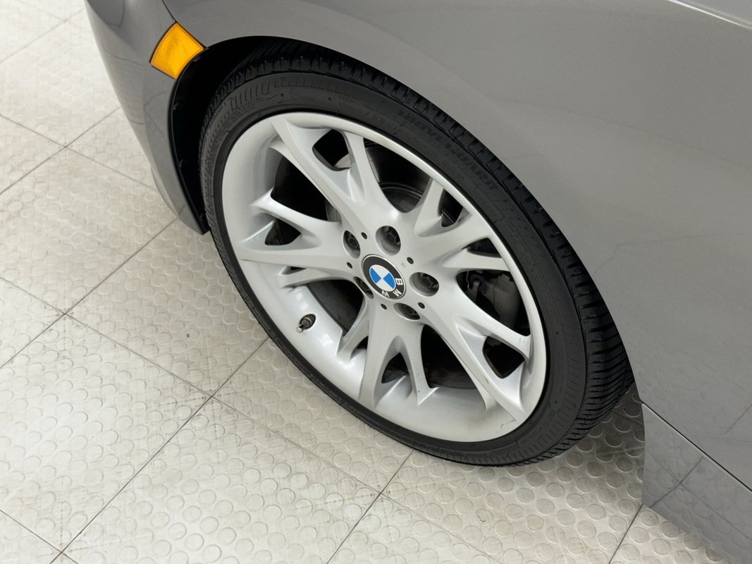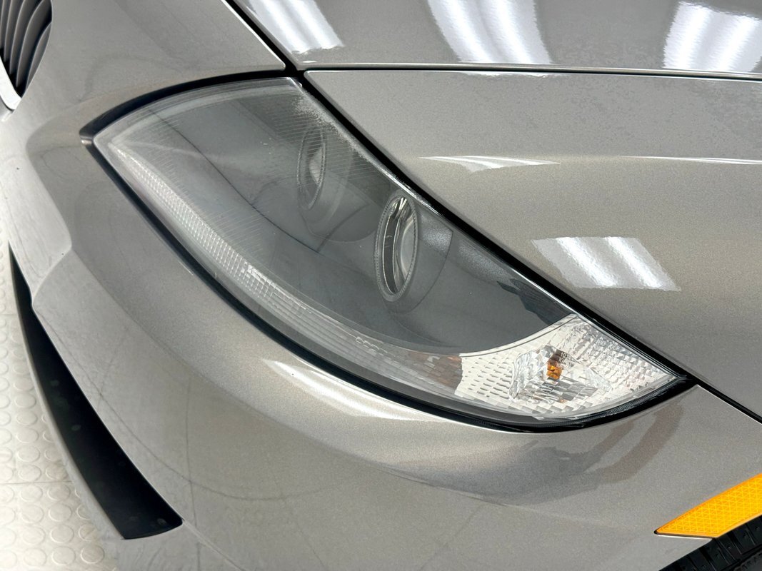 Stratus Gray Metallic is the color our Z4 wears and presents as a gunmetal gray, contrasted by the black vinyl top. The wide rounded nose of the car contains the trademark kidney grille and familiar bonnet badge of the BMW logo. The flush headlight covers over projection lights are clear and the long nose of the Z4 is flanked by stylish turn signals embedded behind another BMW crest. Following the rounded door gaps is the short tail of the car and flat rear valance housing sporty flush rear taillights and an arching hood that almost forms a little wing with third brake light. The car looks wide from the back, augmented by the narrowing canvas top and rear glass window. 18-inch alloy wheels are standard and are in excellent condition, as is the canvas top and its rear window with its integral defogger. The paint is also in great condition, and we could not find obvious imperfections.