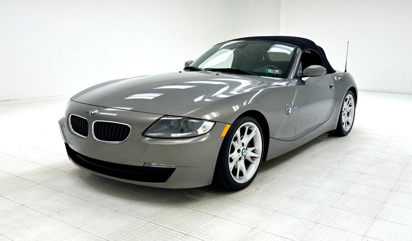 For consignment, a 2008 BMW Z4 roadster, a garage kept model from its final year of first generation production. After the success of the Z3, BMW created the larger and more refined tourer in the Z4 which was available in manual or automatic and in 2006, a hardtop coupe version was introduced. This car sports the venerable 3.0 liter inline 6 and a title verified 43,139 actual miles.