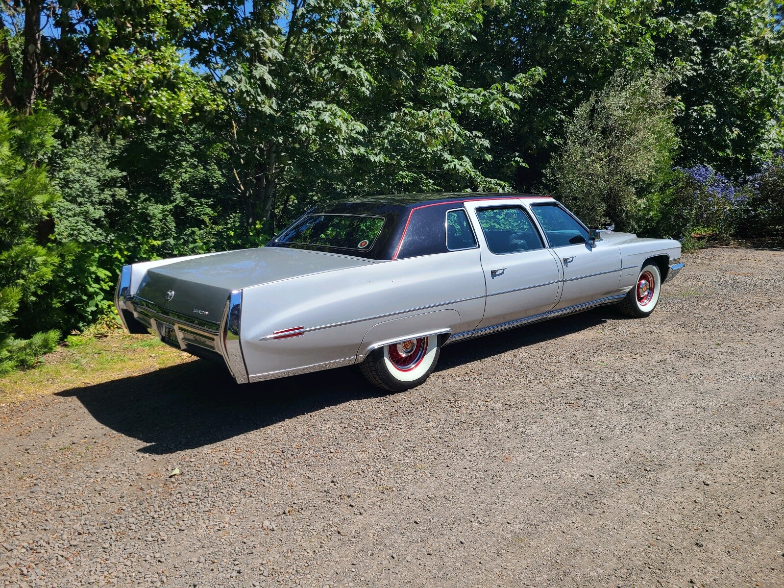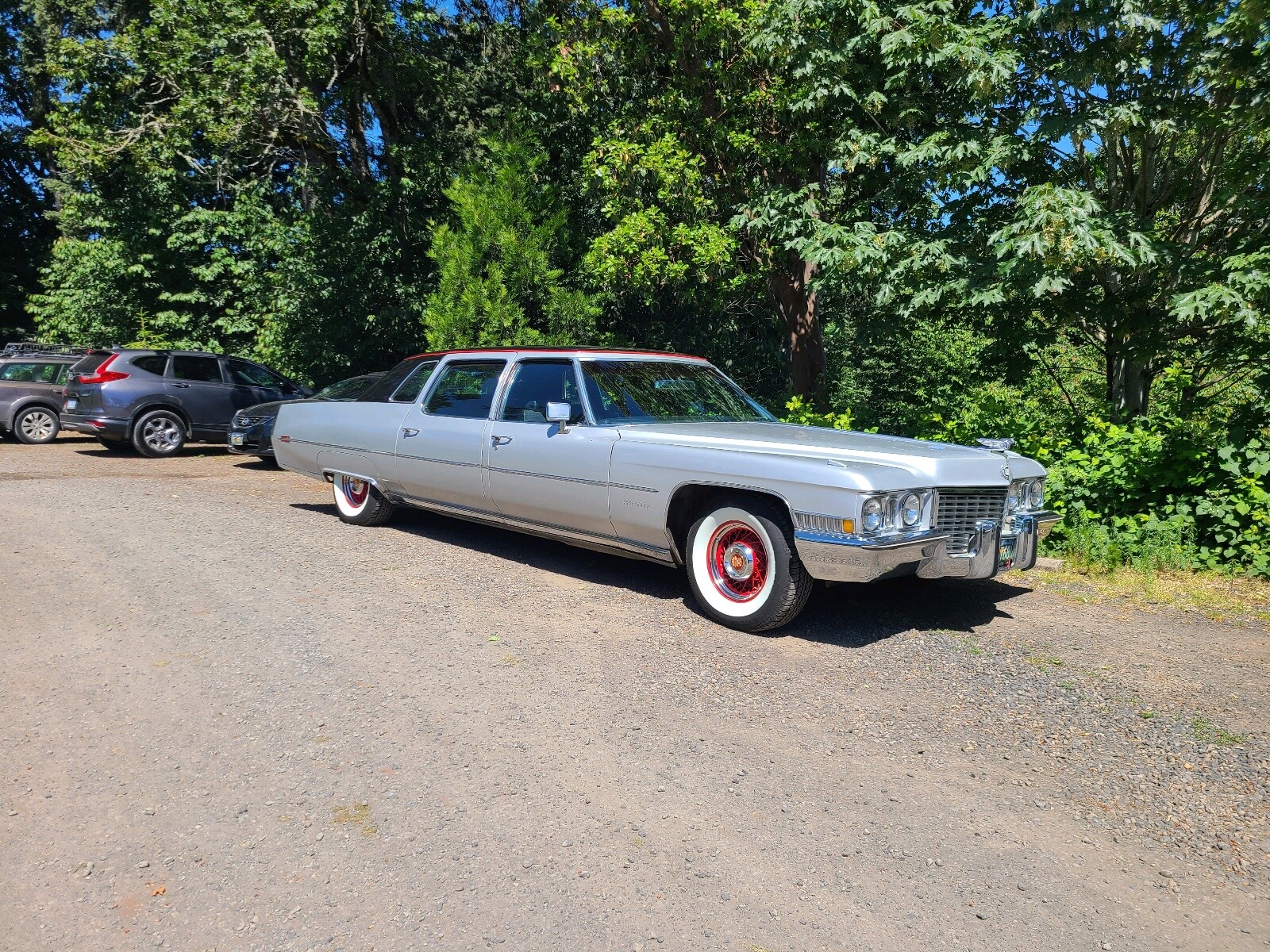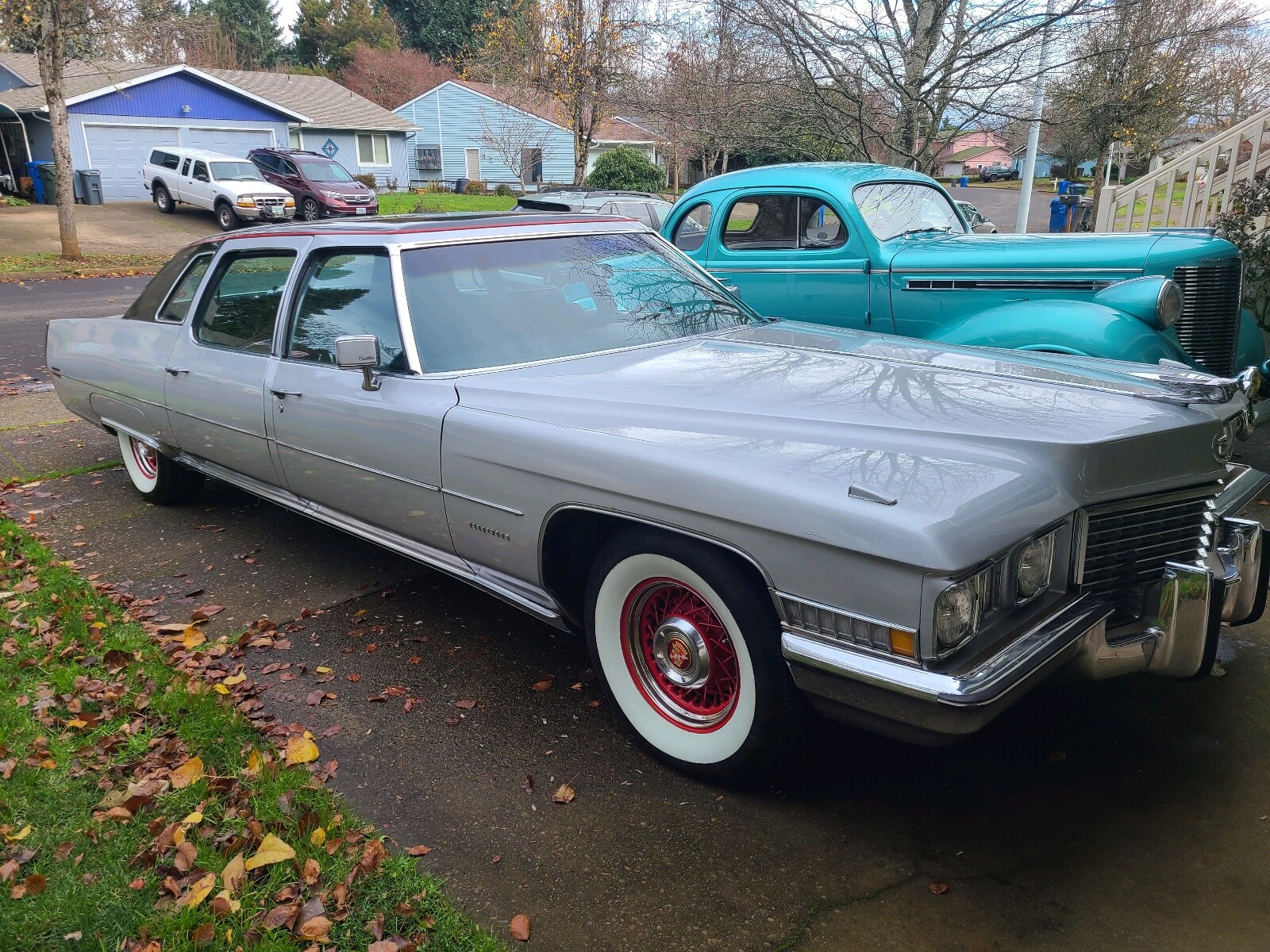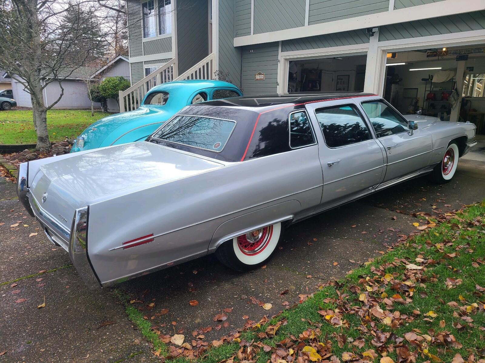 1972 Cadillac Fleetwood Series 75 factory limo. Interior is in great shape and is all original. Runs and drives well. New steering gear box, power steering pressure hose, radiator, fuel pump, rubber fuel lines, spark plugs, spark plug wires, distributor cap and rotor, exhaust manifold gaskets, alternator, and fresh oil change. Still has some exhaust leaks that need to be addressed. Tires are in good shape. A/C probably needs a recharge but it's been converted to R-134. Custom oil pressure, alternator, and temperature gauges mounted under dash. Radio does not work. I've driven it to work many times which is a 35 mile drive one way and it drives beautifully each time. Paint is not perfect, was originally black before being painted silver. Vinyl top was deleted and roof was painted black. Silver paint has some chips in it and minor scratches but nothing major. I was planning on using this car to host wine tours in but I don't enjoy working on older cars like I used to and can't afford for a mechanic shop to maintain it. The wine tour decals on the roof will be removed before sale.