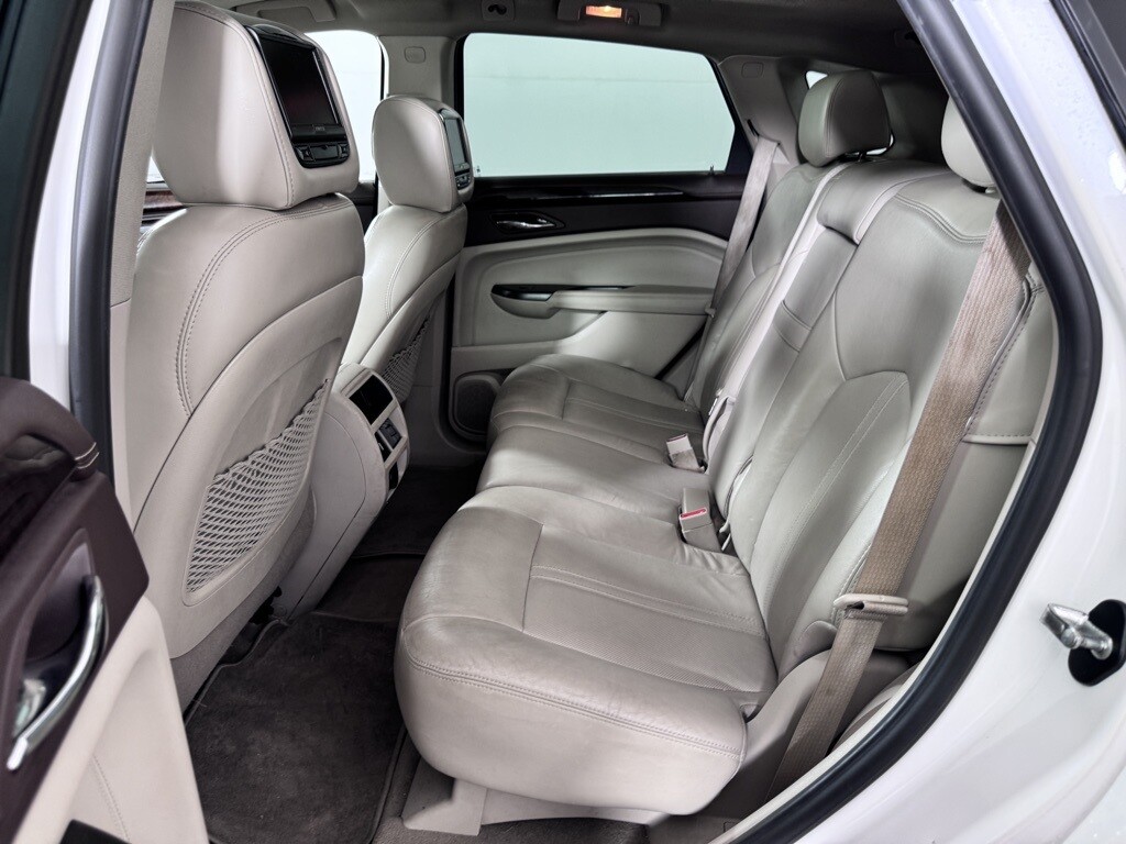Clean CARFAX. Platinum Ice Tricoat 2012 Cadillac SRX Luxury AWD 6-Speed Automatic 3.6L V6 SIDI DOHC VVT GPS Navigation, Back Up Camera, Moonroof, Leather, Heated Seats, SRX Luxury, 4D Sport Utility, 3.6L V6 SIDI DOHC VVT, 6-Speed Automatic, AWD, Platinum Ice Tricoat, Titanium/Ebony Accents w/Leather Seating Surfaces, 8-Way Power Front Passenger Seat Adjuster, Adaptive Remote Start, Automatic Air Circulation/Air Quality Sensor, Bluetooth For Phone, Body-Colored Heated Power Outside Mirrors, Chrome Roof Rails, Driver & Front Passenger Heated Seats, Driver & Front Passenger Power Lumbar Control, Front & Rear Park Assist, Front Driver-Side Thigh Support Seat Adjuster, Heated Wood Trim Steering Wheel, Humidity Sensor, Inside Rear-View Auto-Dimming Mirror, Keyless Access, LED Spotlights w/Lighting Pipes, Memory Package, Navigation System, Power Liftgate, Power UltraView Double-Sized Sunroof, Power-Adjustable Pedals w/Memory, Preferred Equipment Group 1SB, Rainsense Wipers, Rear Floor Console, Rear Power Liftgate w/Memory Height, Rear Seat Entertainment System, Rear Storage Area Cargo Management, Rear Vision Camera, Retractable Cargo Shade, Universal Home Remote, Wood Trim Package.