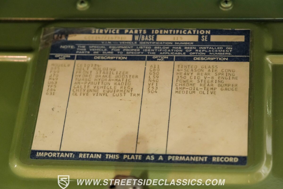 Numbers Matching 350 V8, Auto, A/C, PS, PB w/ Frt Disc, Correct Medium Olive Rep