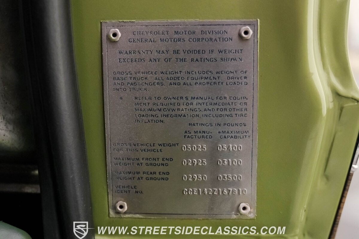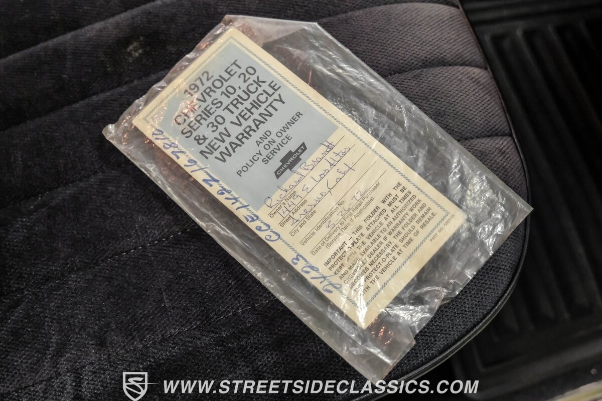 Under the hood, the numbers-matching 350 V8 engine is the star of the show. Recently rebuilt with just a few hundred miles on the top end (receipt included), this powerhouse is paired with a TH350 3-speed automatic transmission for smooth, reliable performance. The Quadrajet 4-barrel carburetor ensures optimal fuel delivery, while the 12-bolt rear end and power steering make for a confident and comfortable ride. Power front disc brakes provide ample stopping power. The engine bay looks stock and well-maintained, a true showcase of the quality of this C10.