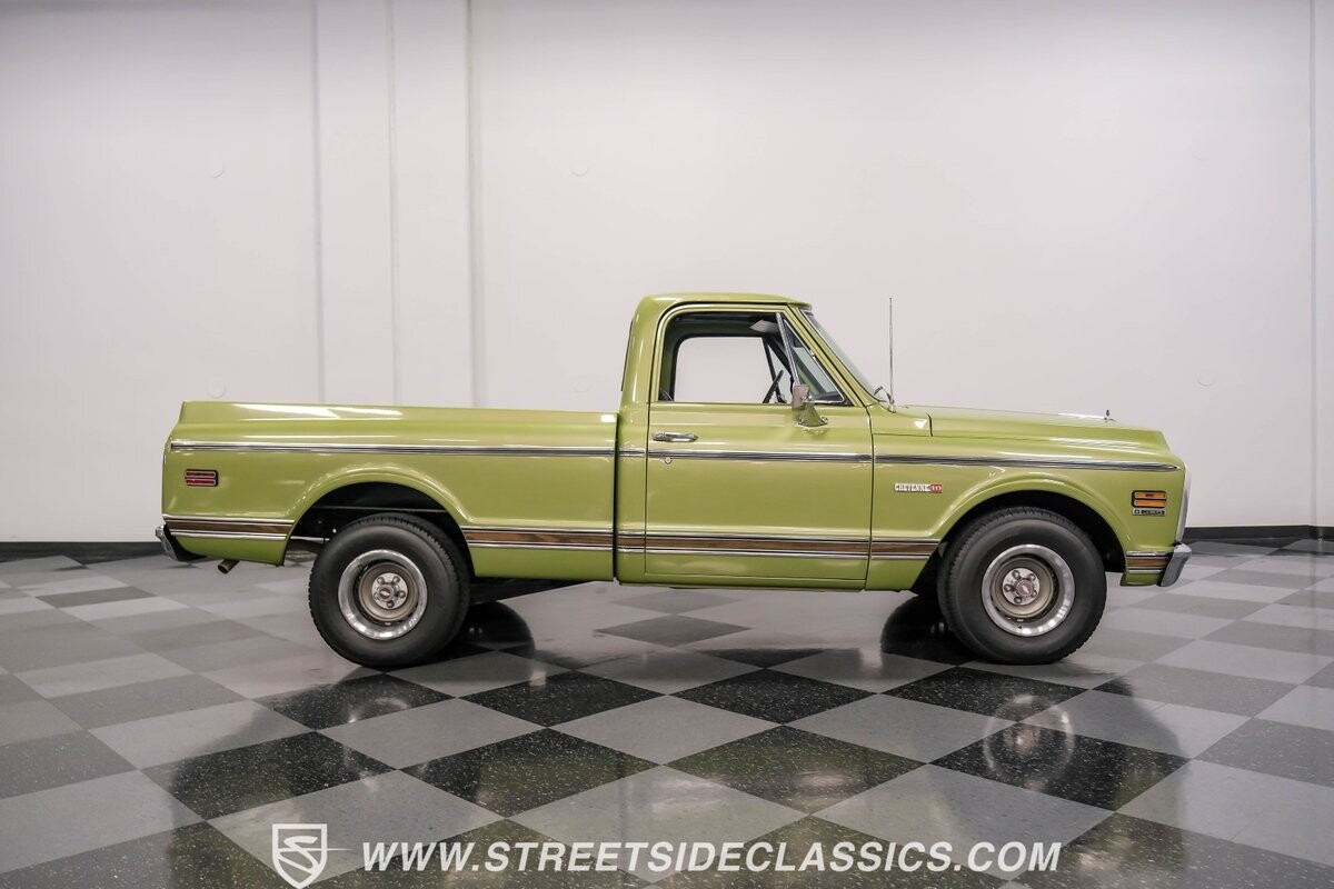 This 1972 Chevrolet C10 Cheyenne, with its numbers-matching 350 V8, top-notch restoration, and eye-catching Medium Olive paint, is a truck that demands attention. The interior is a perfect blend of comfort and style, while the mechanical upgrades ensure a smooth, comfortable ride. Don't miss your chance to own this beauty. Call today!