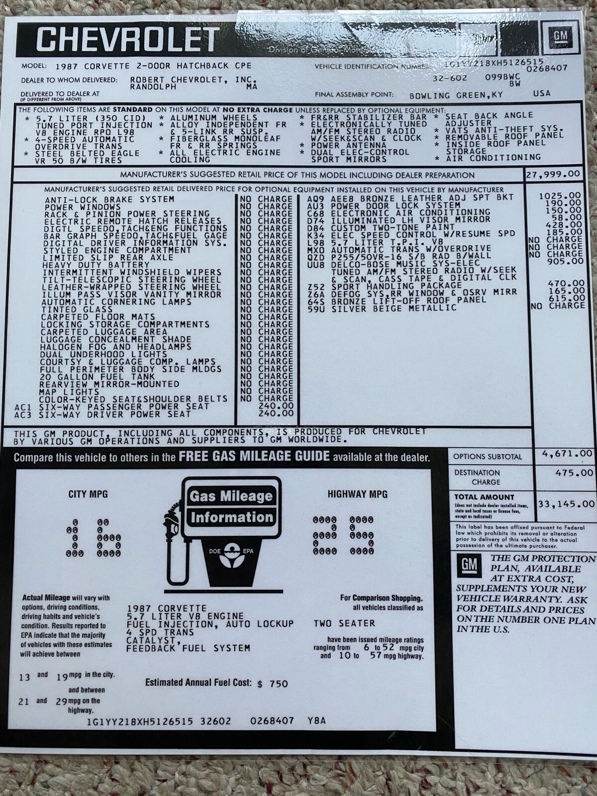 1987 Corvette Z52. Lots of new parts, fuel sending unit, tires have about 1,000 miles on them, new brakes, battery, weatherstripping, and more. All receipts of work done/parts purchased since I’ve had the car. I also have correct ACDelco plugs for aluminum heads of 1987, as well as plug wires. Typical paint flaws and wear and tear for an almost 40 year old car, overall car runs and drives great. Would need AC recharged or converted, as well as intermittent check engine light, runs great though, I checked and no codes are stored, classic early check engine light. Asking 7,000, make a reasonable offer and it will be considered. Trades considered are 70-90’s GM products or a Porsche 944. No test drives unless cash in hand. Clean title in hand