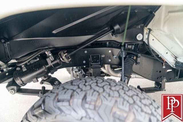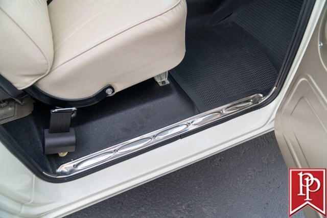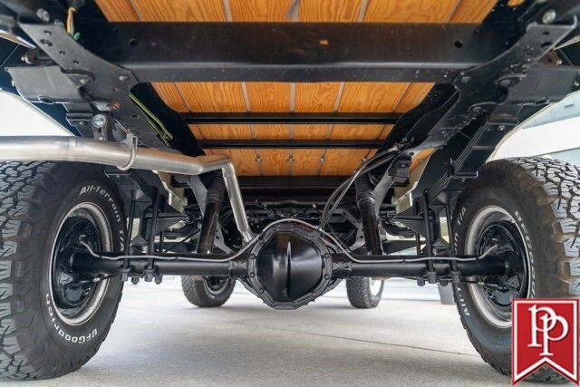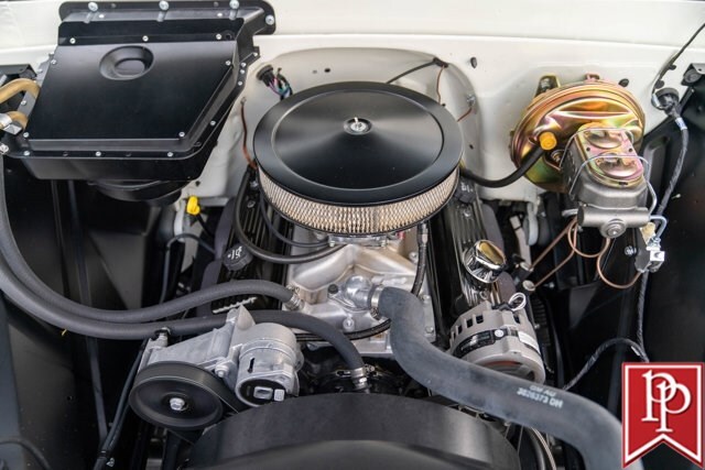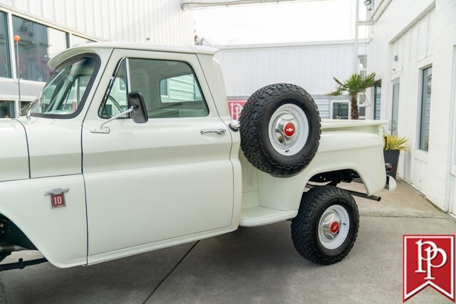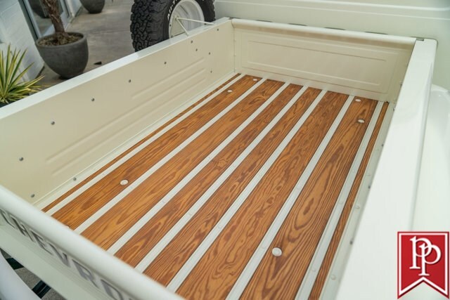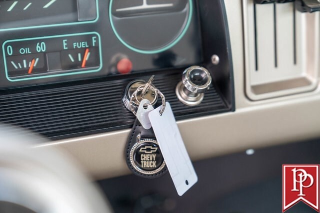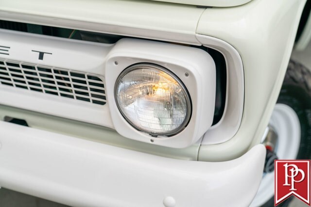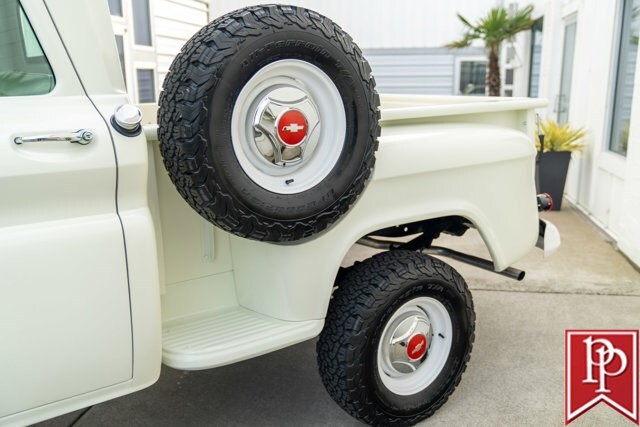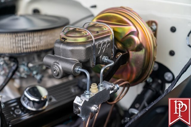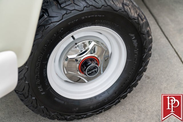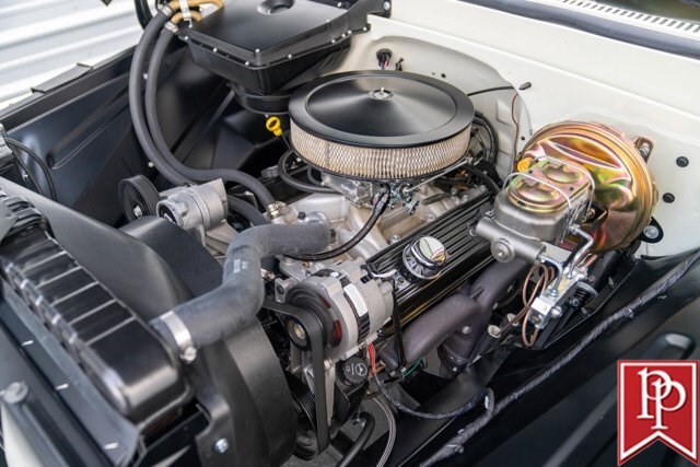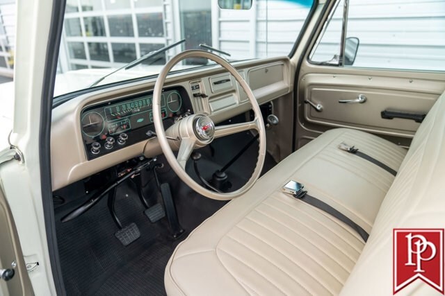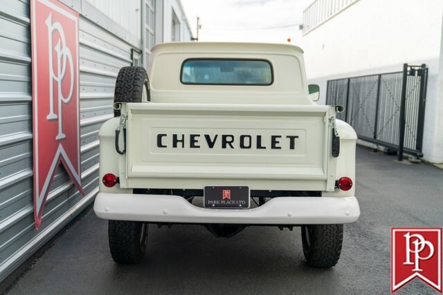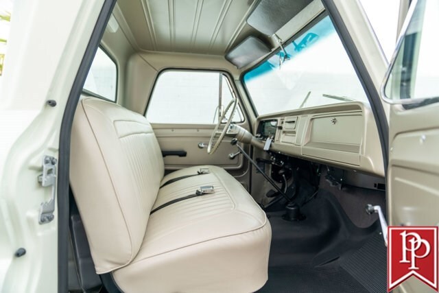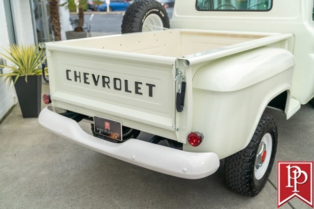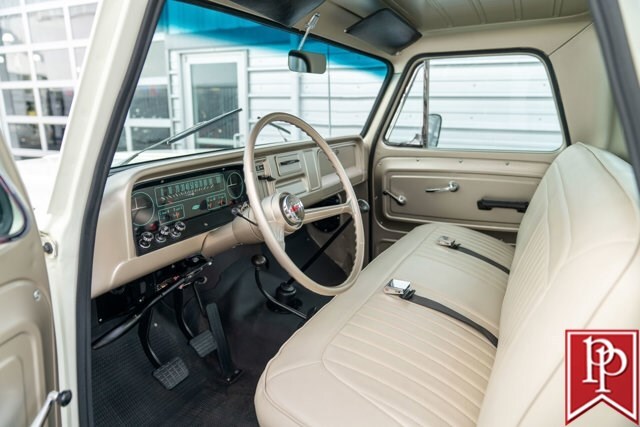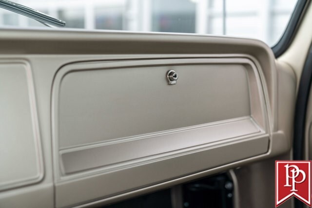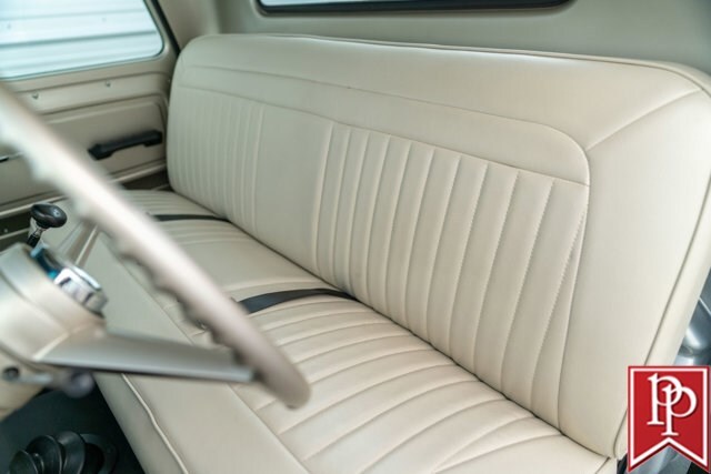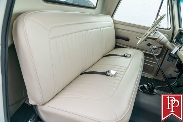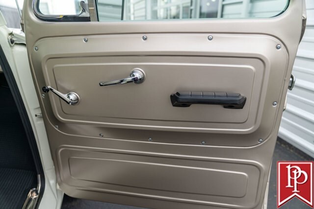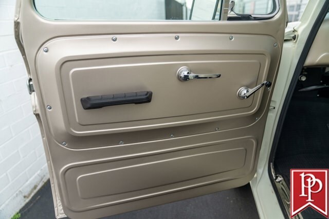 Finished in off white with white painted bumpers, grille and trim, this truck was restored to what a real work truck in the period would look like- save for the modern tires. Restored by Metal Works Speed Shop in Eugene, OR in 2019, this truck has been completed to an exceptionally high standard and even the updated running gear looks like it could have been there from new. The restoration is extensively documented on the shop’s website and shows that when they first received this project, the truck was largely complete and in solid shape, but had seen far better days. The entire truck was taken apart, while the shop separated the body and chassis to do some minor rust repair and frame reinforcements. The cab was acid dipped and the bed was largely rebuilt with new Oak wood floors- although the driver’s side rear flare-side fender retains the signature spare tire holder. The team at Metal Works Speed Shop then spent considerable time blocking and sanding the truck prior to laying down the creamy white paint, to ensure a glasslike smooth finish on every panel. The interior was coated in Raptor texture black undercoating to keep the rust away while offering a clean look if anyone slides under the vehicle to take a look.