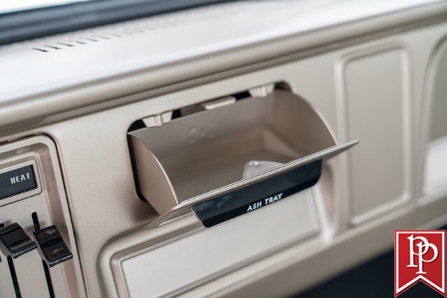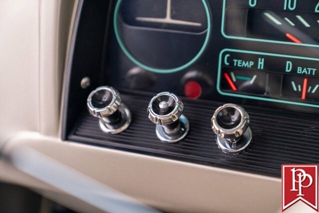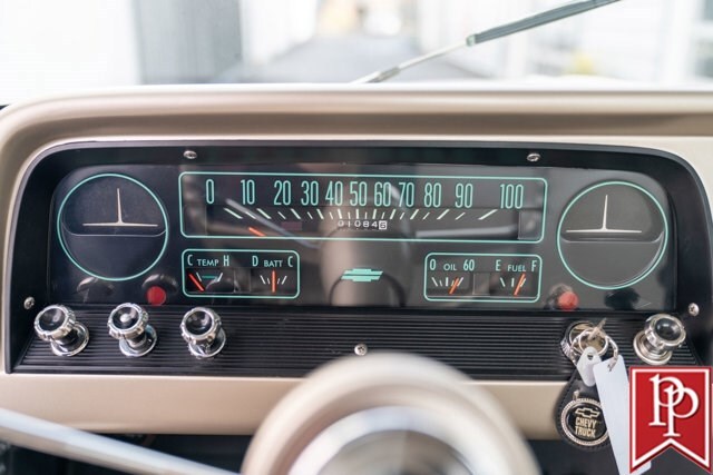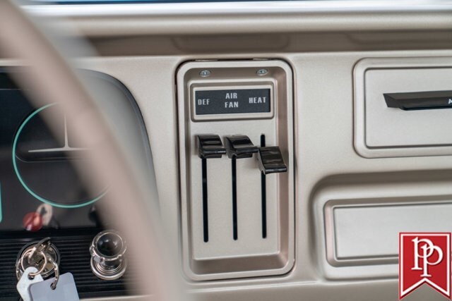 The interior is extremely simple in this truck, consisting of a single bench seat, a body color dashboard and partially-upholstered door cards. That being said, when it landed at Metal Works, the interior needed a serious overhaul- the bench seat had holes in the vinyl and the foam beneath was perished beyond use. So, as they did with the exterior of the truck, the seat came out and was taken down to its bare frame, straightened and repainted, while the hardware and sliders were all taken apart and professionally coated to ensure longevity. The seat was then wrapped in cream colored vinyl, with the correct pattern in the center prior to being returned to the interior. This truck was fitted from the factory with an auxiliary gauge pod, and a heater with defroster was refurbished to ensure proper functioning. Also, all new weather stripping was installed in the door frames, and the window surrounds were replaced with fresh rubber to make sure this truck keeps the heat in on cold mornings, and the moisture out if you end up in the rain.