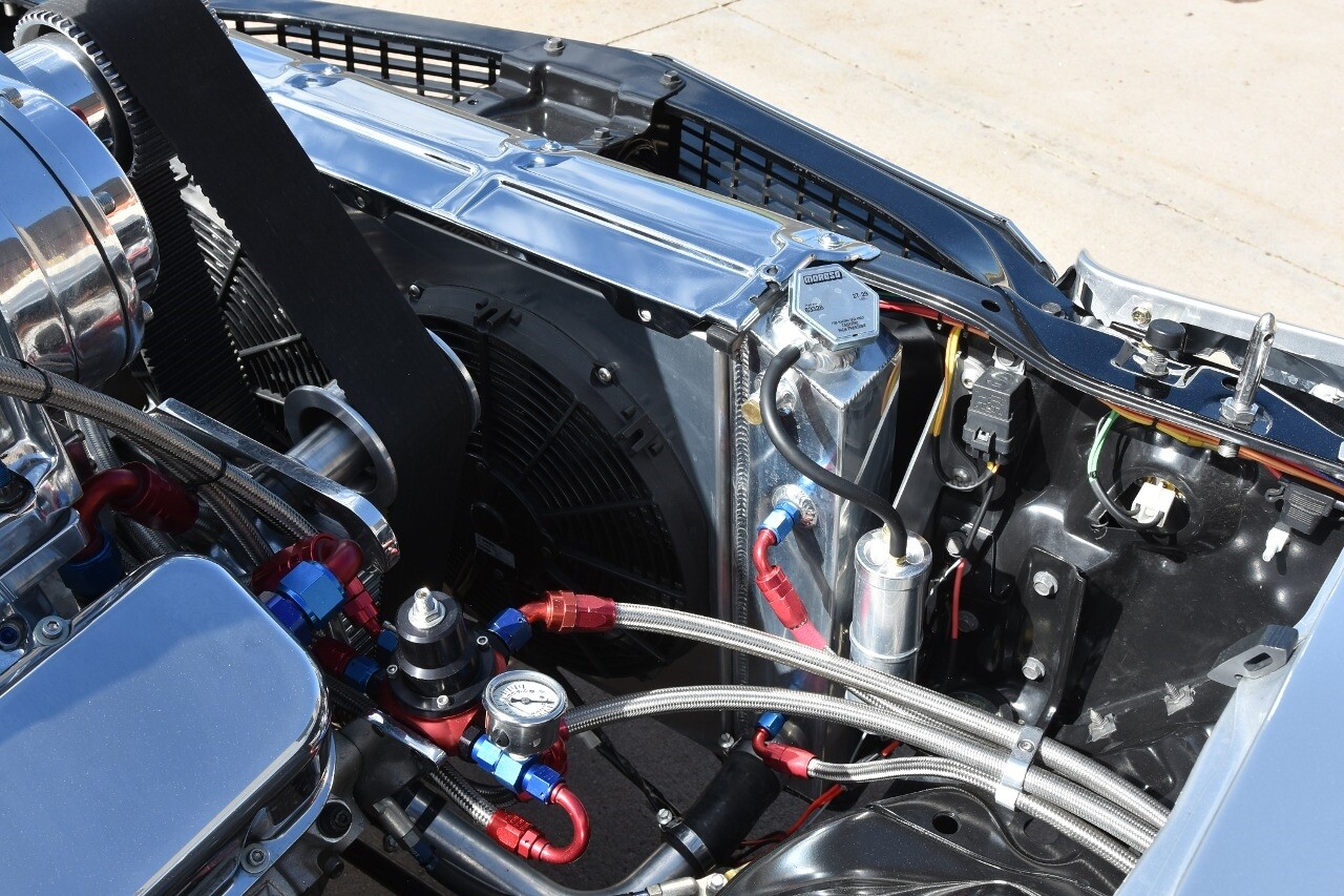 #### Key Features: - **Exterior Color:** Toyota Pure Silver with SS Stripes - **Interior:** Original Style Chevelle SS Black Vinyl with Bucket Seats - **Engine:** 468 Big Block V8 with 10-71 Supercharger - **Transmission:** 4L80 Manual Valve Body Automatic with Kilduff Lightning Rod Shifter - **Wheels:** Weld Wheels Alumastar with Mickey Thompson Performance Tires - **Brakes:** Wilwood Heavy Duty Disc Brakes Front and Rear with Wilwood Master Cylinder - **Suspension:** QAI Double Adjustable Coil Overs Front and Rear, Tubular A-Arms, Southside Machine Spindles/Rear Suspension - **Additional Features:** Champion Aluminum Radiator Module with Electric Fans, Aeromotive Chevelle Specific Gas Tank with Submerged Electric Pump, Aeroquip Braided Lines Throughout, Autometer Auxiliary Gauges