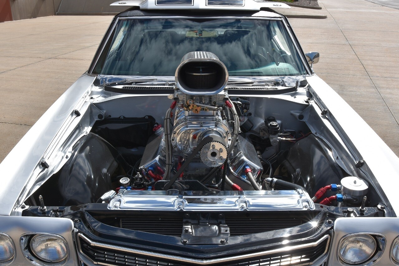 #### Performance: Under the hood, this Chevelle SS boasts a 468 cubic inch Big Block Chevy engine, featuring: - **4 Bolt Block** - **ARP Head Studs/Main Studs** - **Eagle Crank and Rods** - **Ross 7.6 to 1 Pistons** - **Brodix BB2 Xtra Aluminum Heads** - **Comp Cams Hydraulic Roller Cam/Lifters/Stud Girdles** - **BDS 10-71 Blower with Holley 950 Blower Carbs and BDS Scoop** - **Miersch Blower Manifold** - **MSD 6 BTM Ignition** - **Flowmaster Headers with 3" Exhaust**