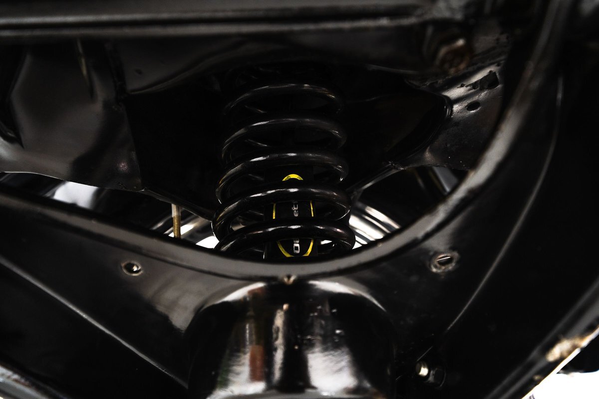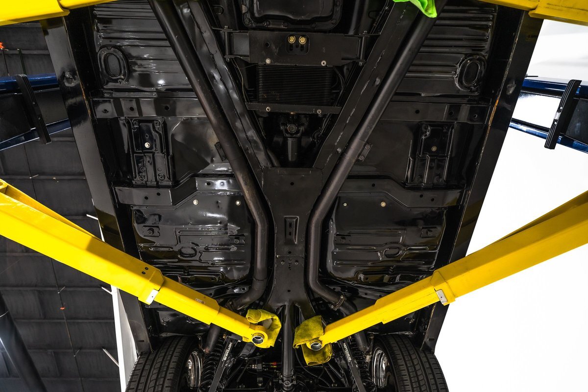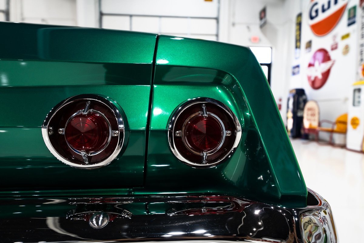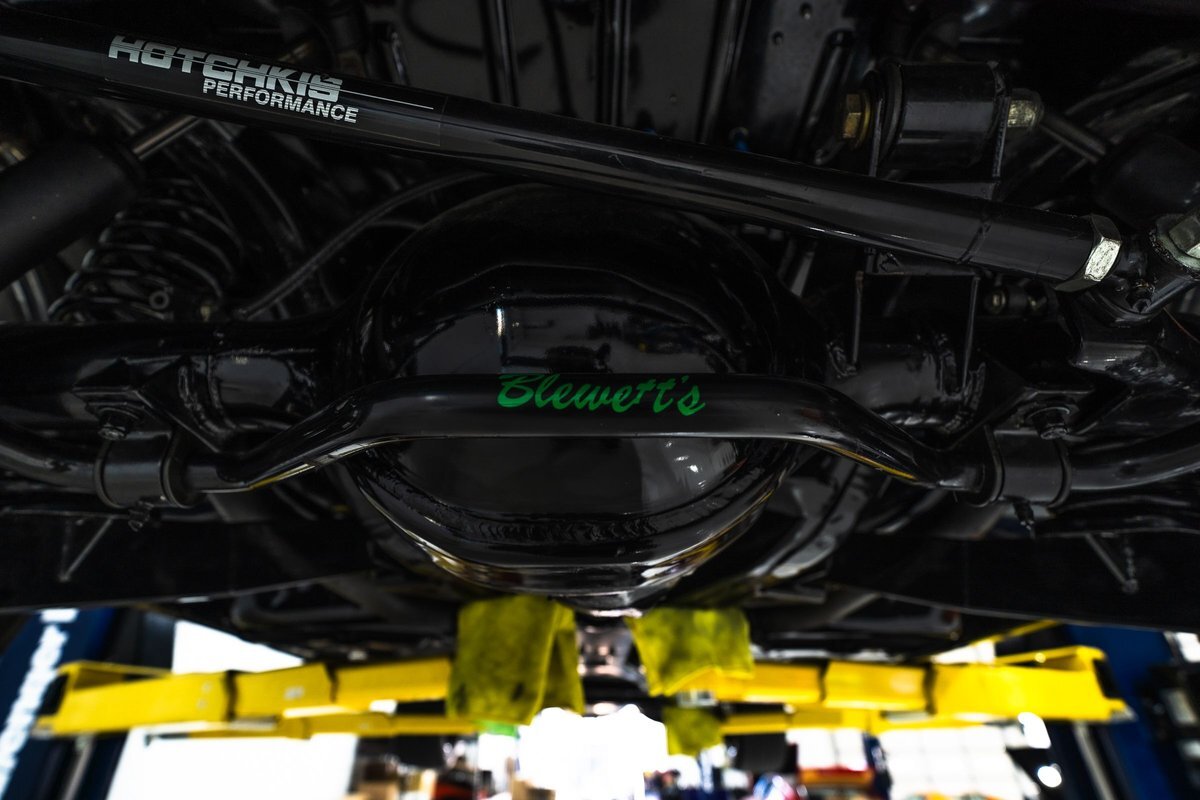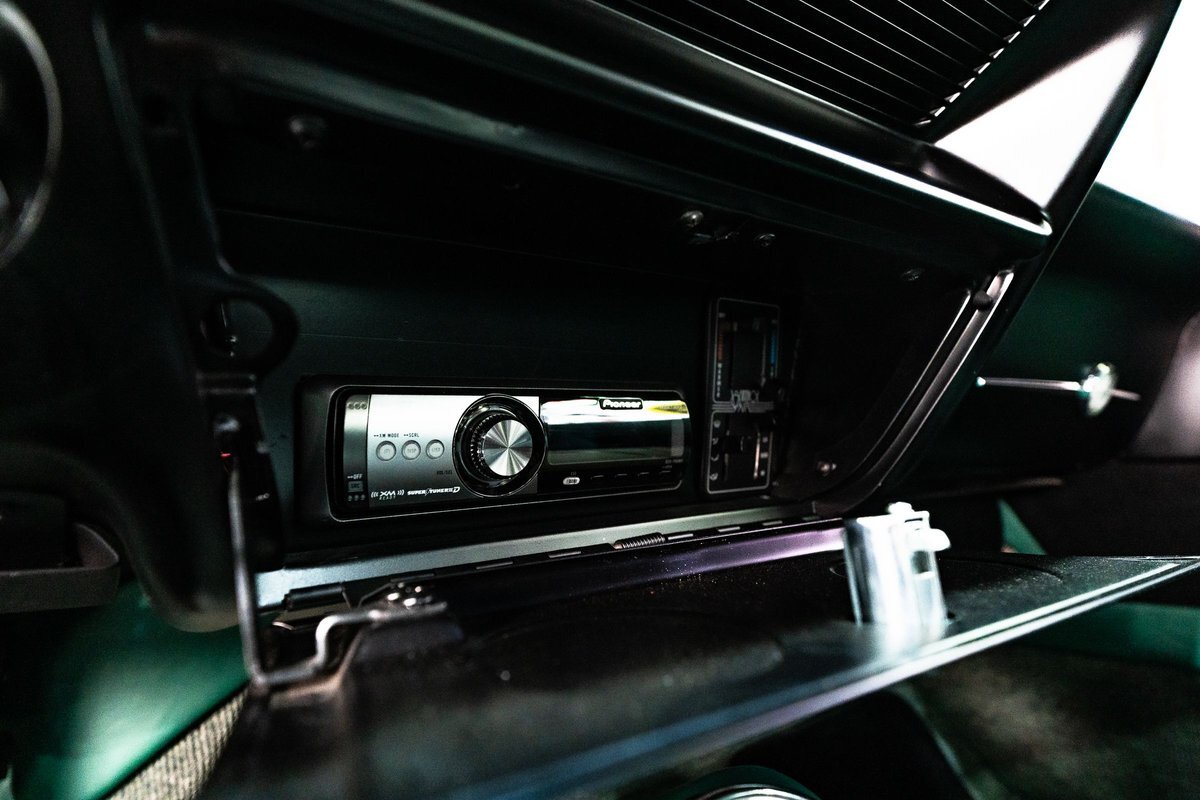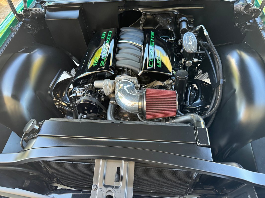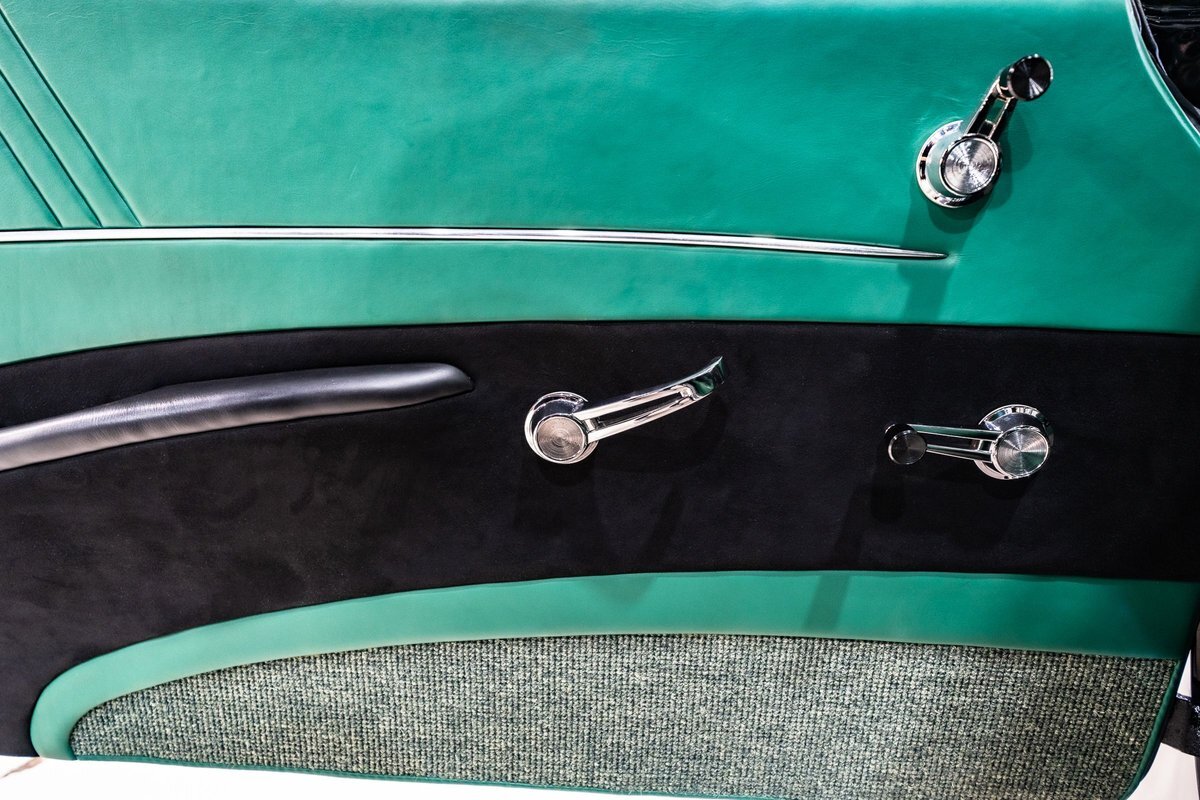 that you need a sweet interior. The stock dash was smoothed off completely before a sweet custom green-on-black gauge set was made for the ride. The Pioneer tunes and Vintage Air controls were slipped into the driver's glovebox. The interior was then delivered to the legendary hands of Paul Atkins' in Alabama, Paul made the center console and then covered everything in black suede and green leather that wasn't covered with wool carpet. Painless Wiring was used to get everything powered up and on the road.