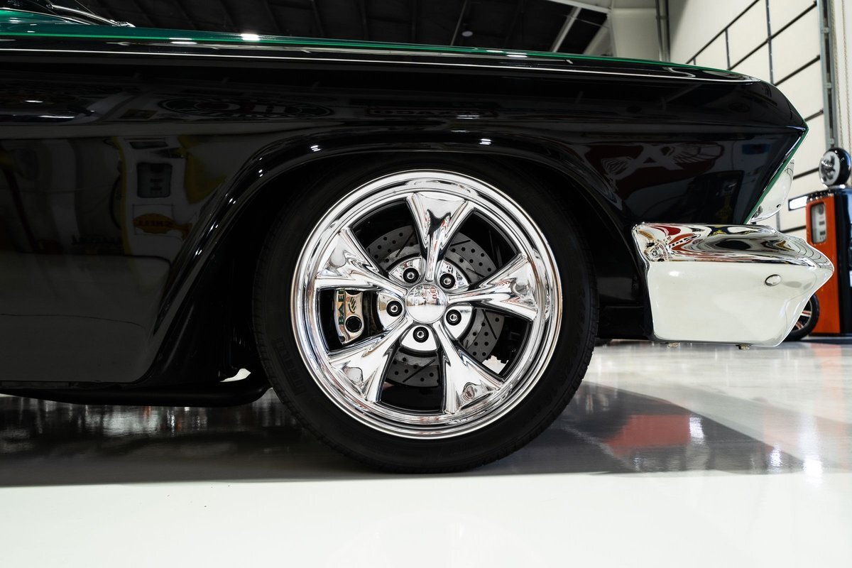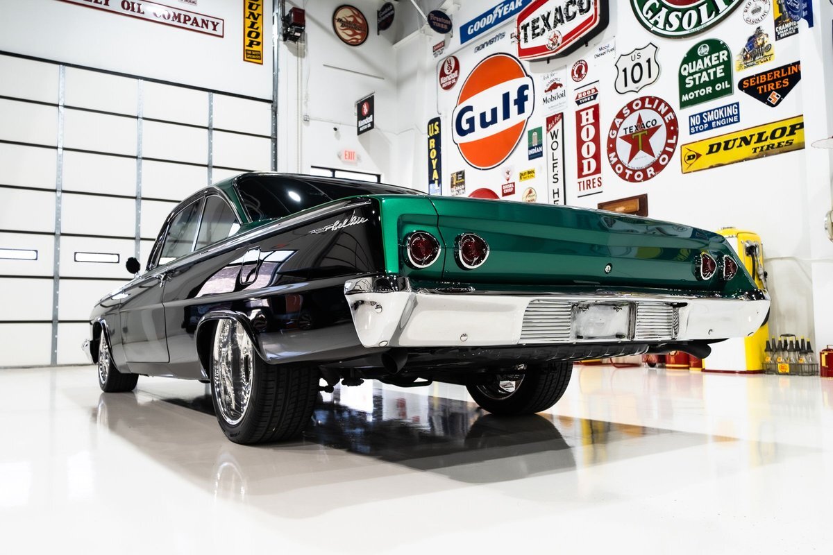 The advantage to a '62 bubble top is the car has already been somewhat molded, shaved and dechromed from the factory. The crew at Blewett's removed the trim from the rear taillight valance, the hood emblem was shaved, the front fender emblems were removed, and the front and the rear bumpers were lightly smoothed out. Blewett's then custom mixed the DuPont Hot Hues emerarld and black paint and laid down the simple two-tone hues. Billet specialties wearing 18 and 20-inch Kumho rubber provided the final link between the road and the driver