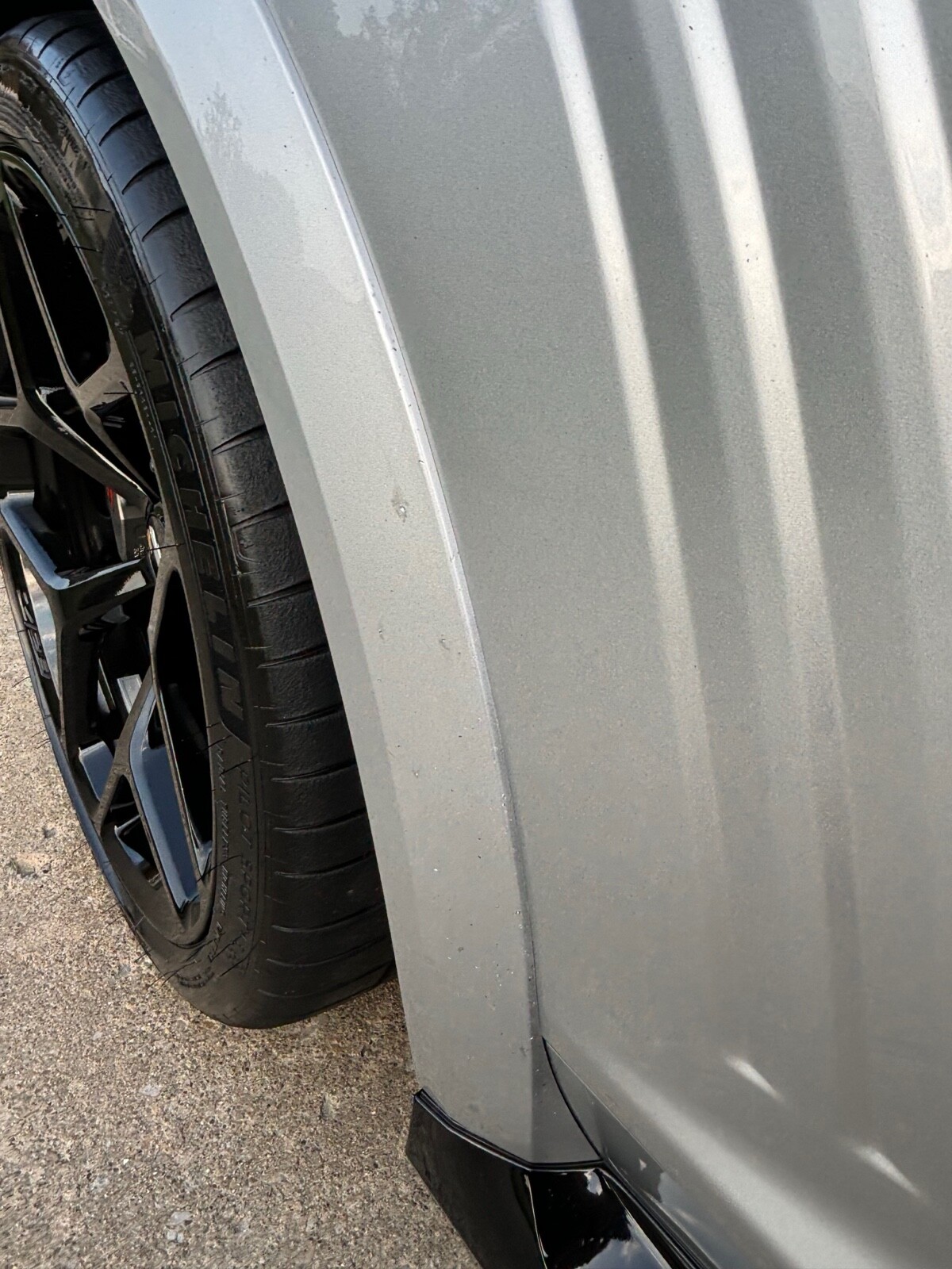 There’s no dents dings or scratches on the car. The front end does have some rock chips on it and the lower front spoiler has some along it which is typical on the spoilers on these cars the fender flares also has some chips on them which is also typical on these cars with the very wide tires. I took pics of all the chipped areas to see. Adding 2 videos of the car
