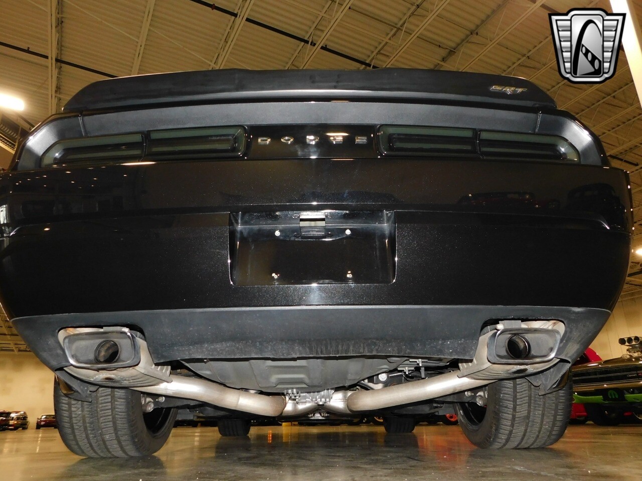 Introducing the 2010 Dodge Challenger SRT-8, an embodiment of power, performance, and style. With its sleek black exterior and refined black interior, this vehicle exudes an air of sophistication and strength.