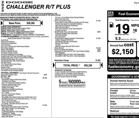 Power Door Locks, Air Conditioning, Dual Air Bags, HID Headlamps, Power Steering, Heated Seats, Ventilated Seats, Cruise Control, Side Air Bags, Daytime Running Lights, Power Seat, AM/FM Stereo, Park Assist, RWD, Alarm System, F&R Head Curtain Air Bags, Rear Spoiler, Tilt & Telescoping Wheel, Hill Start Assist Control, Power Trunk Release, Power Sun Roof, Traction Control, Alpine Audio Group, Blacktop Pkg, Blind-Spot Alert, Driver Convenience Group, Plus Pkg, Keyless Entry, SiriusXM Satellite, Electronic Stability Control, Fog Lights, Backup Camera, Premium Wheels 19'+, Power Windows, Automatic, 8-Spd, Navigation System, Push Button Start, Leather, ABS (4-Wheel), V8, HEMI, MDS, 5.7 Liter, Bluetooth Wireless, Uconnect