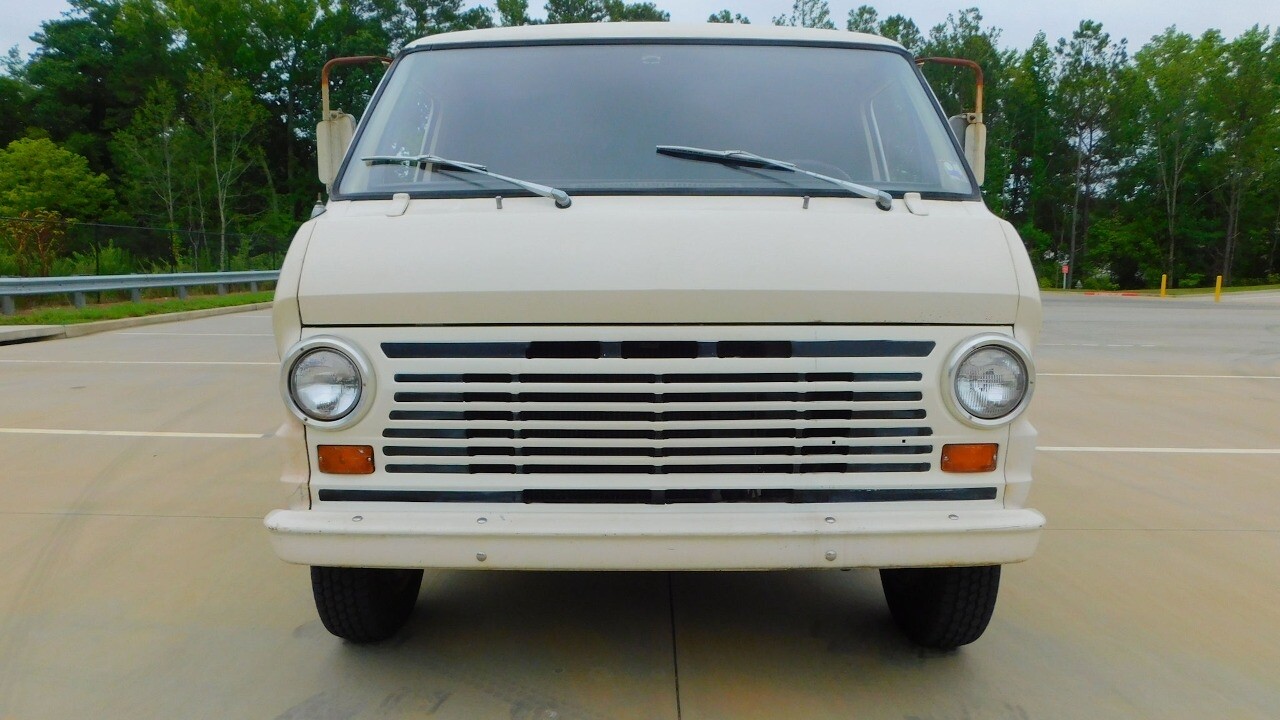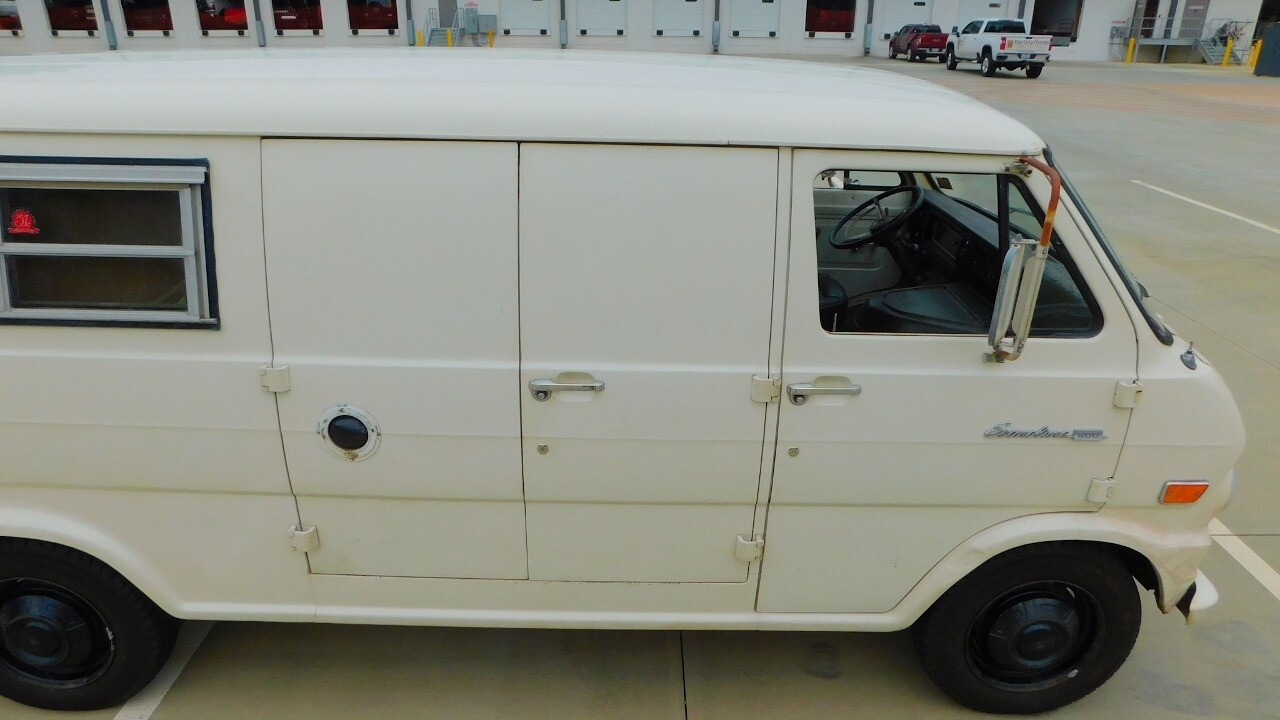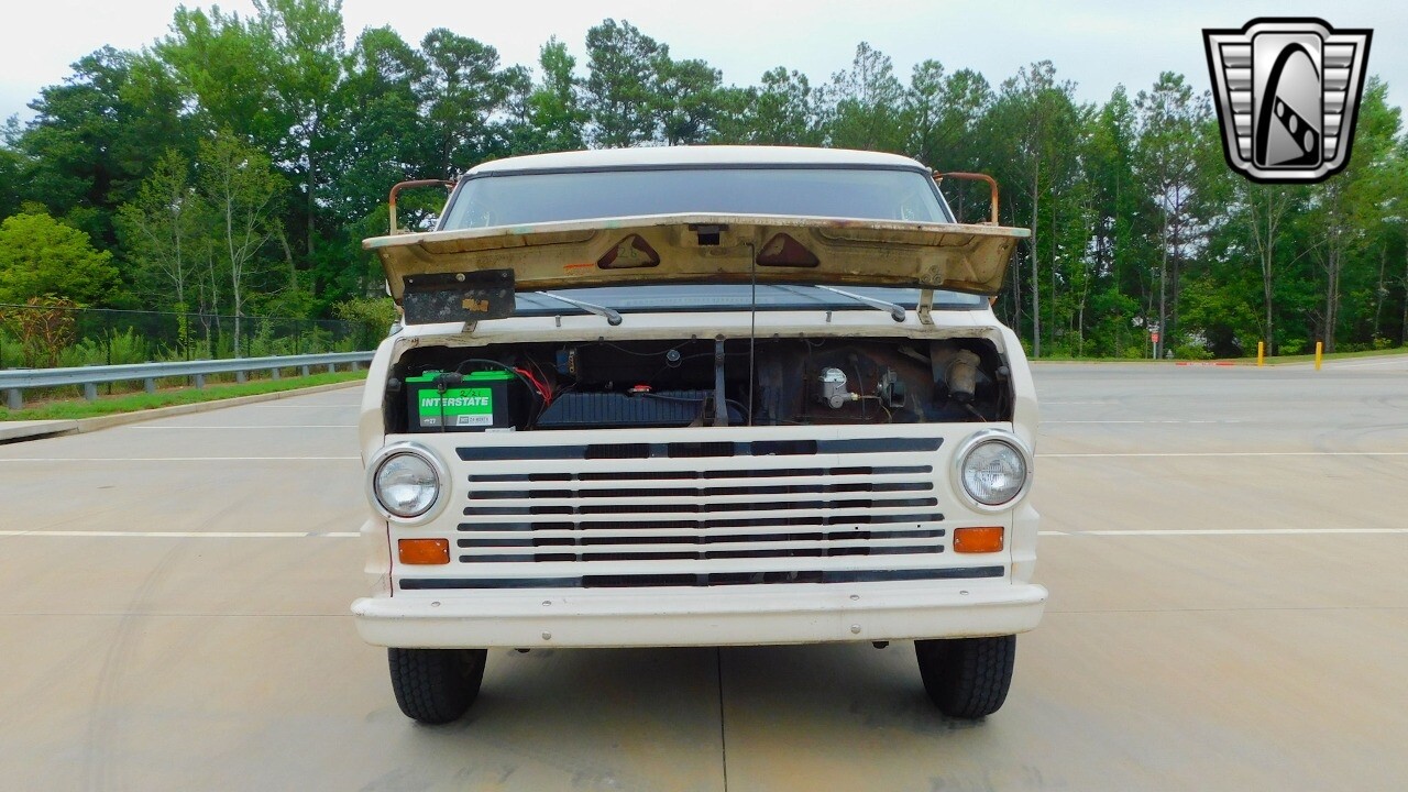 This Econoline is powered by a 302 CI V8 engine paired with a traditional 3-speed manual transmission. This vehicle delivers a driving experience that is both engaging and reminiscent of a cherished era in motoring. Inside, the amenities are practical. An AM/FM radio serves as your gateway to entertainment, keeping you connected to your favorite tunes and news wherever your travels take you. The Econoline rides on radial tires, showcasing hub caps that add a touch of classic style to its overall appearance.