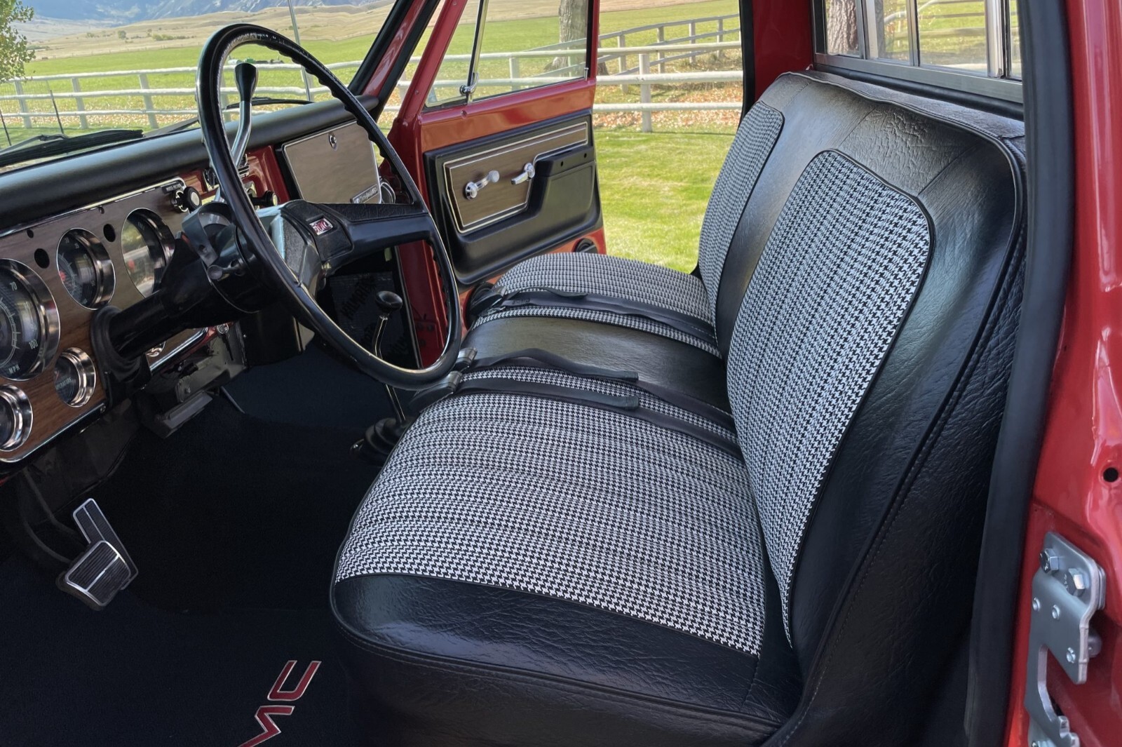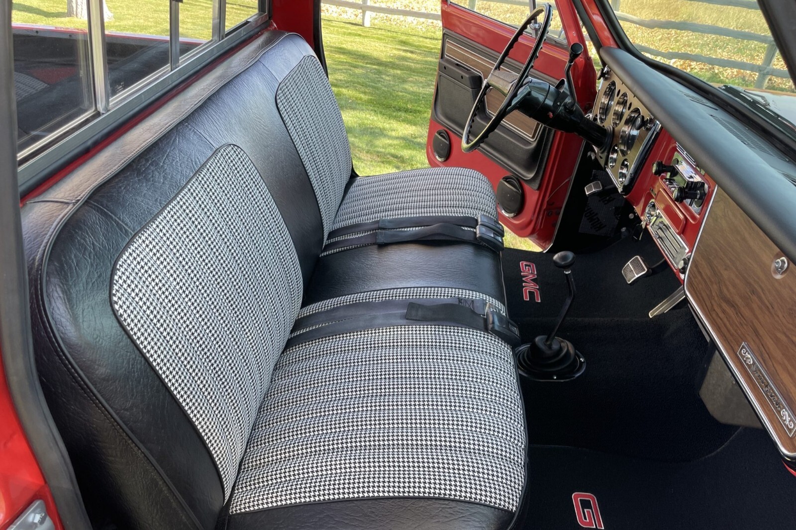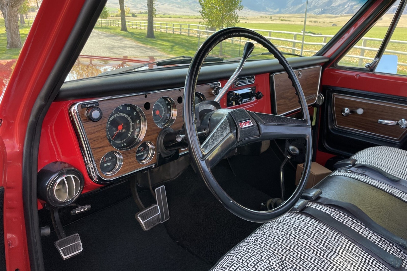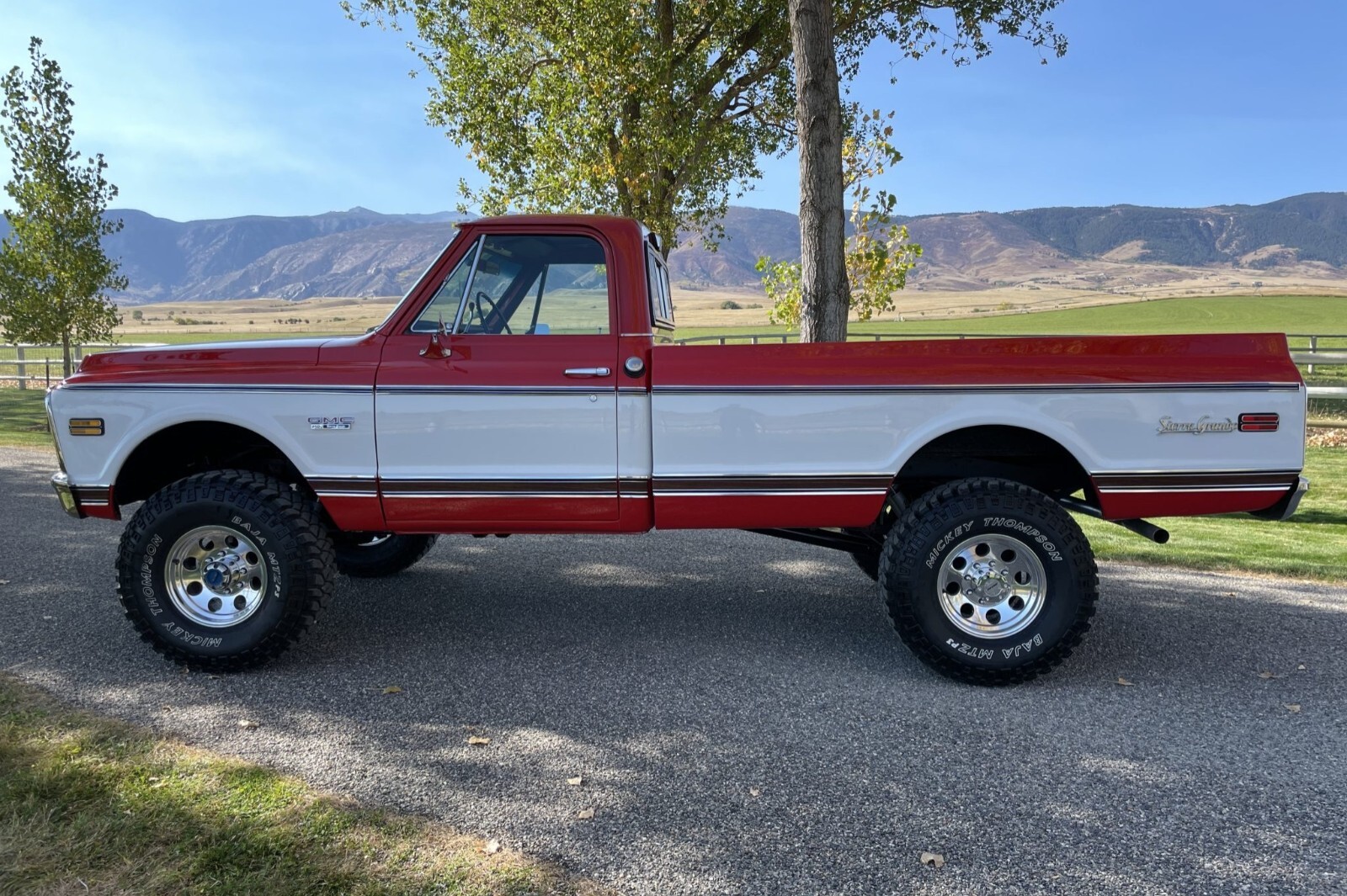 GMC K2500 Sierra Grande is powered by a replacement 350ci V8 mated to a three-speed automatic transmission and dual-range transfer case available for auction. The truck is equipped with manually-locking front hubs, a 4" Rough Country suspension lift, new front and rear bumpers, and updated weatherstripping. The refreshed interior includes wood grain trim, a factory-style stereo with Bluetooth connectivity, Pioneer door speakers, and a new tachometer. Give me a call for any questions 61two75six98thre0.
