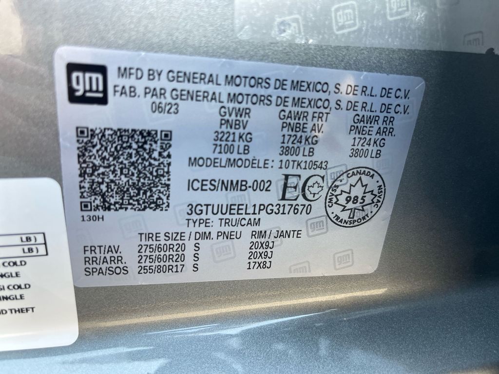 THIS VEHICLE INCLUDES THE FOLLOWING FEATURES AND OPTIONS: Trailering Package (Hitch Guidance), Sierra 1500 AT4 4WD, 10-Way Power Driver Seat Adjuster w/Lumbar, 10-Way Power Passenger Seat Adjuster w/Lumbar, 120-Volt Bed Mounted Power Outlet, 120-Volt Instrument Panel Power Outlet, 18 x 8.5 Machined Aluminum Wheels, 2 Charge/Data USB Ports Inside Center Console, 2 Type-C Charge-Only Rear USB Ports, 2 USB Ports, 220 Amp Alternator, 3.23 Rear Axle Ratio, 4-Wheel Disc Brakes, 7 Speakers, ABS brakes, Air Conditioning, Alloy wheels, AM/FM radio, Apple CarPlay/Android Auto, Auto High-beam Headlights, Auto-dimming door mirrors, Auto-dimming Rear-View mirror, Auto-Locking Rear Differential, Automatic Emergency Braking, Automatic temperature control, Black Chrome Header & Grille Insert Bars, Block heater, Brake assist, Buckle to Drive, Bumpers: body-color, Color-Keyed Carpeting Floor Covering, Compass, Cruise Control, Deep-Tinted Glass, Delay-off headlights, Driver door bin, Driver Memory, Driver vanity mirror, Dual front impact airbags, Dual front side impact airbags, Electric Rear-Window Defogger, Electrical Steering Column Lock, Electronic Stability Control, Emergency communication system: OnStar and GMC connected services capable, Engine Block Heater, Floor-Mounted Center Console, Following Distance Indicator, Forward Collision Alert, Front anti-roll bar, Front Bucket Seats, Front Center Armrest, Front dual zone A/C, Front fog lights, Front Pedestrian Braking, Front Prem Floor Liners w/Removable Carpet Insert, Front Rainsensing Wipers, Front reading lights, Front wheel independent suspension, Fully automatic headlights, GMC Connected Access Capable, HD Surround Vision, Heated 2nd Row Outboard Seats, Heated door mirrors, Heated Driver & Front Outboard Passenger Seating, Heated front seats, Heated rear seats, Heated steering wheel, Heavy-Duty Air Filter, Hill Descent Control, Hitch Guidance w/Hitch View, Illuminated entry, In-Vehicle Trailering App, Integrated Trailer Brake Controller, IntelliBeam Automatic High Beam On/Off, Keyless Open & Start, Lane Keep Assist w/Lane Departure Warning, LED Cargo Area Lighting, Low tire pressure warning, Memory seat, Navigation System, Occupant sensing airbag, Off-Road Suspension, OnStar & GMC Connected Services Capable, Outside temperature display, Overhead airbag, Overhead console, Panic alarm, Passenger door bin, Passenger vanity mirror, Perforated Front Leather Seat Trim, Perimeter Lighting, Power Door Locks, Power door mirrors, Power driver seat, Power Front Passenger Windows w/Express Up/Down, Power Front Windows w/Driver Express Up/Down, Power passenger seat, Power Rake & Telescoping Steering Column, Power Rear Windows w/Express Down, Power steering, Power windows, Premium audio system: GMC Infotainment System, Premium Bose 7-Speaker Sound System, Push Button Start, Radio data system, Radio: Premium GMC Infotainment Audio System, Rain sensing wipers, Rear Cross Traffic Braking, Rear Pedestrian Detection, Rear Prem Floor Liners w/Removable Carpet Insert, Rear reading lights, Rear seat center armrest, Rear step bumper, Rear Wheelhouse Liners, Rear window defroster, Red Recovery Hooks, Remote keyless entry, Remote Vehicle Starter System, Safety Alert Seat, Security system, SiriusXM w/360L, Speed-sensing steering, Split folding rear seat, Spray-On Pickup Bed Liner w/AT4 Logo, Steering Wheel Audio Controls, Steering wheel mounted audio controls, Tachometer, Telescoping steering wheel, Theft Deterrent System (Unauthorized Entry), Tilt steering wheel, Traction control, Trailer Camera Provisions, Trailer Side Blind Zone Alert, Trip computer, Ultrasonic Front & Rear Park Assist, Variably intermittent wipers, Ventilated Driver & Front Passenger Seats, Ventilated front seats, Voltmeter, Wi-Fi Hotspot Capable, Wireless Charging, and Wireless Phone Projection.