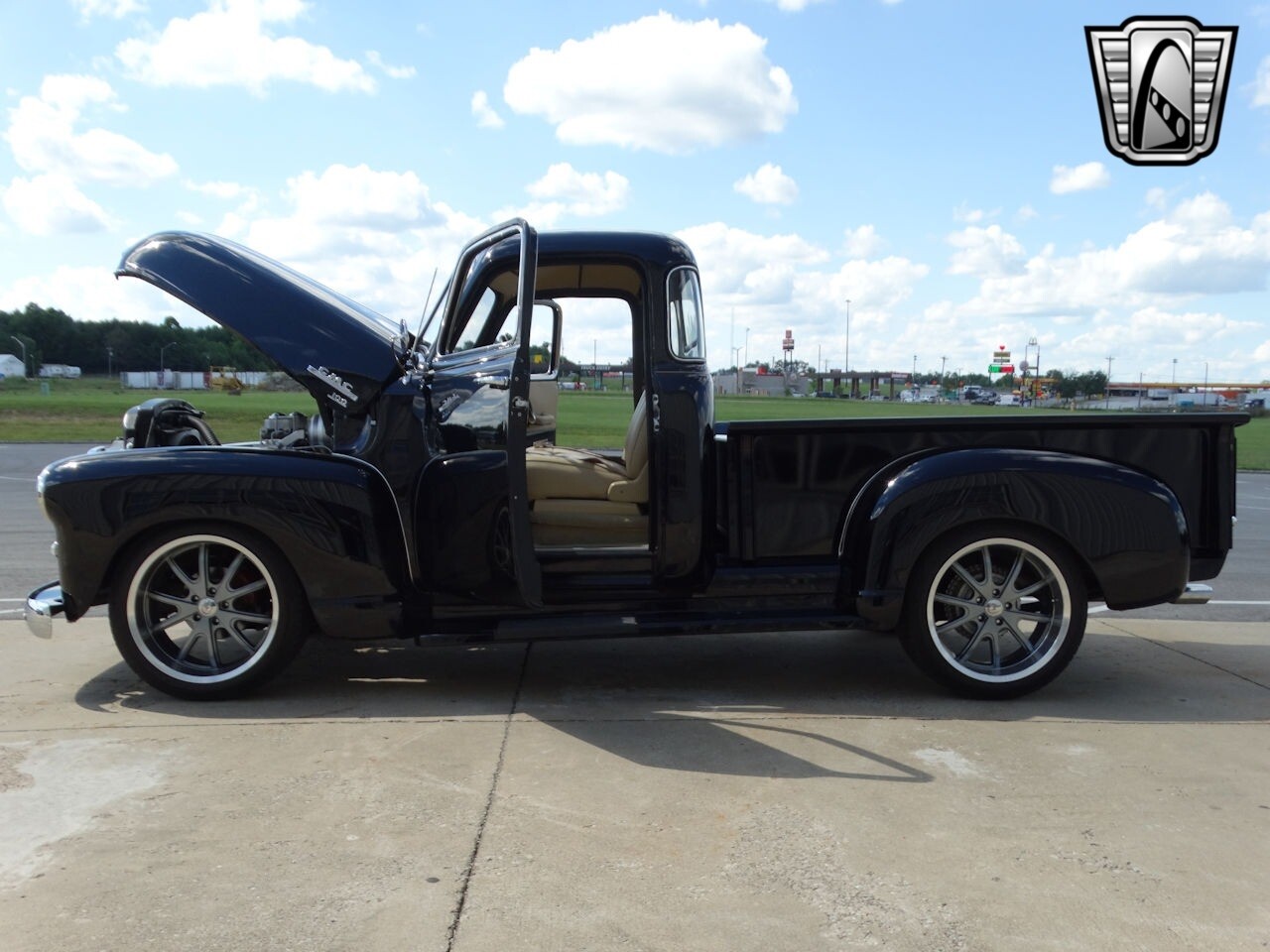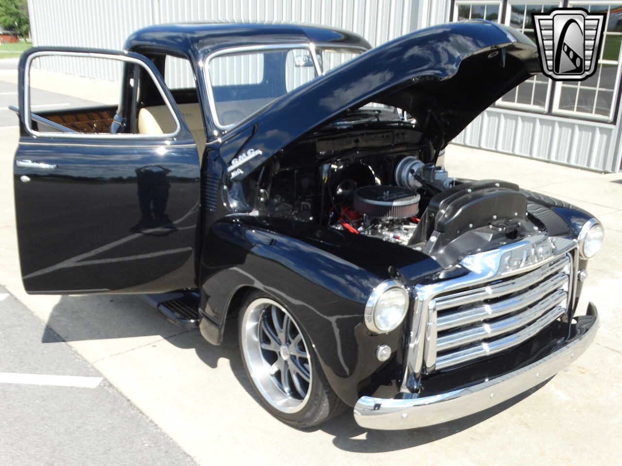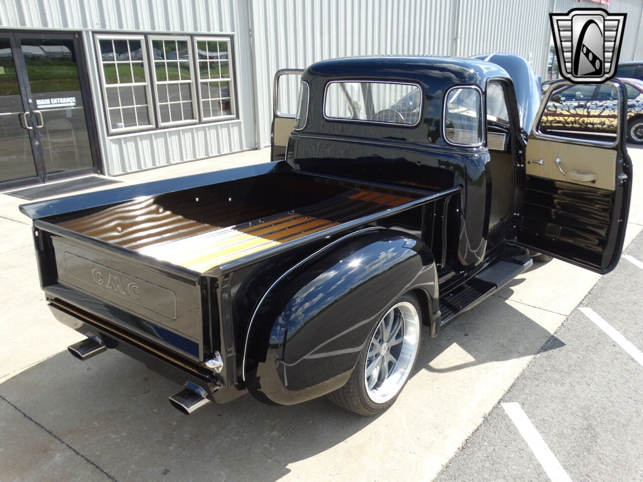 Step back in time with this classic 1950 GMC 100 Stepside, a stunning example of vintage automotive craftsmanship. This iconic truck boasts a sleek black exterior that exudes timeless elegance and sophistication. Complementing the striking exterior is a beautifully maintained tan interior, offering a warm and inviting cabin space that balances style and comfort. This special Gmc has the hard to find five windows.