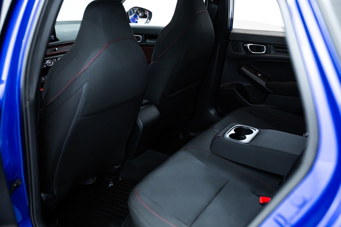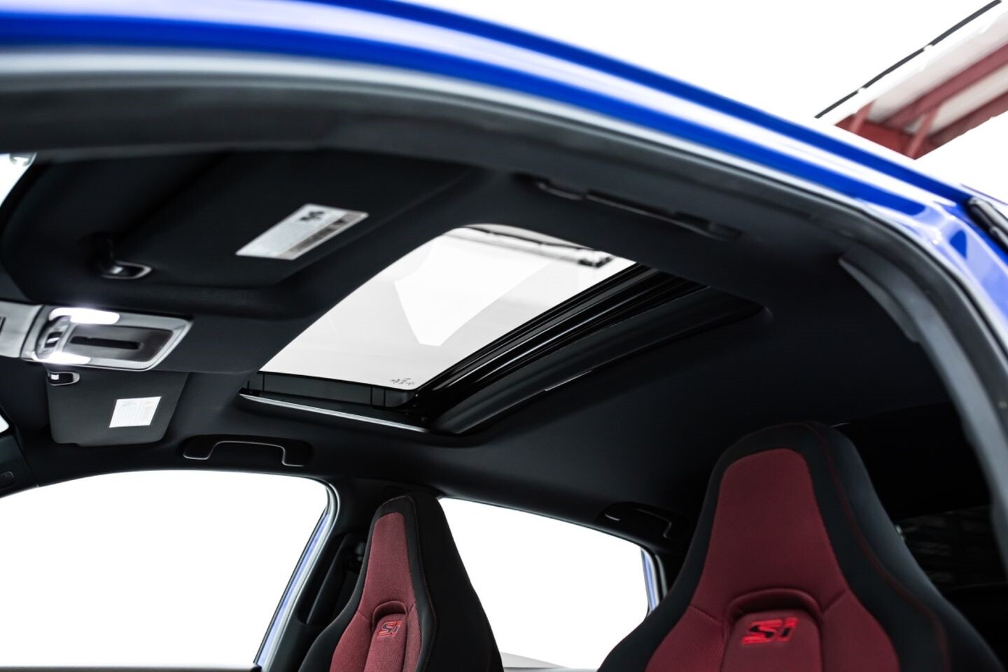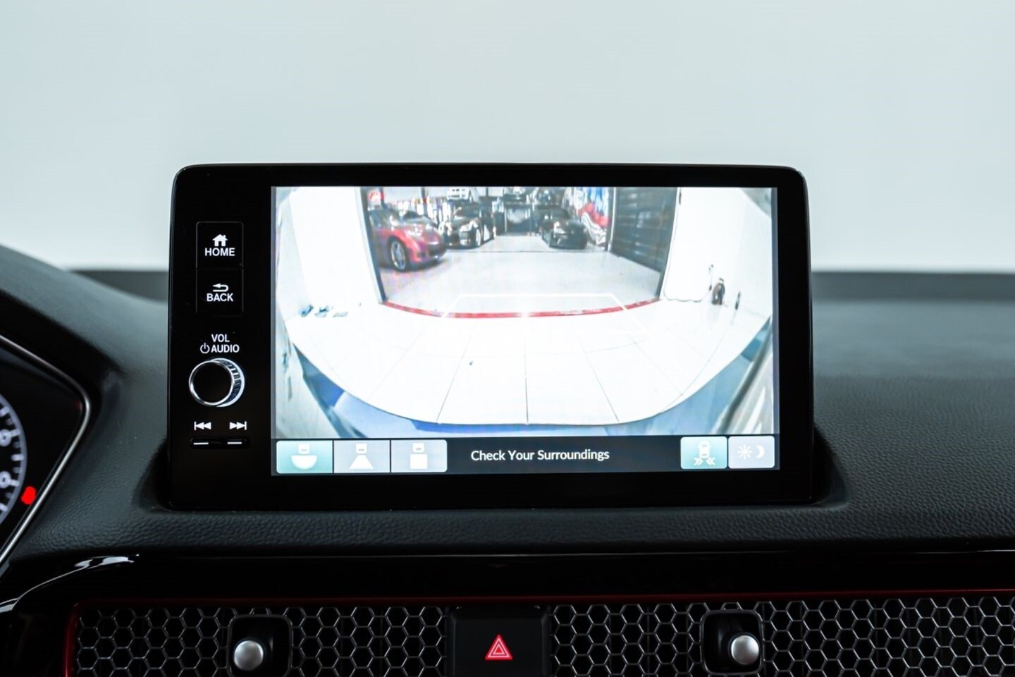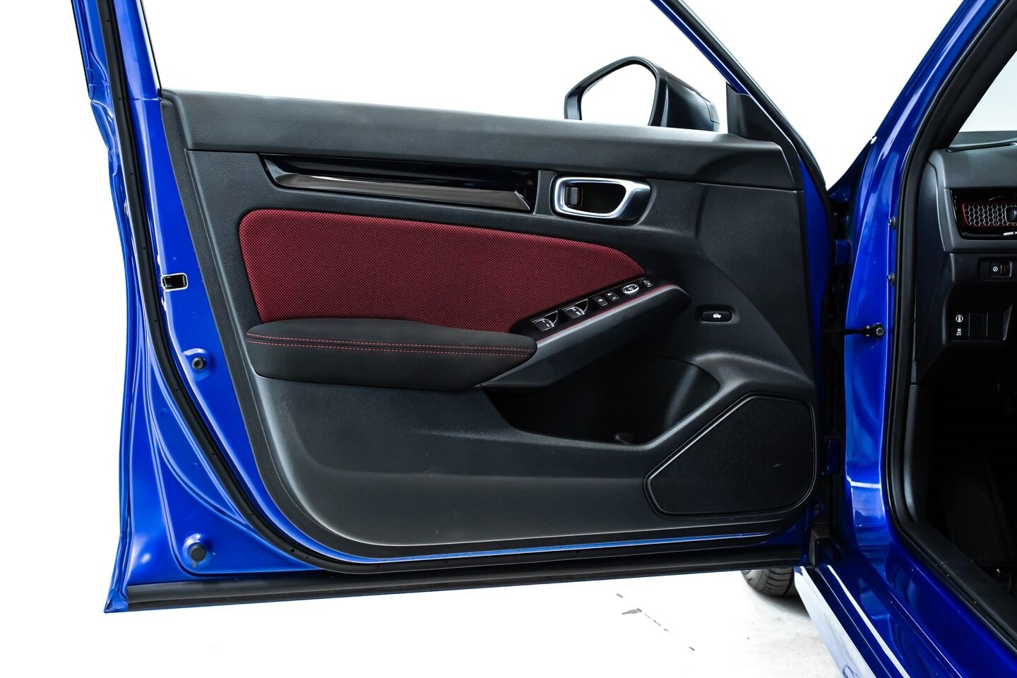 This 2022 Honda Civic Si is a heavily modified sedan that is ready to be driven at the limit. Under the hood is a turbocharged 1.5-liter inline four-cylinder engine that produces 200 horsepower and 192 lb-ft of torque, all of which is sent through a six-speed manual transmission to the front wheels. The engine is not stock, however, having received an RV6 R365 Red Ball Bearing turbocharger upgrade, a PRL Motorsports front-mount intercooler, a PRL Motorsports coolant expansion tank, a PRL/PTP turbocharger blanket, an aftermarket downpipe, a PRL Motorsports cold-side charge pipe, and performance tuning, among other modifications. This sleek vehicle comes equipped with 17" Rota wheels and is finished in Aegean Blue Metallic, a breathtaking color that perfectly suits the car's lines. The exterior of this Honda has been made even more unique with the addition of some cosmetic modifications, which include an aftermarket ducktail spoiler, smoked LED aftermarket taillights, smoked rear reflectors, and aftermarket front lip. In the interior, this Civic Si offers cloth "Si" bucket seats, a flat-bottomed carbon fiber and leather steering wheel, selectable drive modes, push-to-start, an "Si" ball shift knob, a semi-digital gauge cluster, and an infotainment system with Bluetooth, apps, phone connectivity, AUX, Apple CarPlay, Android Auto, and a backup camera, truly making this car the complete package.