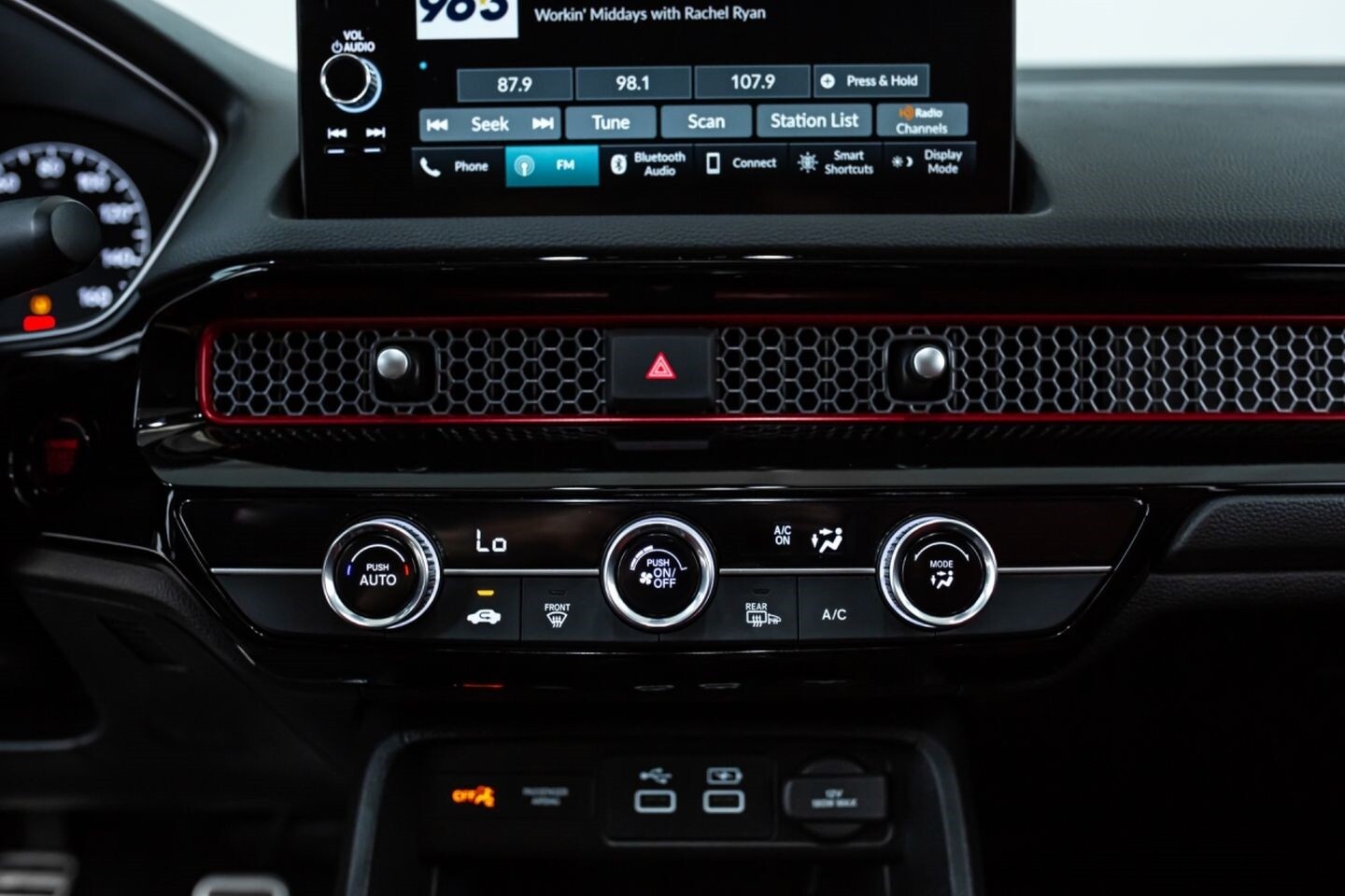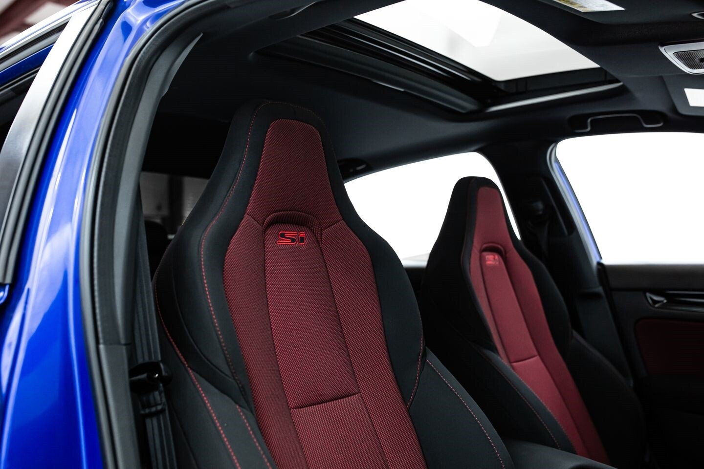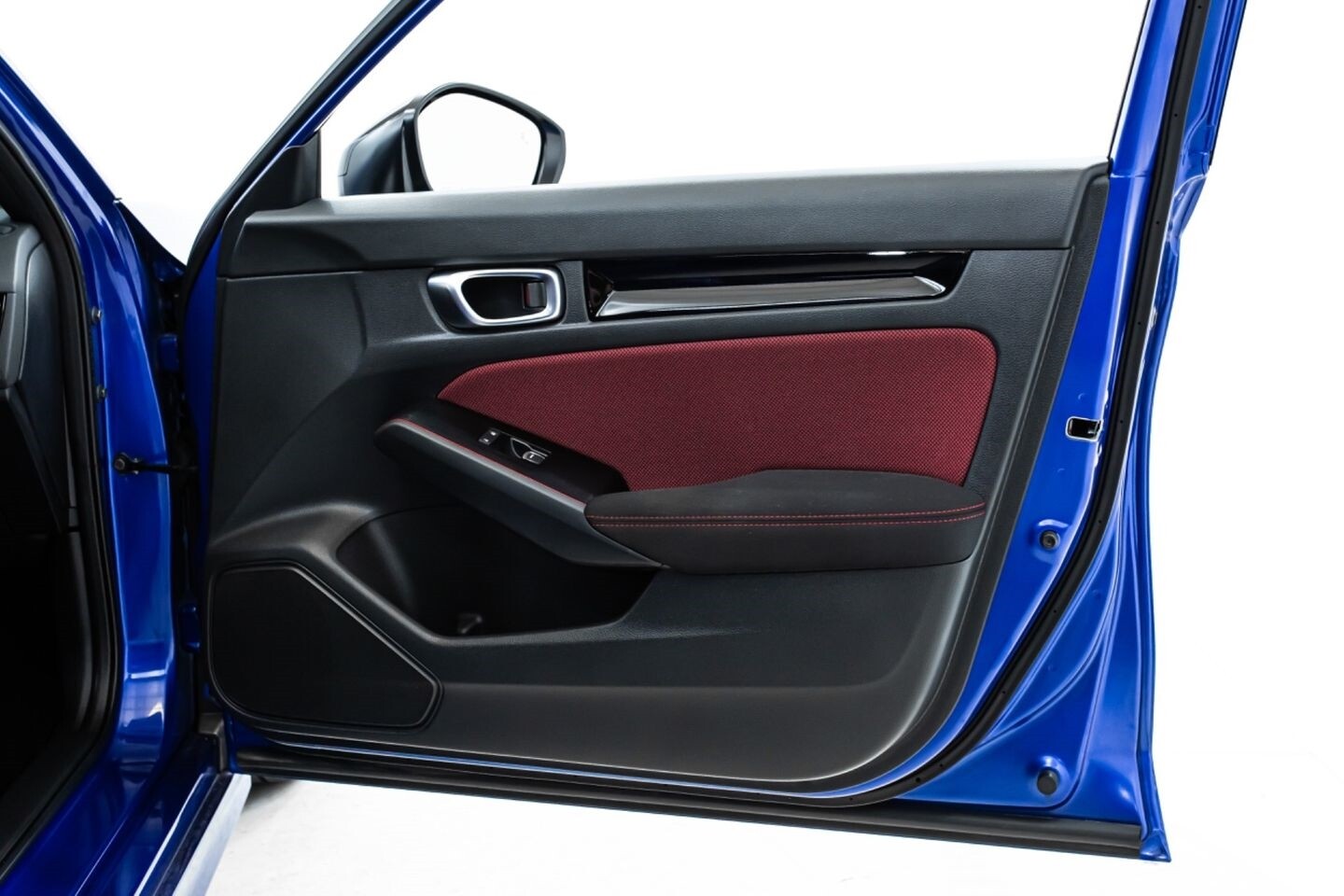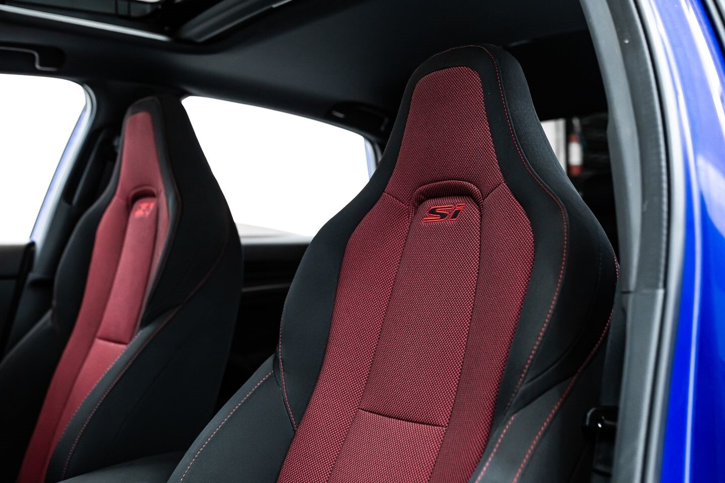 This 2022 Honda Civic Si is a heavily modified sedan that is ready to be driven at the limit. Under the hood is a turbocharged 1.5-liter inline four-cylinder engine that produces 200 horsepower and 192 lb-ft of torque, all of which is sent through a six-speed manual transmission to the front wheels. The engine is not stock, however, having received an RV6 R365 Red Ball Bearing turbocharger upgrade, a PRL Motorsports front-mount intercooler, a PRL Motorsports coolant expansion tank, a PRL/PTP turbocharger blanket, an aftermarket downpipe, a PRL Motorsports cold-side charge pipe, and performance tuning, among other modifications. This sleek vehicle comes equipped with 17" Rota wheels and is finished in Aegean Blue Metallic, a breathtaking color that perfectly suits the car's lines. The exterior of this Honda has been made even more unique with the addition of some cosmetic modifications, which include an aftermarket ducktail spoiler, smoked LED aftermarket taillights, smoked rear reflectors, and aftermarket front lip. In the interior, this Civic Si offers cloth "Si" bucket seats, a flat-bottomed carbon fiber and leather steering wheel, selectable drive modes, push-to-start, an "Si" ball shift knob, a semi-digital gauge cluster, and an infotainment system with Bluetooth, apps, phone connectivity, AUX, Apple CarPlay, Android Auto, and a backup camera, truly making this car the complete package.