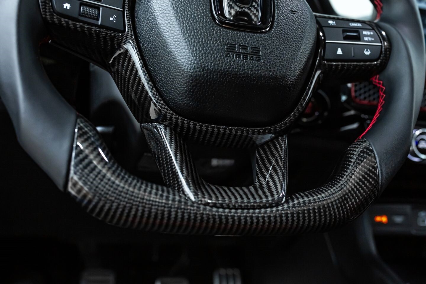 FLAT-BOTTOMED CARBON FIBER AND LEATHER STEERING WHEEL