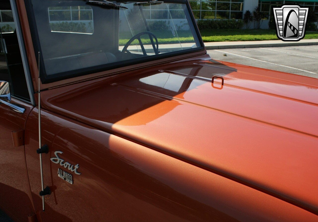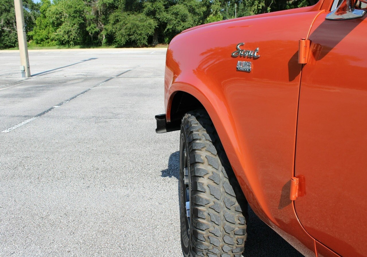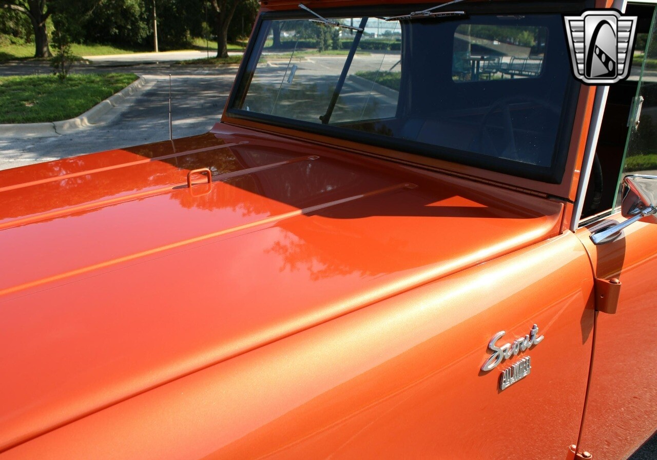 Under the hood, this Scout is powered by a reliable 4-cylinder engine, paired with a 3-speed manual transmission. This combination offers a driving experience that is engaging for those who appreciate the hands-on feel of a classic manual gearbox. The engine's simplicity and durability are hallmarks of the International Harvester brand, ensuring that this Scout remains a dependable companion on any journey.