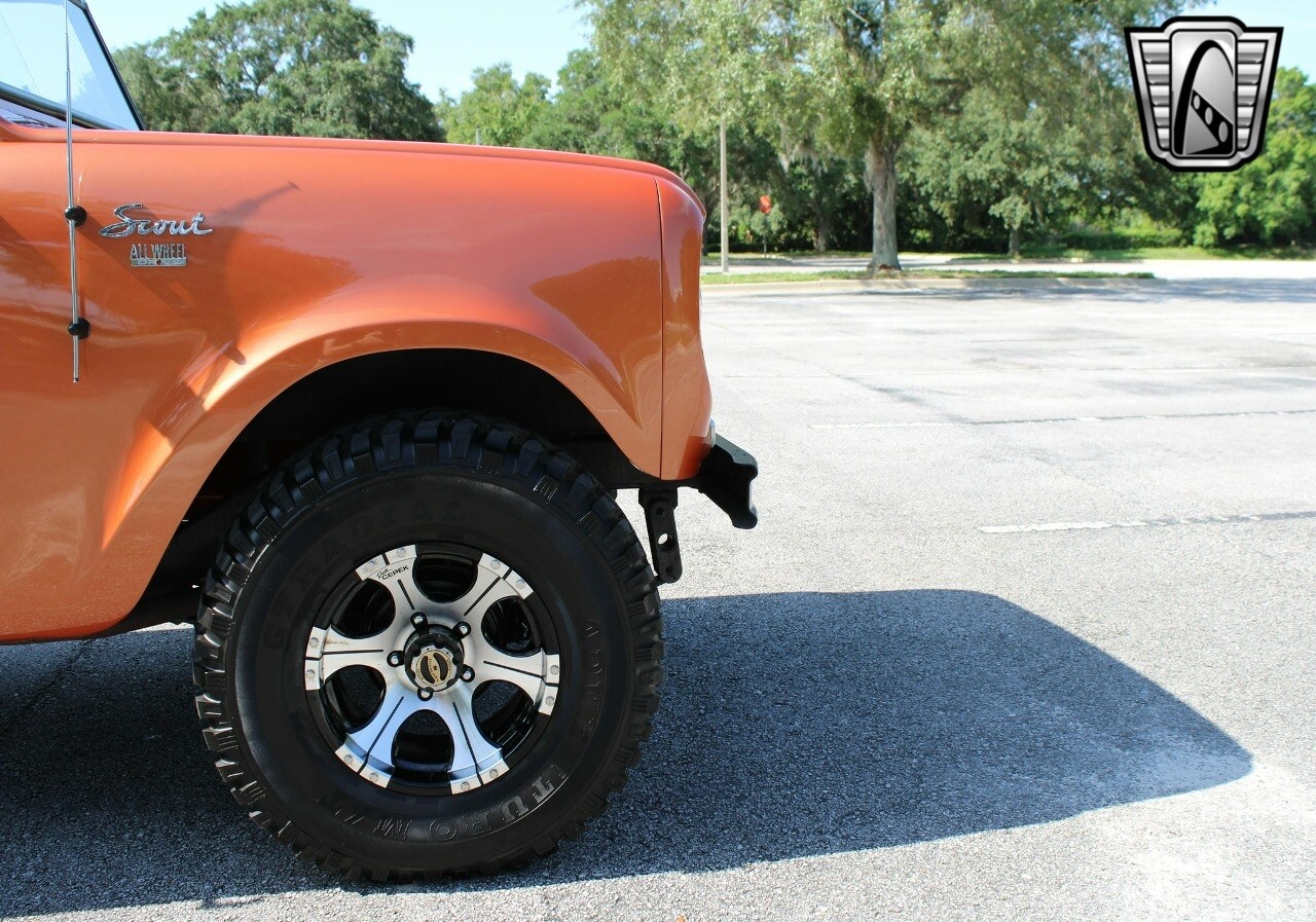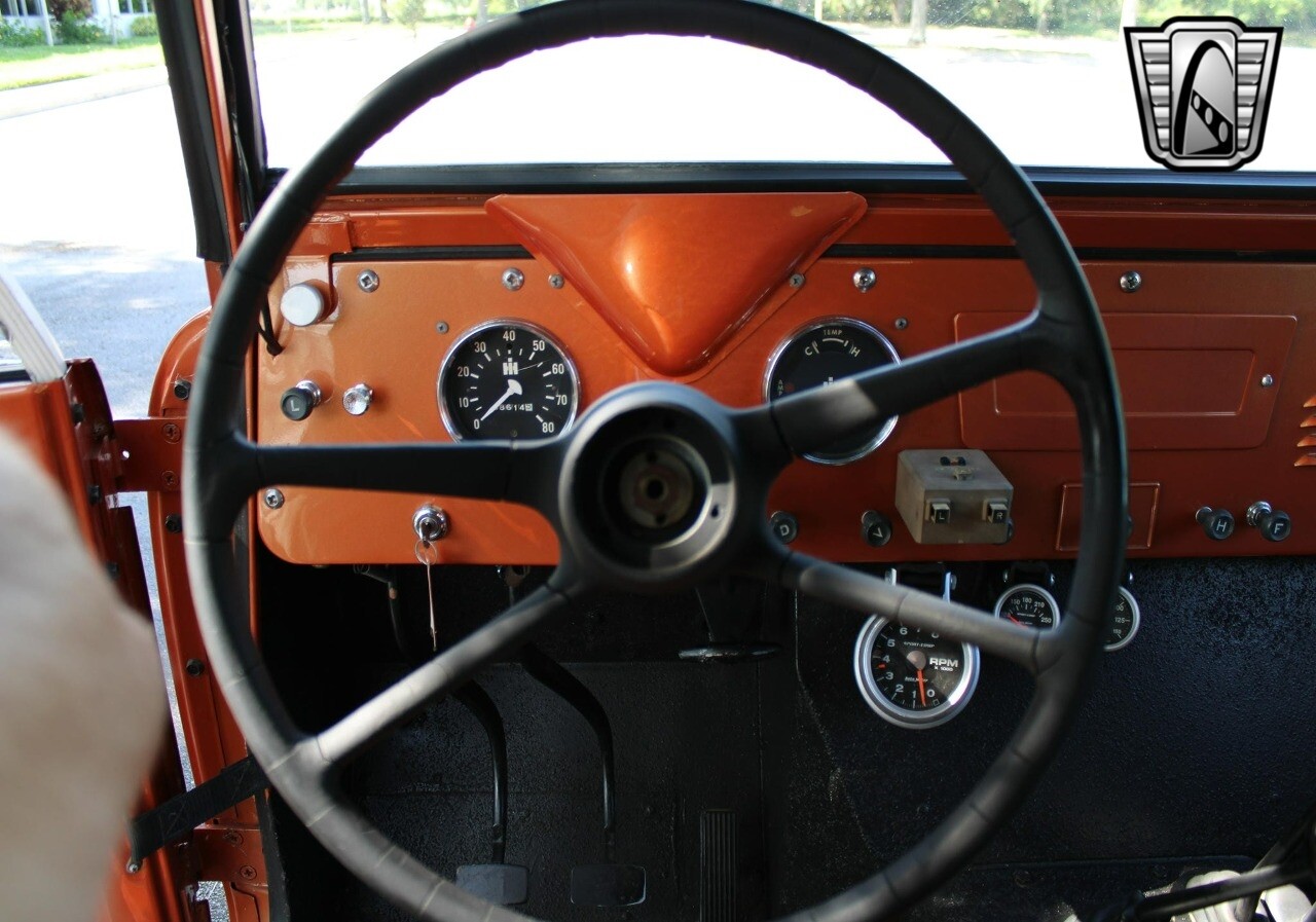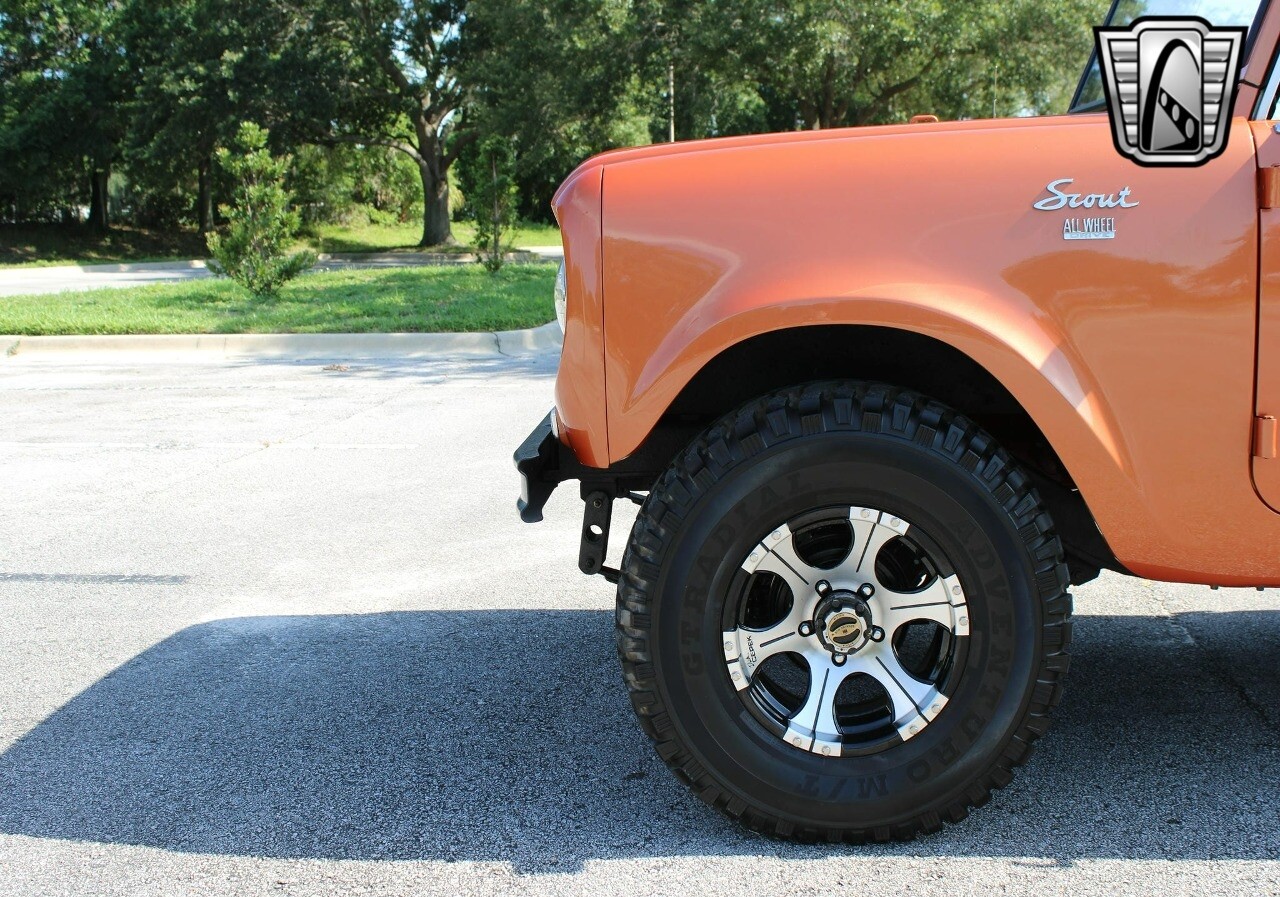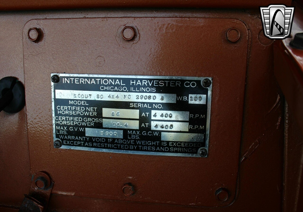 Under the hood, this Scout is powered by a reliable 4-cylinder engine, paired with a 3-speed manual transmission. This combination offers a driving experience that is engaging for those who appreciate the hands-on feel of a classic manual gearbox. The engine's simplicity and durability are hallmarks of the International Harvester brand, ensuring that this Scout remains a dependable companion on any journey.