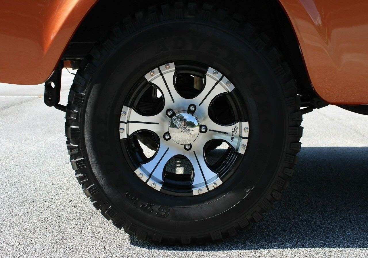 Inside, the black interior provides a comfortable and functional space, designed with practicality in mind. The seating arrangement and dashboard layout reflect the utilitarian roots of the Scout, offering a no-nonsense approach to driving. The interior materials and finishes have been chosen to withstand the rigors of both everyday use and off-road adventures, making this Scout as versatile as it is stylish.