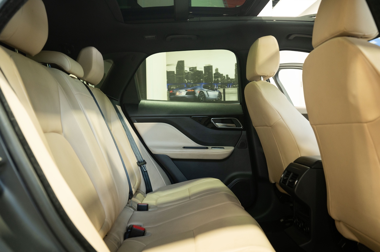 Step inside the cabin and immerse yourself in luxury with the elegant black interior that exudes refinement and comfort. The spacious interior provides ample room for passengers and cargo, making it ideal for both daily commutes and long road trips. Whether you're running errands in the city or cruising on the highway, the Jaguar F-PACE offers a smooth and enjoyable ride.