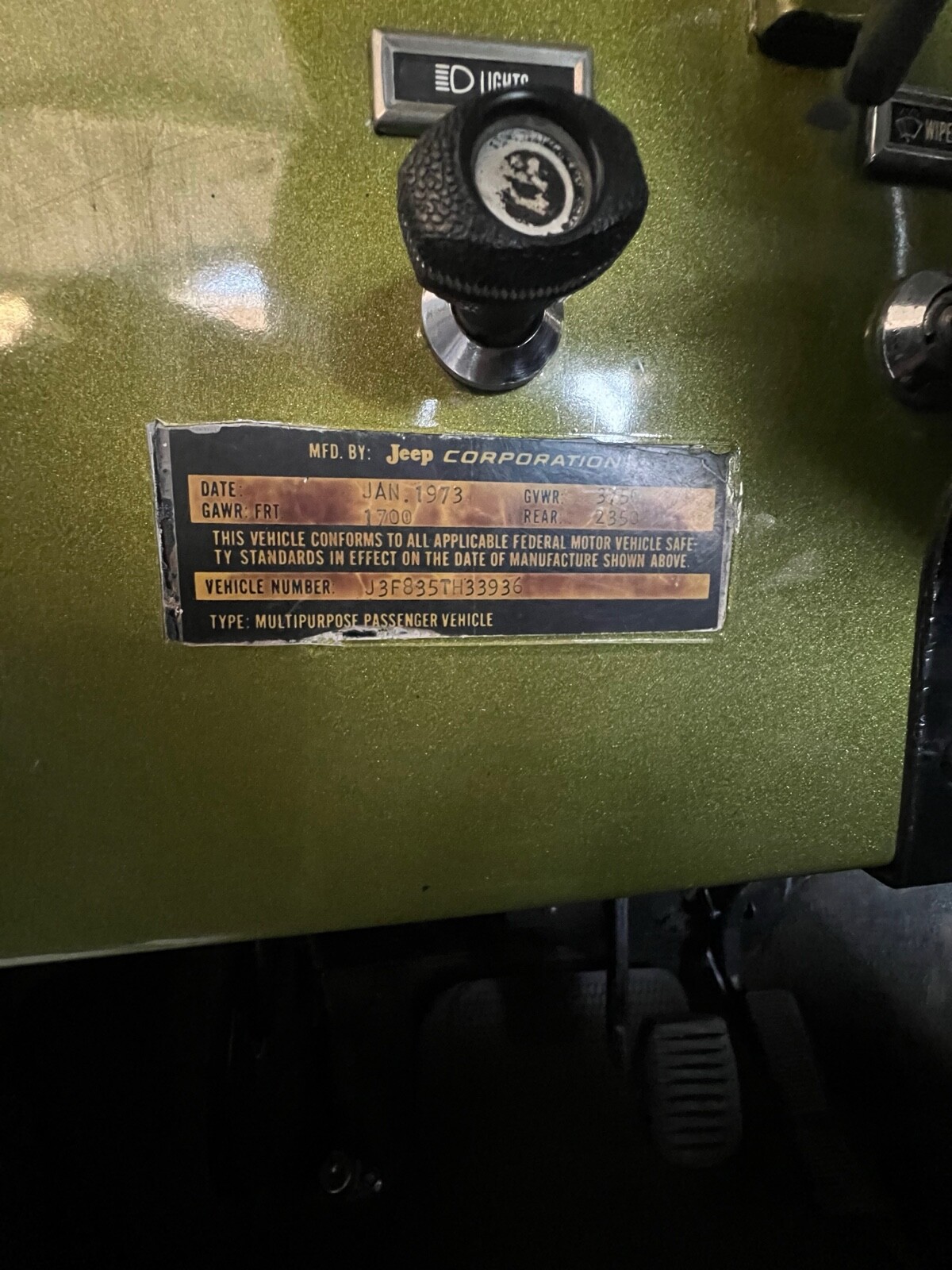 This 1973 Jeep CJ 5 is a great find for off-road enthusiasts. With its restored exterior and interior, it's a perfect addition to any collection. The vehicle has been well-maintained and runs good. It's a great choice for those looking for a reliable and fun vehicle to drive on the weekends. The color is a clean and bright green, making it stand out on any trail. The title is clean. Overall, this Jeep CJ 5 is a fantastic choice for anyone looking for a great off-road vehicle and fun weekend toy.Seller's Notes