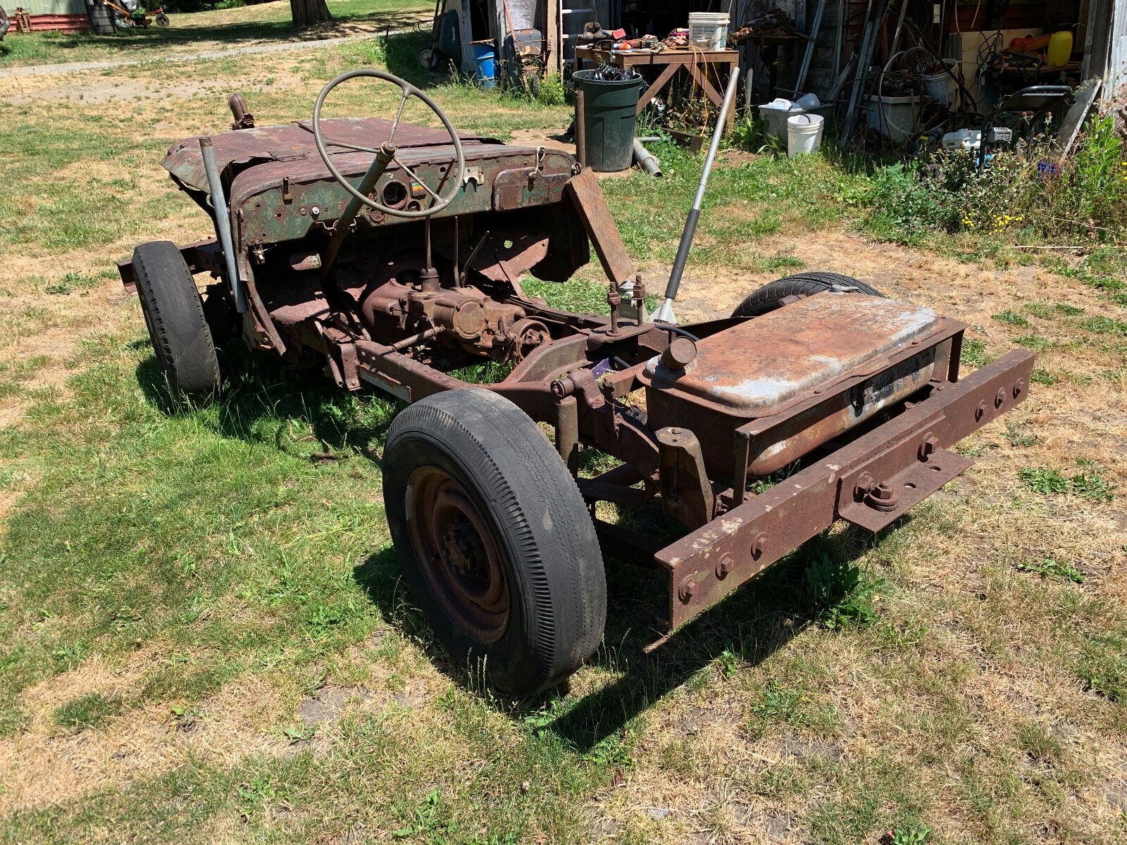 This vehicle has been on our property since the late 1950's. The engine, frame and running gear are complete. Frame has been welded here and there and has some deep rust throughs. The vehicle has not been run since the late 80's. ID/nomenclature tags are rusted and not legible. No title.